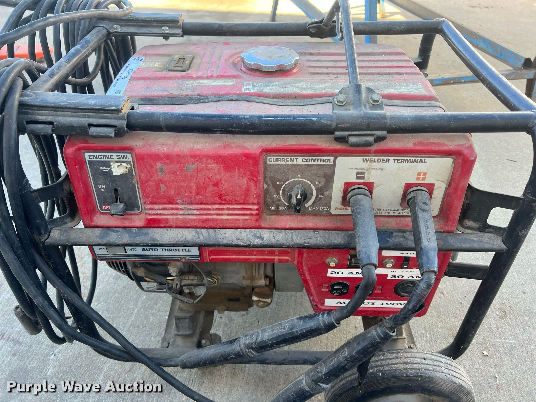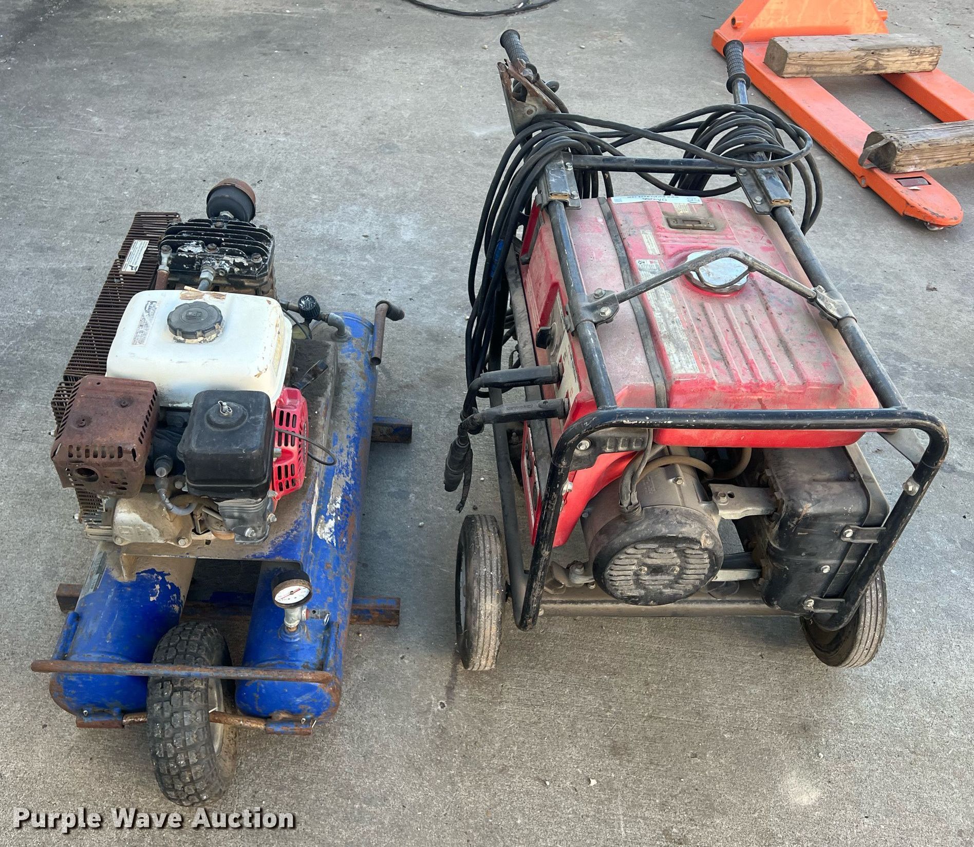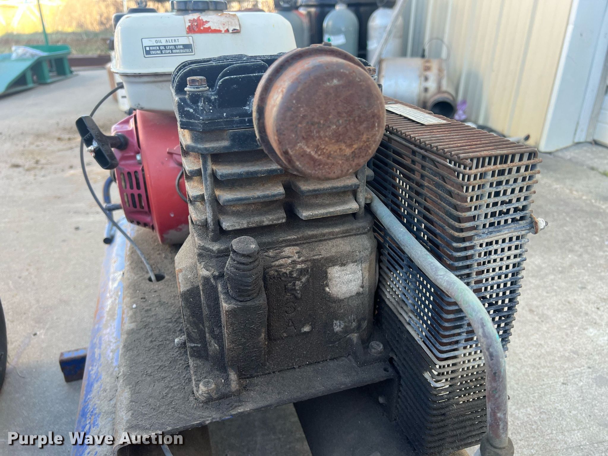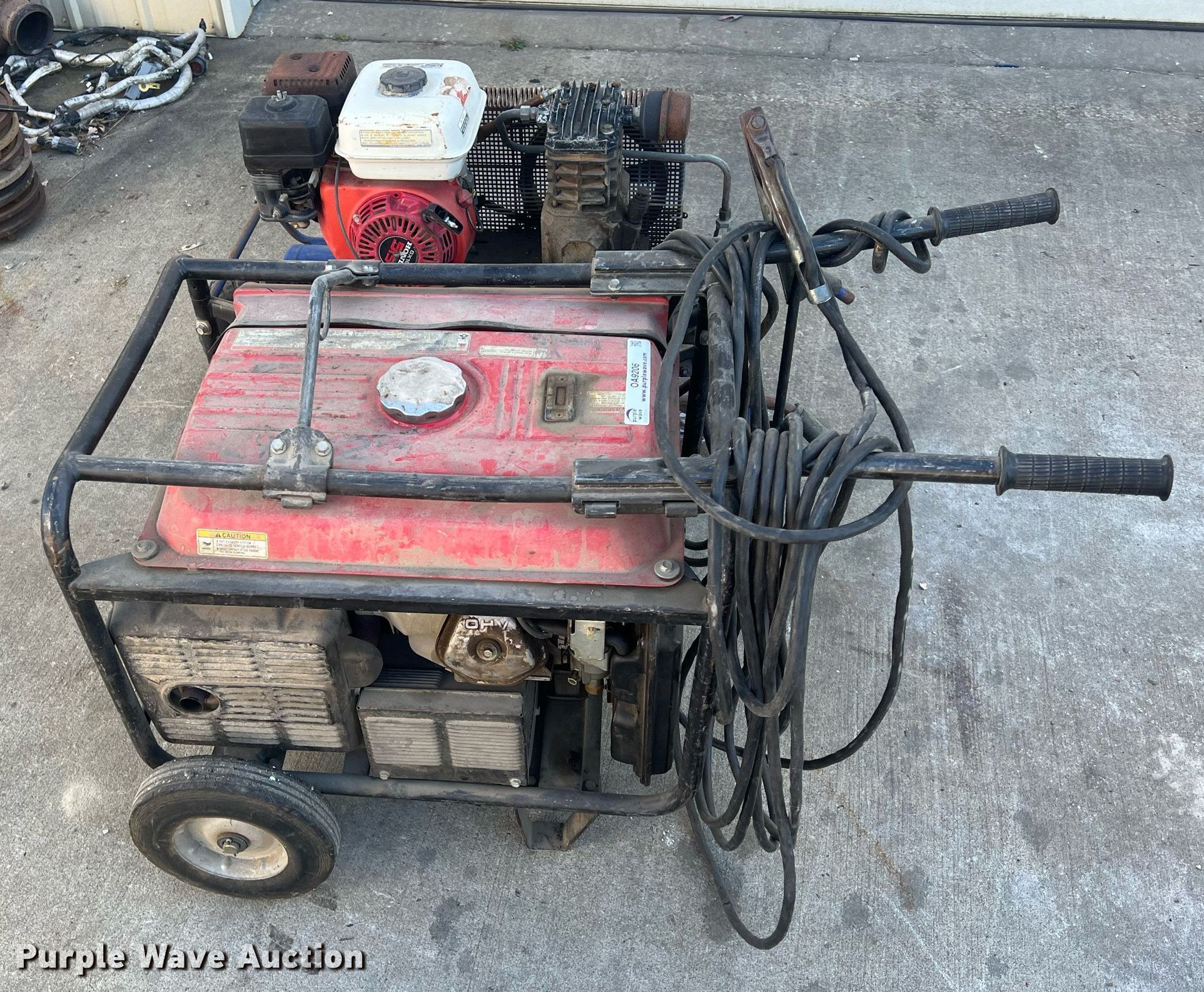 Purple Wave is selling a used Tools in Kansas. This item is a Tools with the following: Air compressor, Honda gas engine, Hp: 5.5, Max PSI: 125, Tank: 8 gallons, Welder, Honda Gas engine