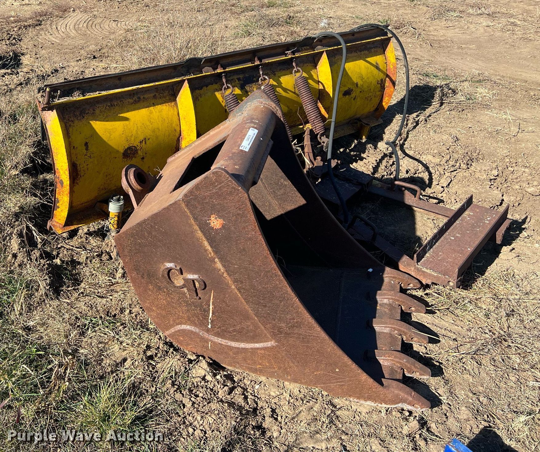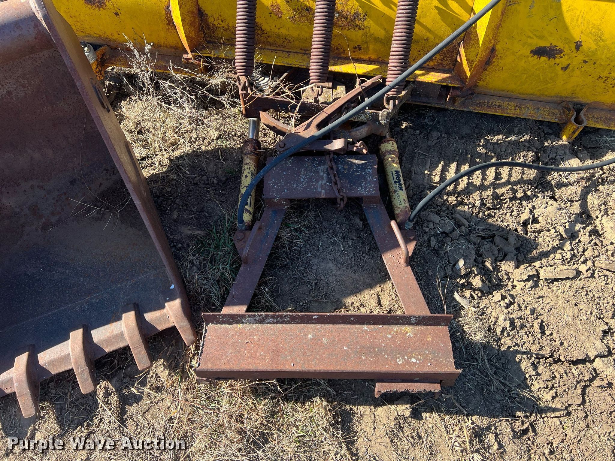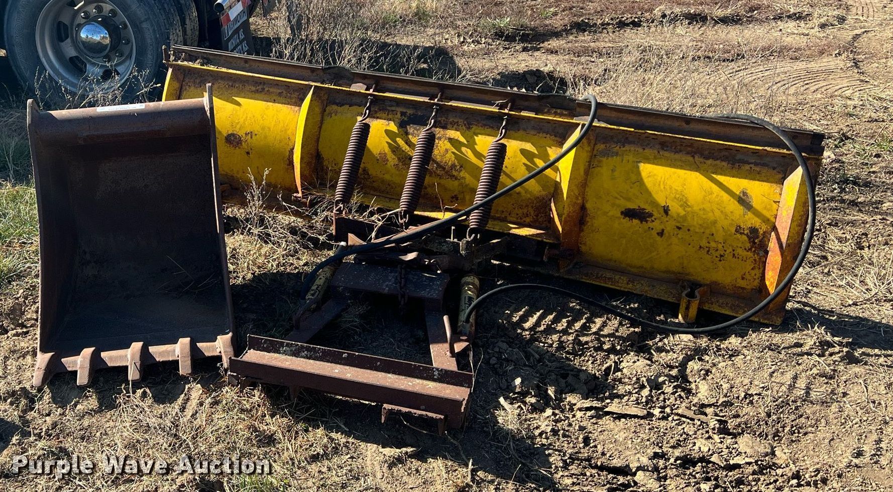 Purple Wave is selling a used Other Attach. or Equip. in Kansas. This item is a Attachments with the following: Meyer 90"W snow plow, 24" excavator bucket, 10' jib