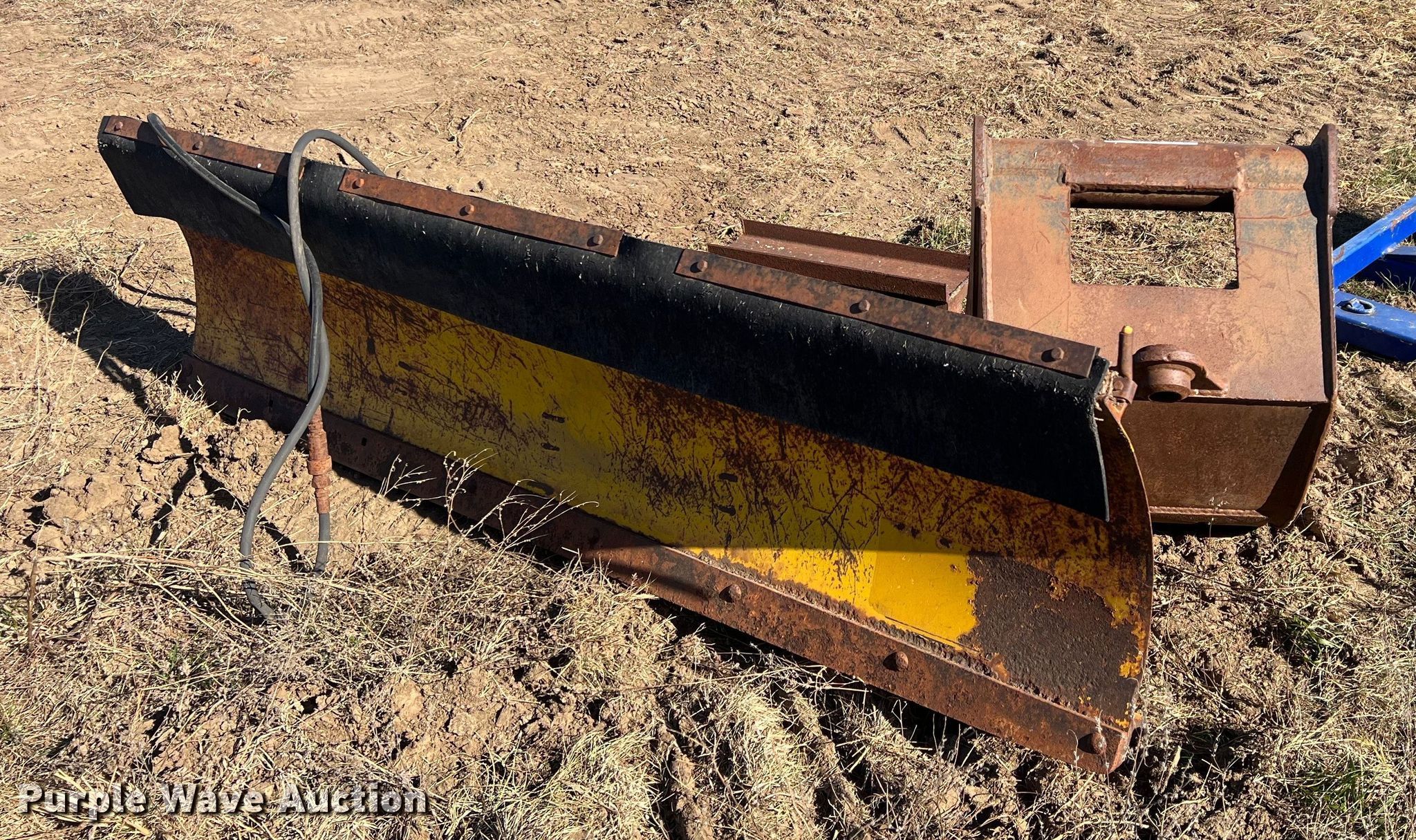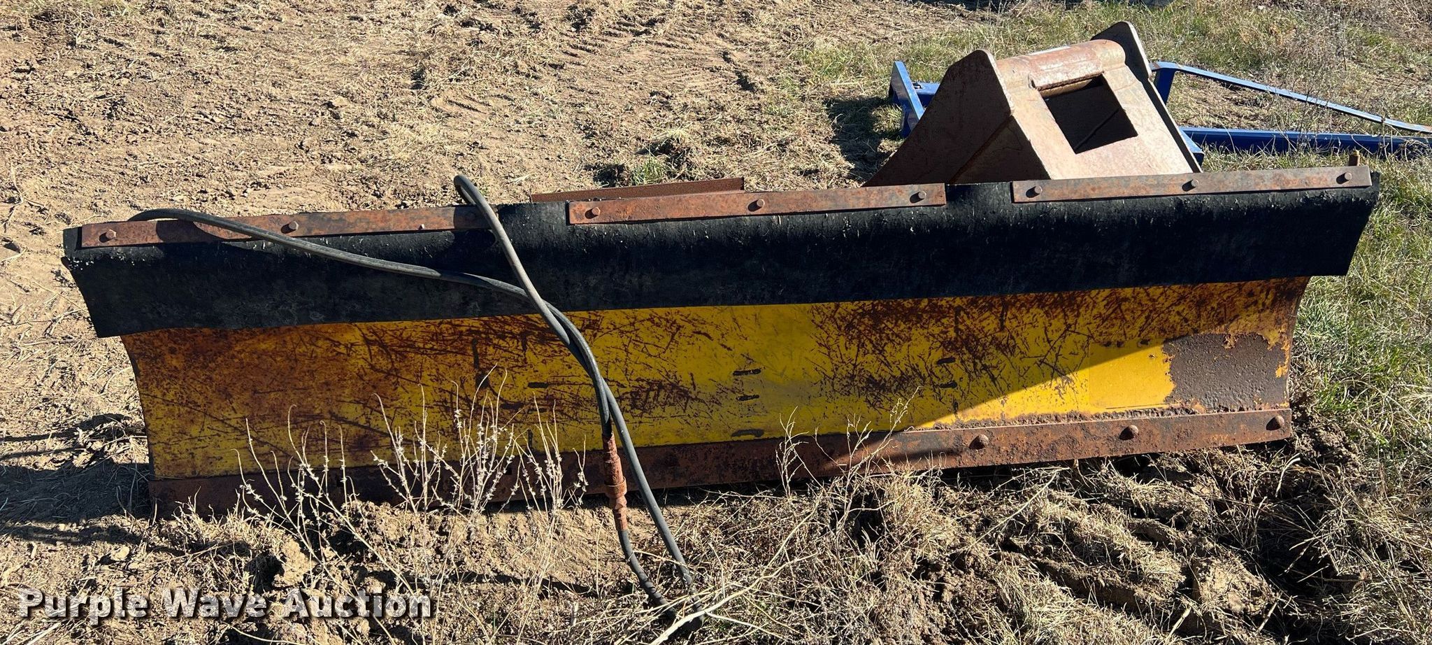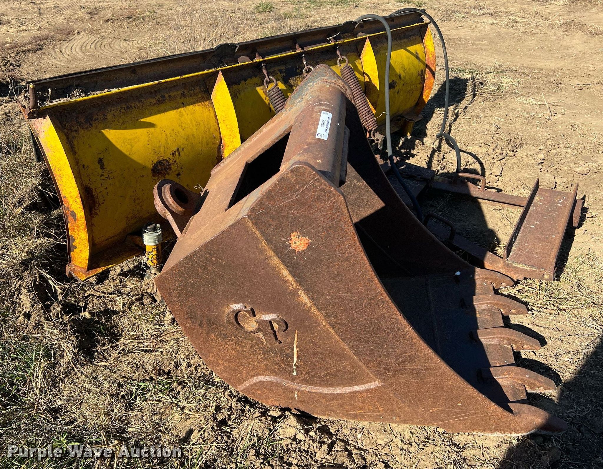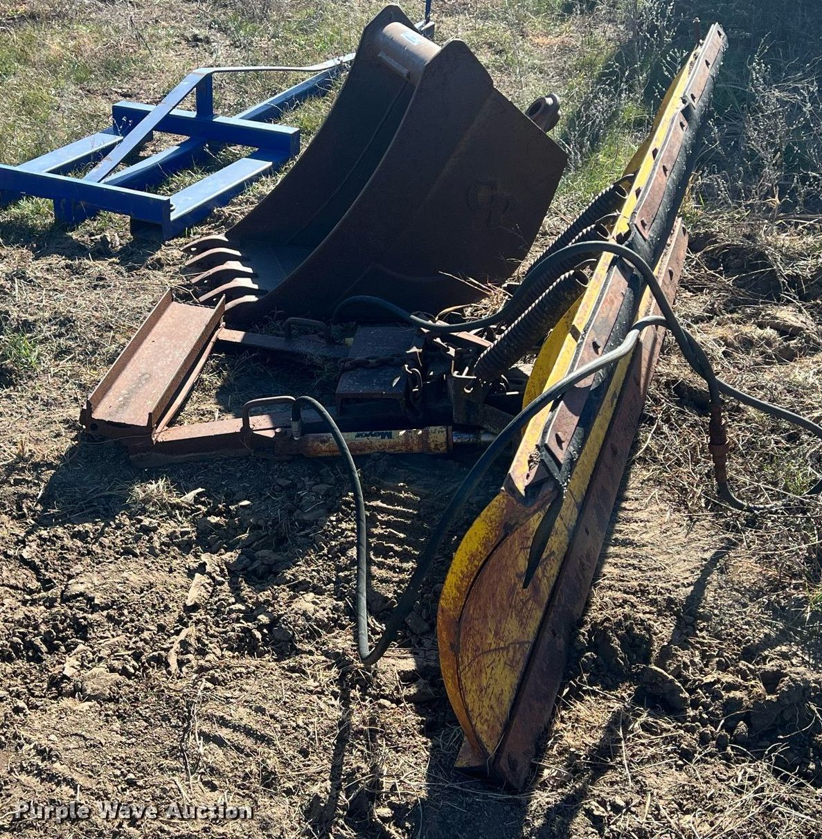 Purple Wave is selling a used Other Attach. or Equip. in Kansas. This item is a Attachments with the following: Meyer 90"W snow plow, 24" excavator bucket, 10' jib