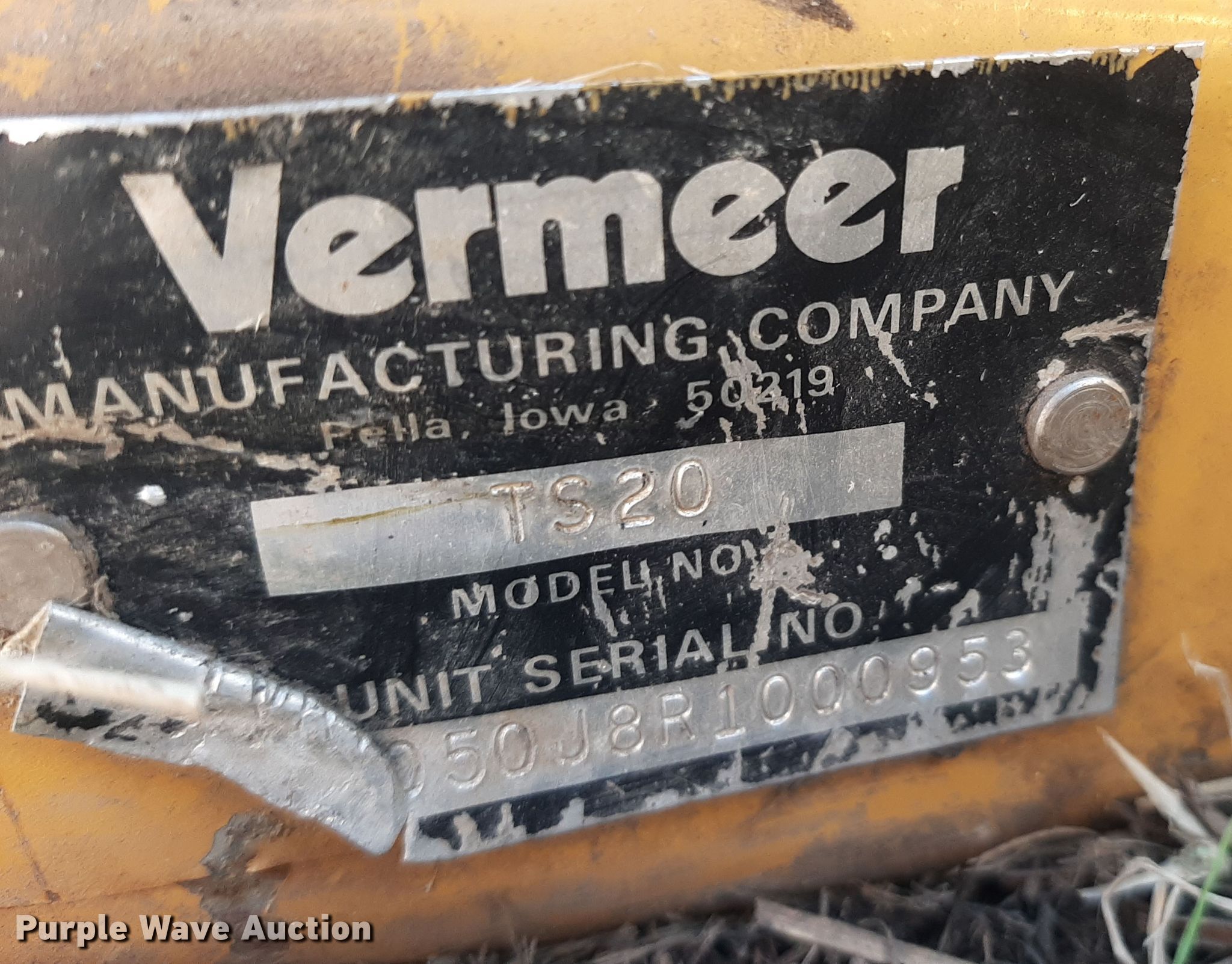 Purple Wave is selling a used Skid Steer Attach. in Kansas. This item is a 1994 Vermeer TS20 skid steer tree spade with the following: Hitch: Three point