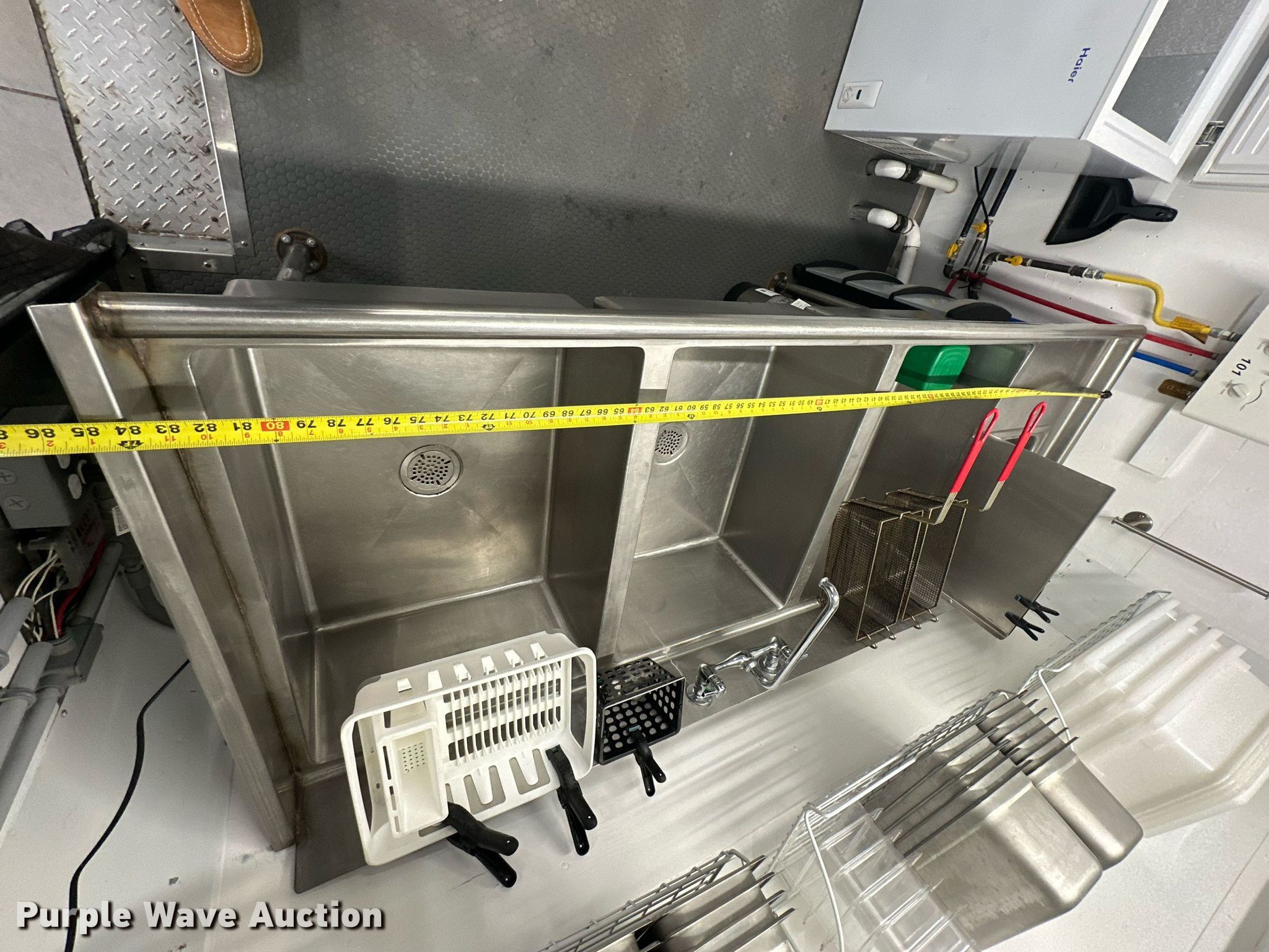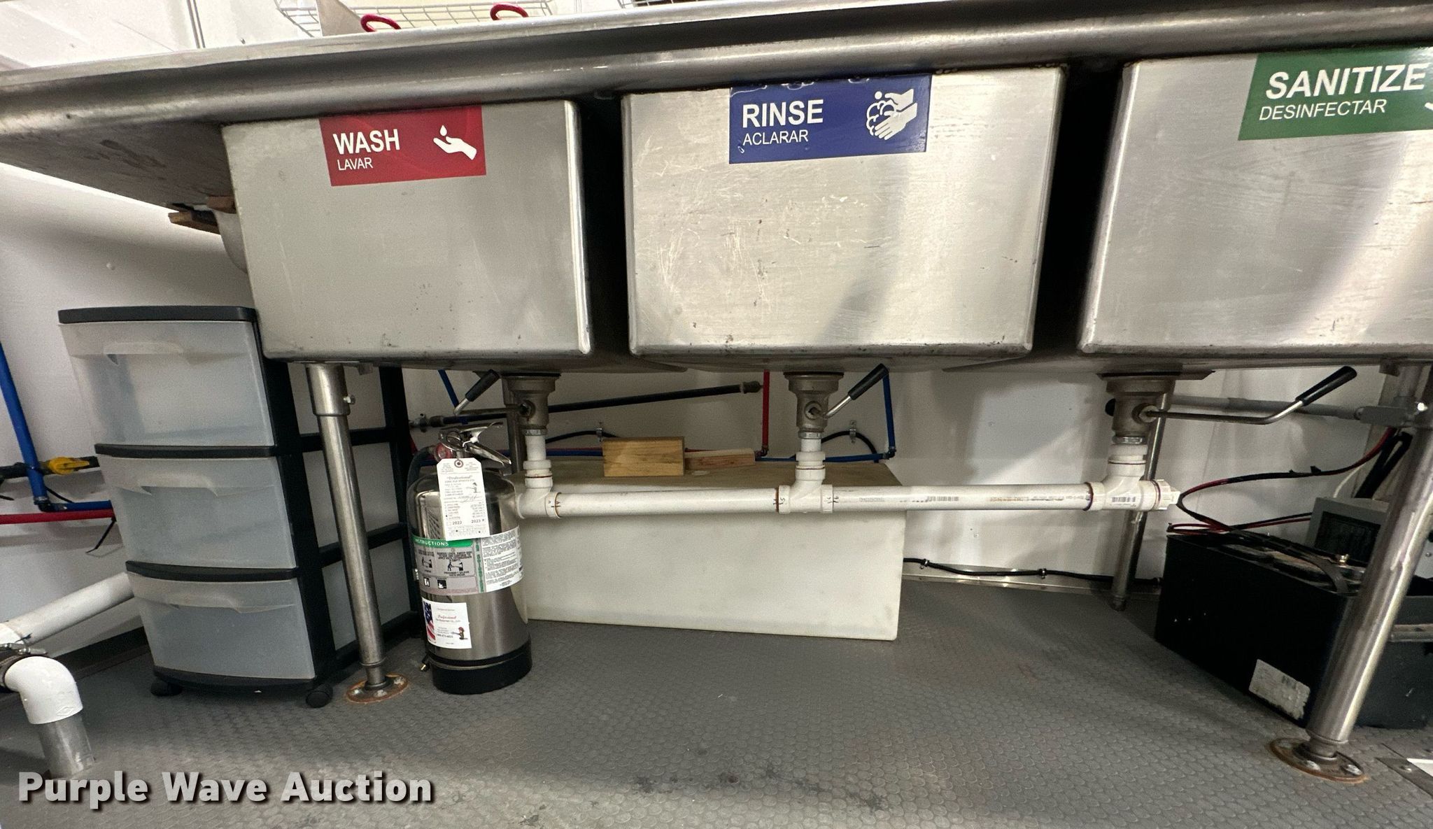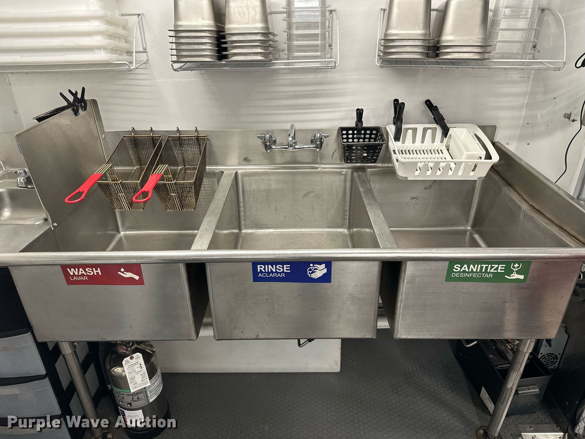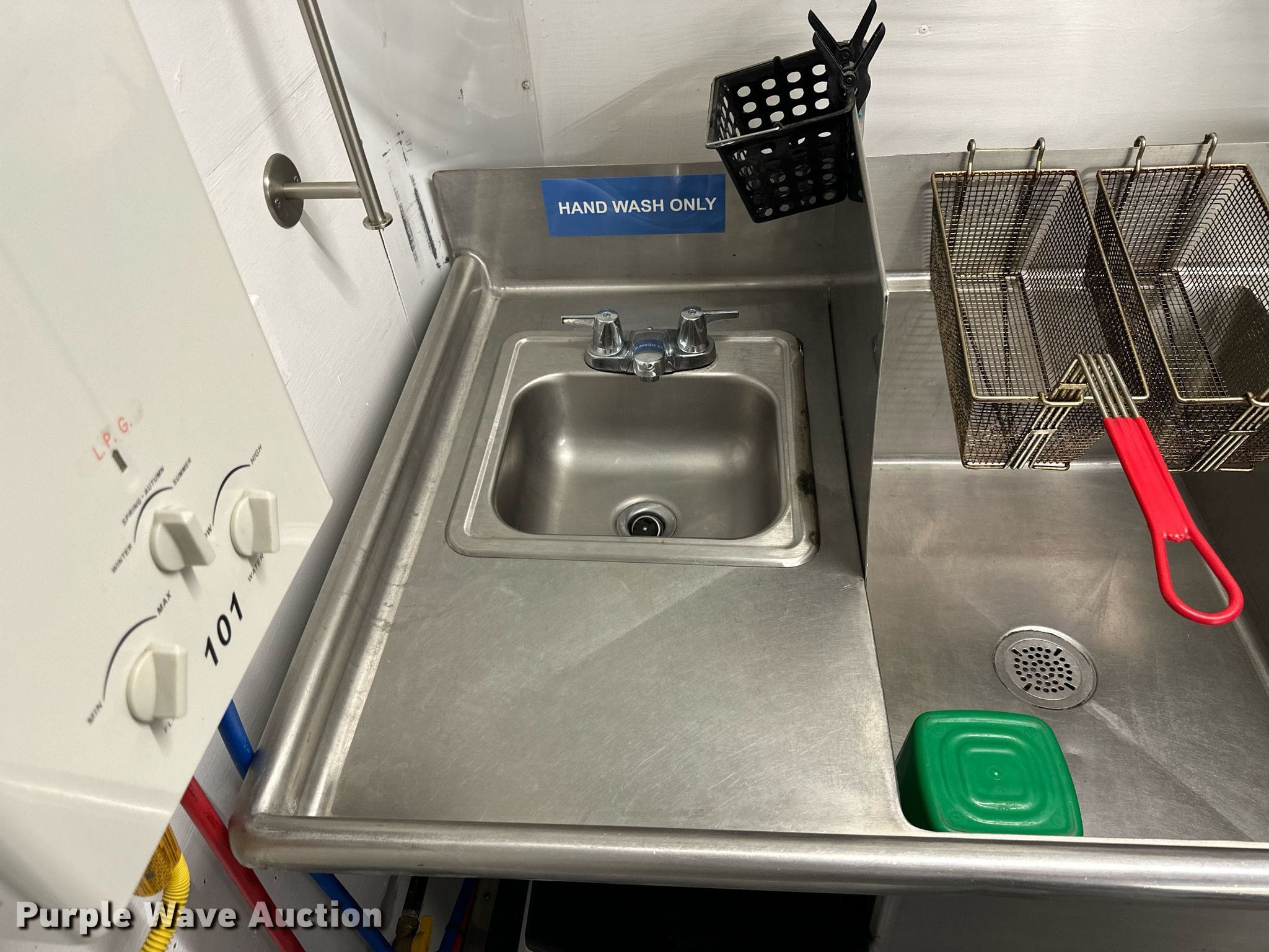 2012 Cargo Craft BAC-85202 concession trailer. VIN: 4D6EB2024CC028800. Dimensions Overall: 24' L x 100" W. Features (2) propane tanks Capacity: 100 gallons, (3) sinks, Water tank Capacity: 30 gallons, EZ water heater, Haier freezer, Avantco food warmer, Breaker box, AC. Chassis Ball hitch: 2 5/16", Landing gear: Single, Suspension: Spring, Brakes: Electric, Axles: Tandem, GVWR: 7,000 lbs. Tires Steel wheels, Size: 205/75R15. Notes Hail damage, Non-operational AC. Kansas title. Title distribution may be delayed up to 14 days from verification of funds. 801 220th Avenue. Hays, KS 67601