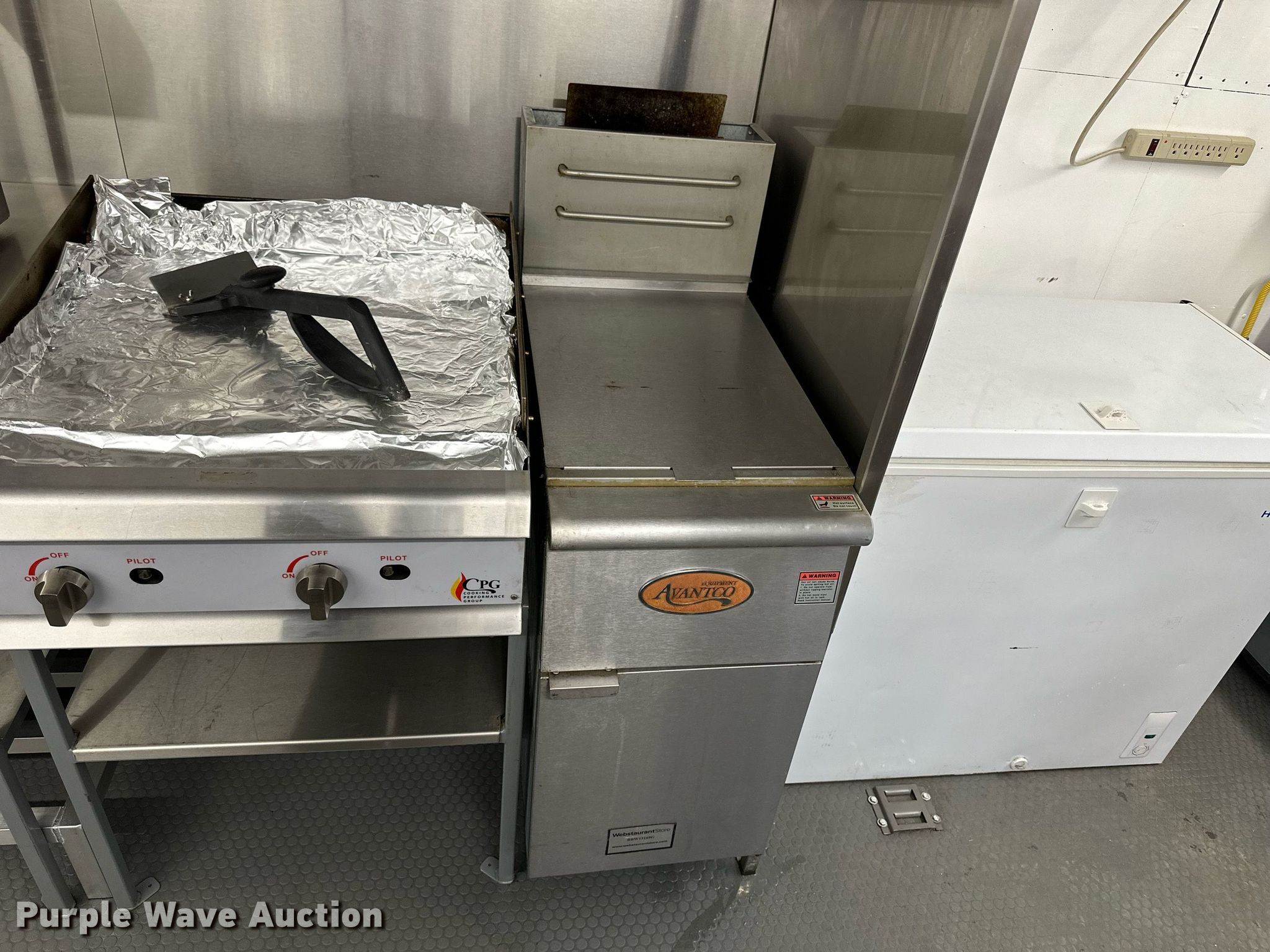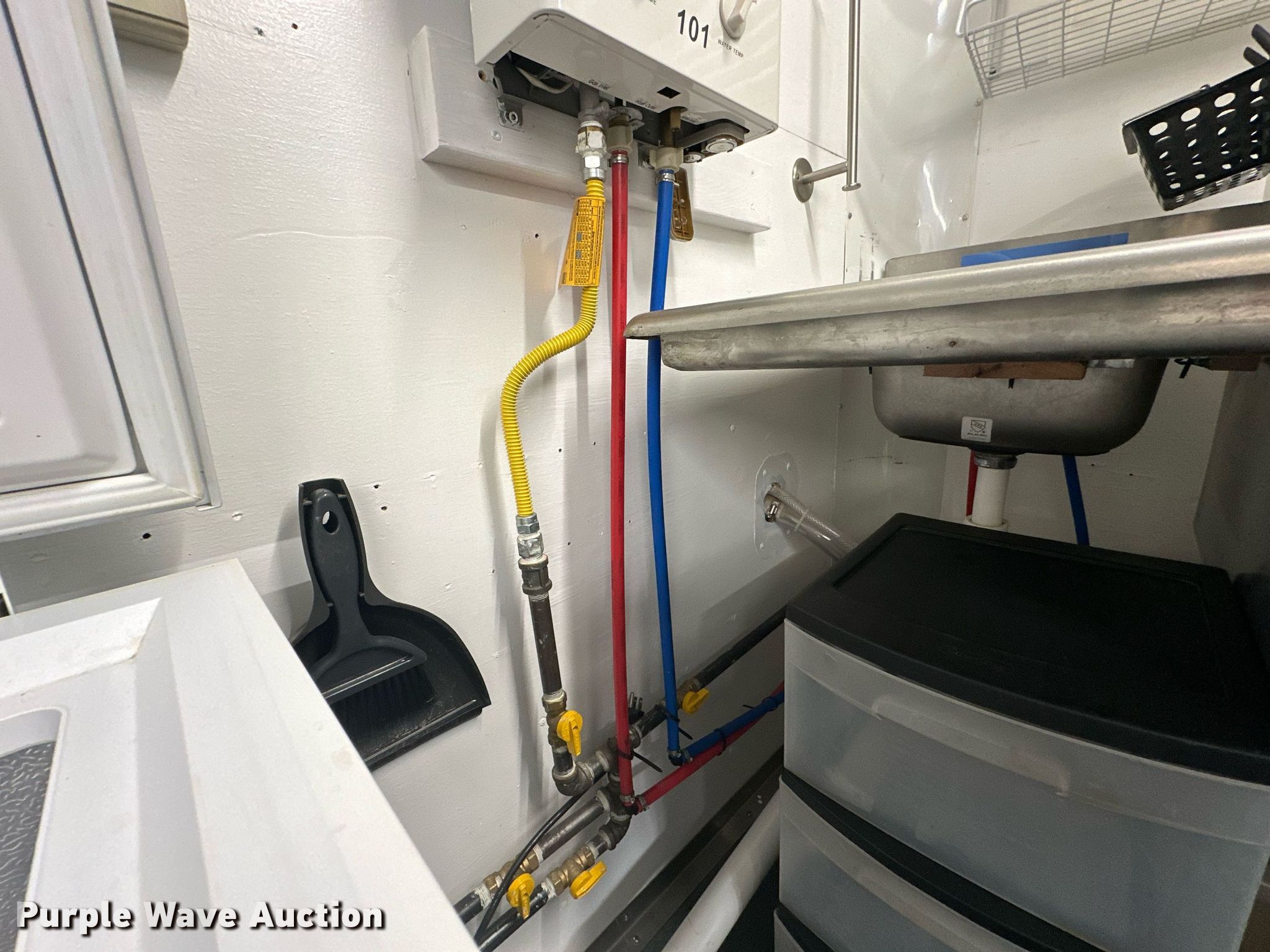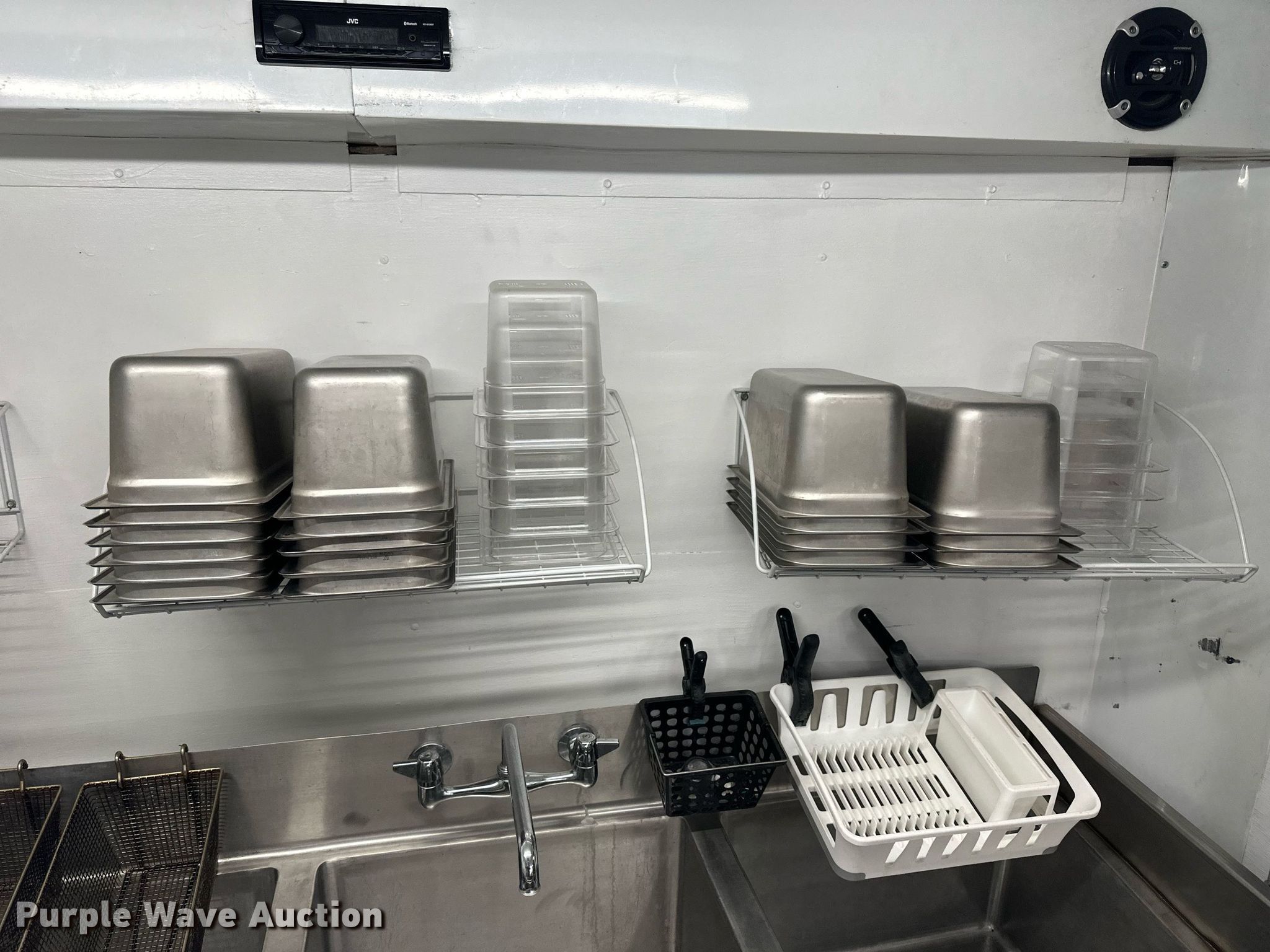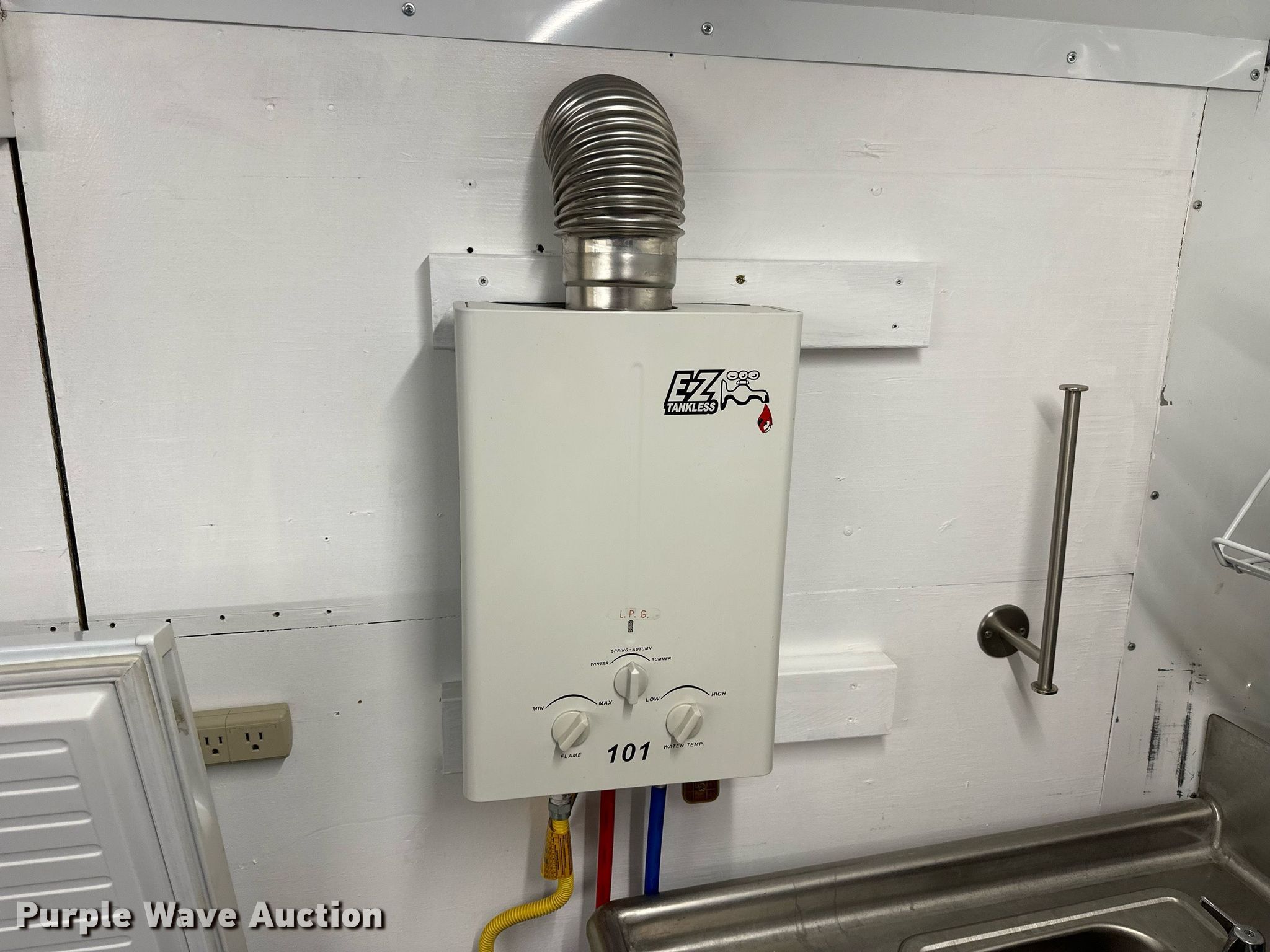 2012 Cargo Craft BAC-85202 concession trailer. VIN: 4D6EB2024CC028800. Dimensions Overall: 24' L x 100" W. Features (2) propane tanks Capacity: 100 gallons, (3) sinks, Water tank Capacity: 30 gallons, EZ water heater, Haier freezer, Avantco food warmer, Breaker box, AC. Chassis Ball hitch: 2 5/16", Landing gear: Single, Suspension: Spring, Brakes: Electric, Axles: Tandem, GVWR: 7,000 lbs. Tires Steel wheels, Size: 205/75R15. Notes Hail damage, Non-operational AC. Kansas title. Title distribution may be delayed up to 14 days from verification of funds. 801 220th Avenue. Hays, KS 67601
