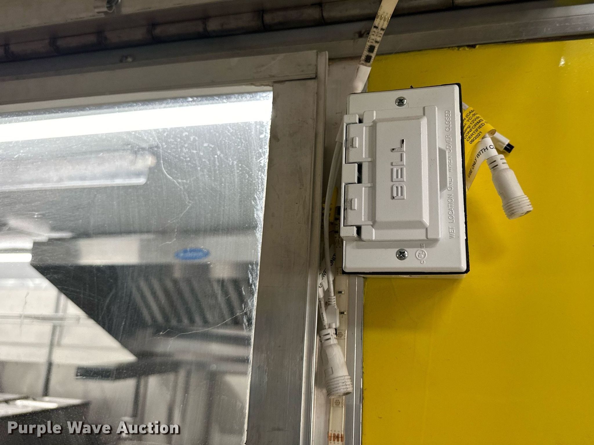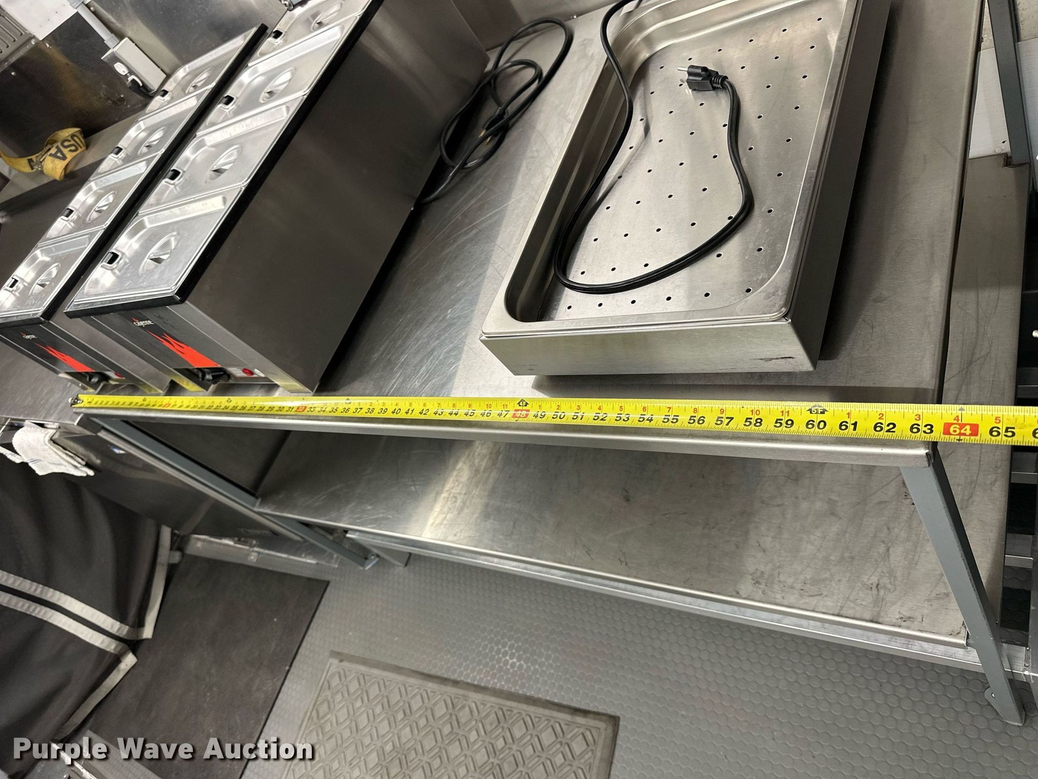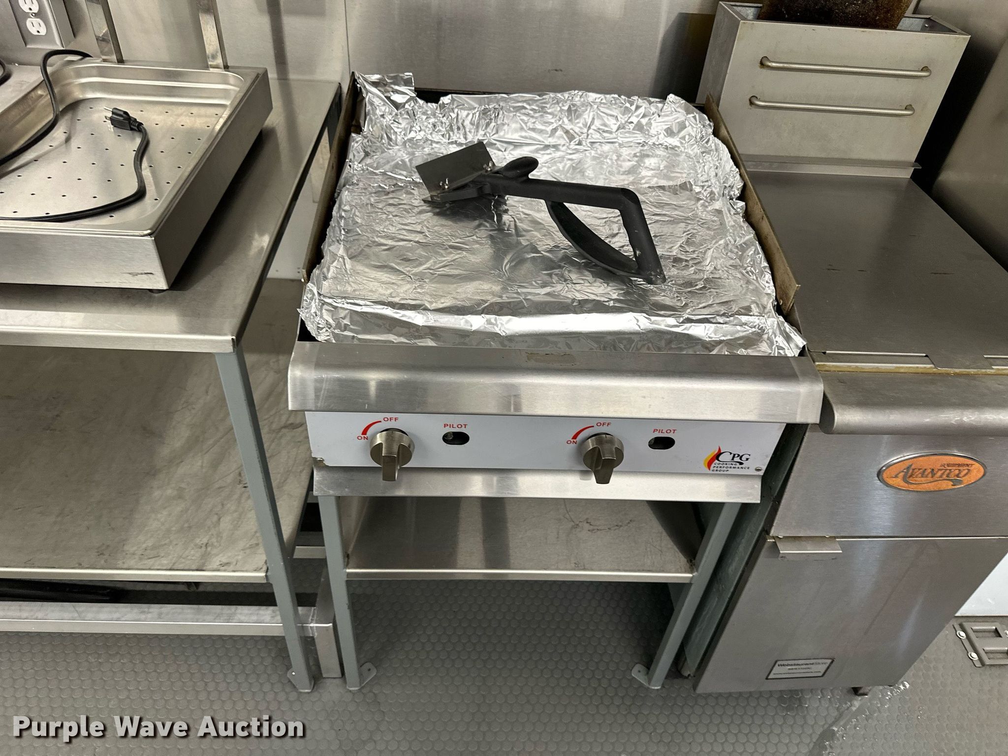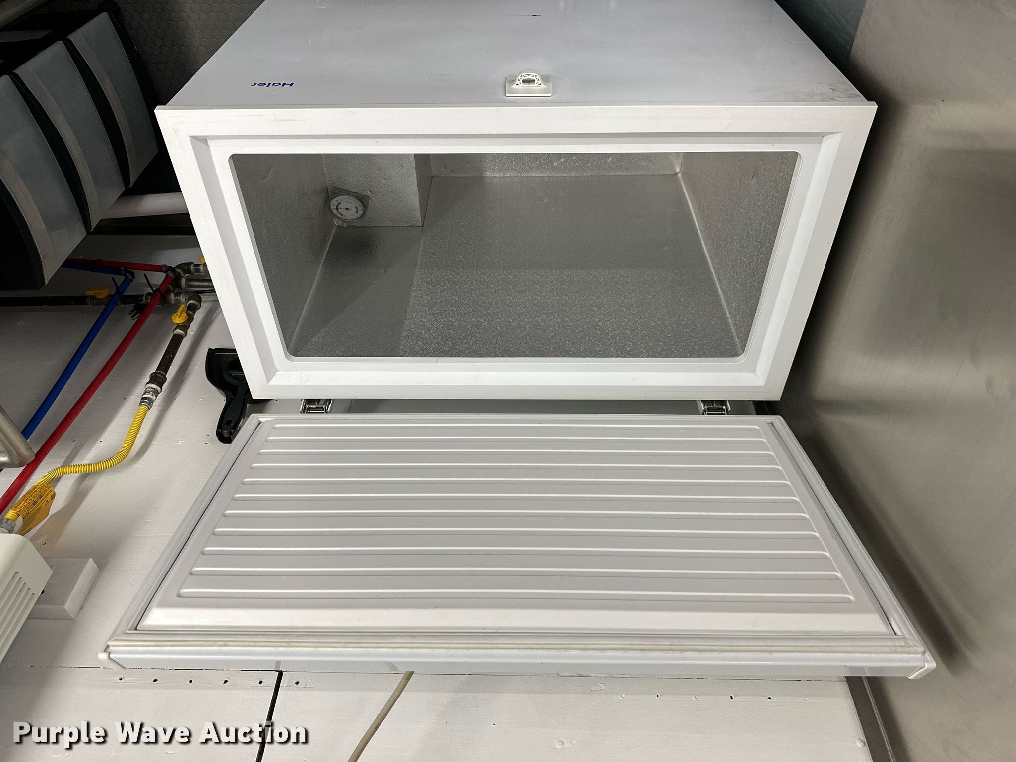 2012 Cargo Craft BAC-85202 concession trailer. VIN: 4D6EB2024CC028800. Dimensions Overall: 24' L x 100" W. Features (2) propane tanks Capacity: 100 gallons, (3) sinks, Water tank Capacity: 30 gallons, EZ water heater, Haier freezer, Avantco food warmer, Breaker box, AC. Chassis Ball hitch: 2 5/16", Landing gear: Single, Suspension: Spring, Brakes: Electric, Axles: Tandem, GVWR: 7,000 lbs. Tires Steel wheels, Size: 205/75R15. Notes Hail damage, Non-operational AC. Kansas title. Title distribution may be delayed up to 14 days from verification of funds. 801 220th Avenue. Hays, KS 67601