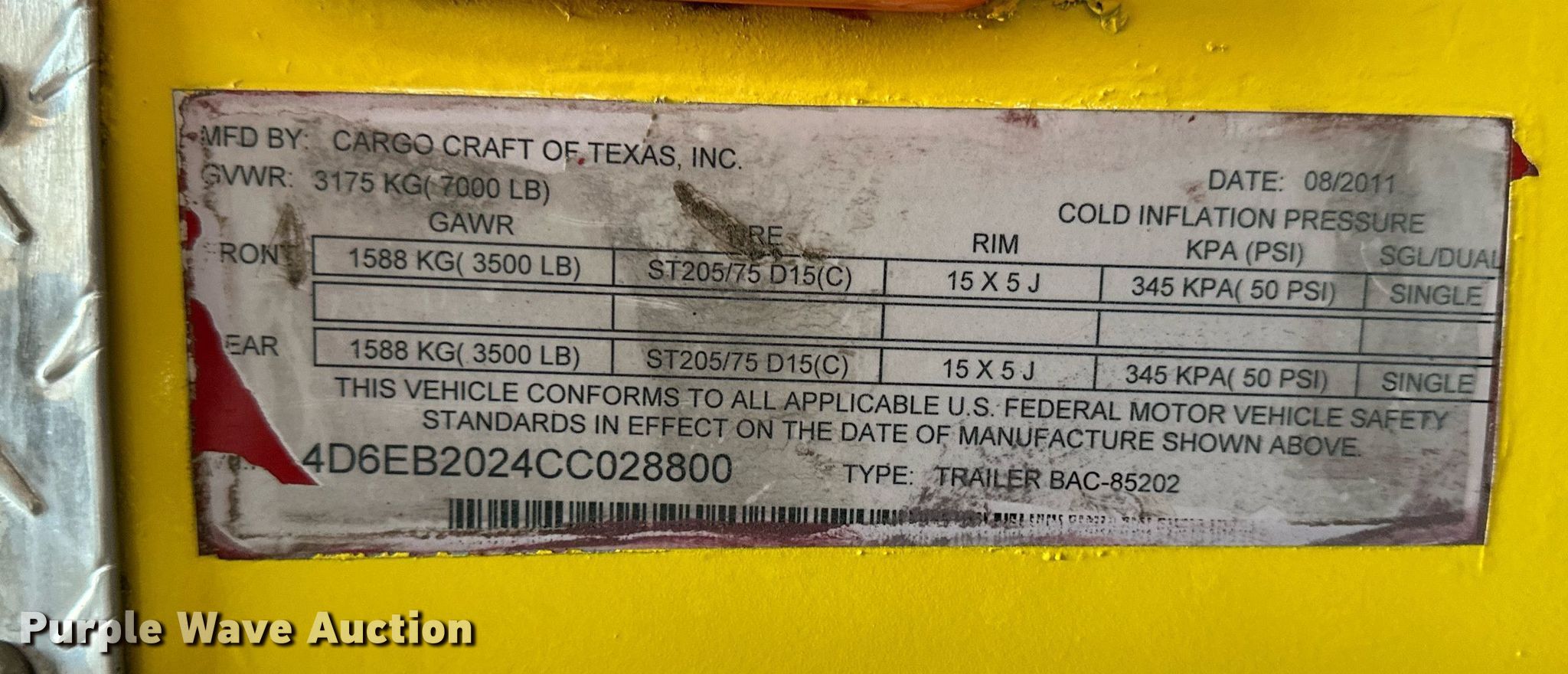Purple Wave is selling a used Trailer Other in Kansas. This item is a 2012 Cargo Craft BAC-85202 concession trailer with the following: VIN: 4D6EB2024CC028800
