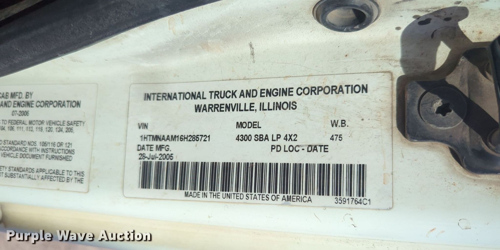 Purple Wave is selling a used Truck Chassis in Oklahoma. This item is a 2006 International 4300 truck cab and chassis with the following: Miles: 512,376 on odometer, VIN: 1HTMNAAM16H285721
