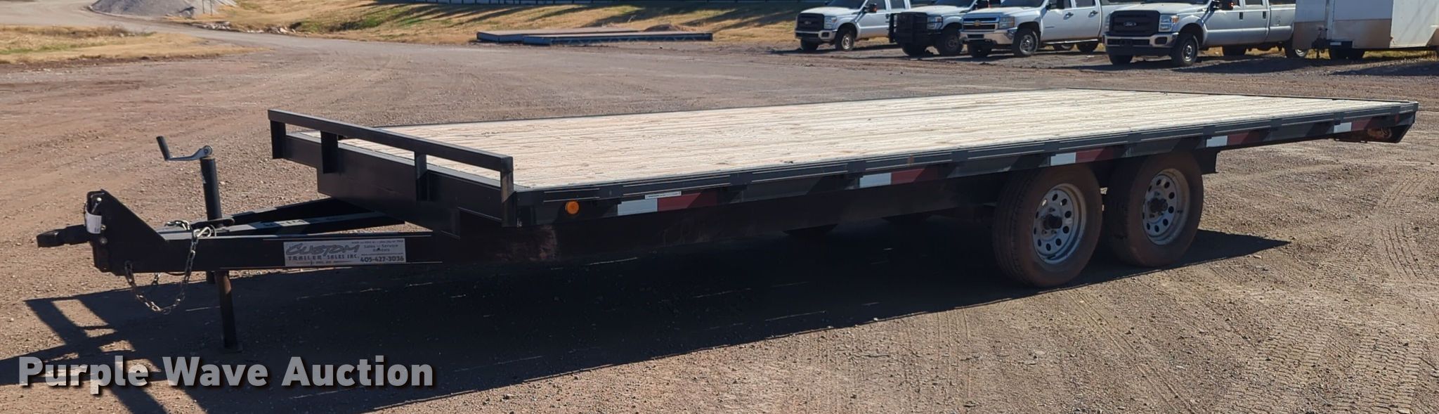 2016 Horse Creek flatbed trailer. VIN: 5BSCB202XGC032028. Dimensions Overall: 24' L x 102" W, Deck: 20' L x 102" W. Features Deck type: Wood. Chassis Ball hitch: 2 5/16", Landing gear: Single, Suspension: Spring, Brakes: Electric, Axles: Tandem. Tires Size: 205/75R15. Oklahoma title. Title distribution may be delayed up to 30 days from verification of funds. Silver Star Construction Co., Inc.. 2401 South Broadway Avenue. Moore, OK 73160