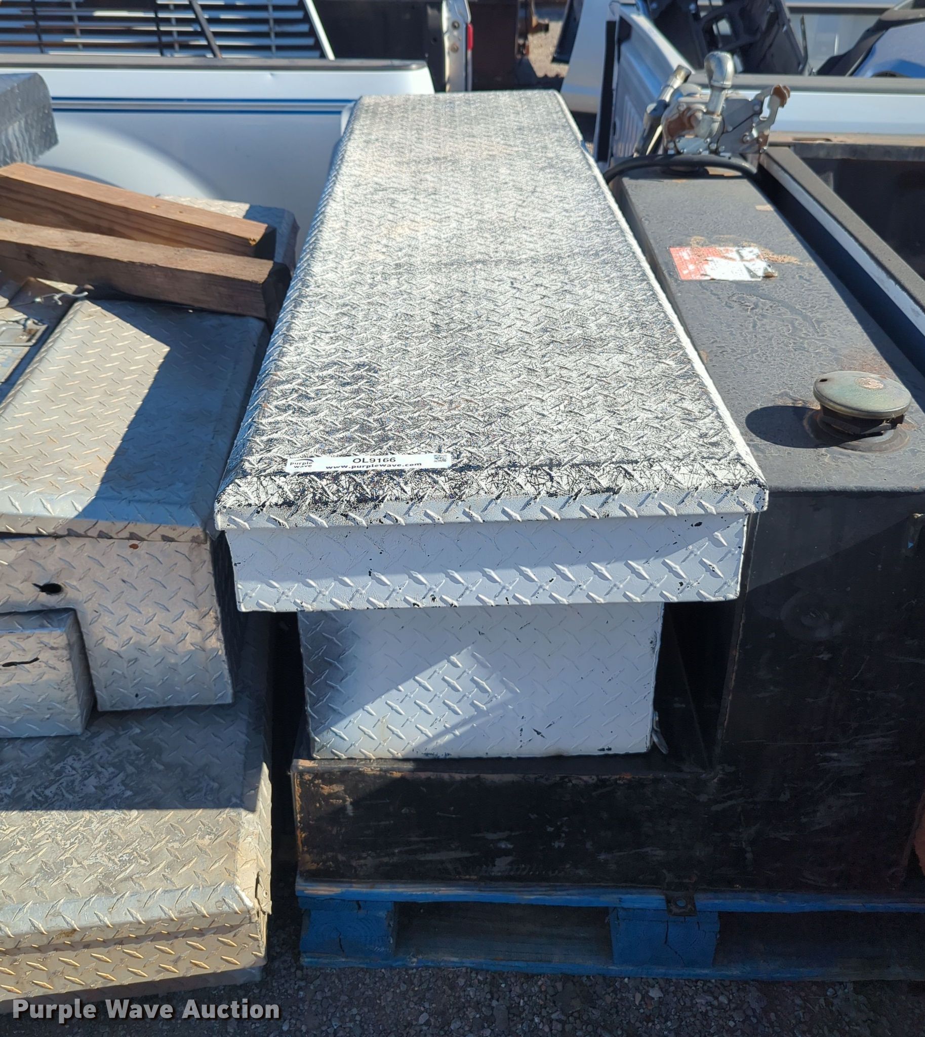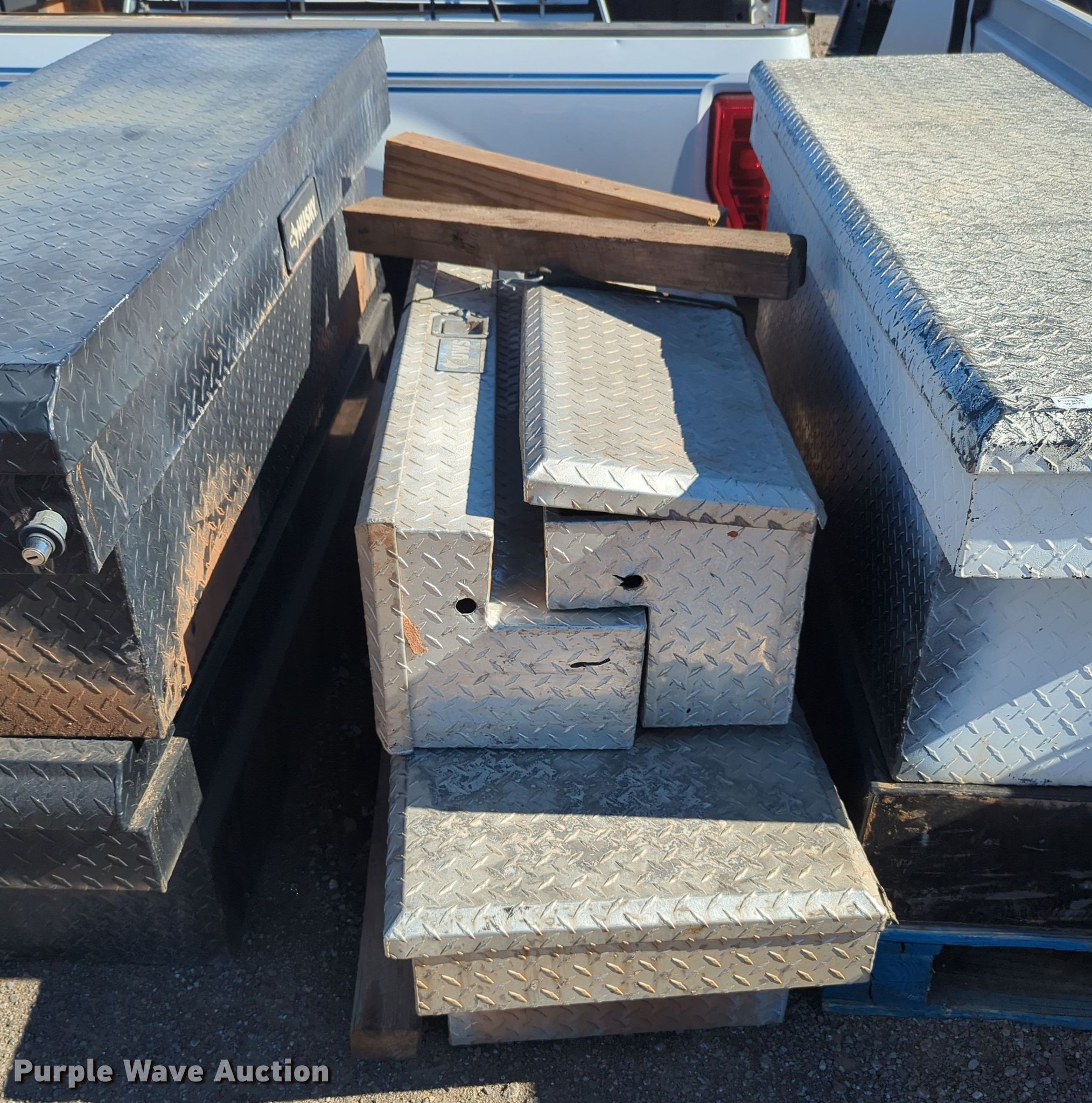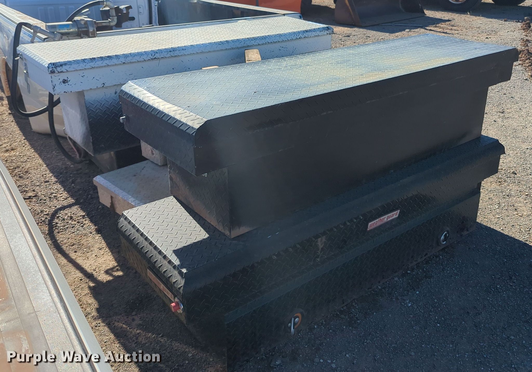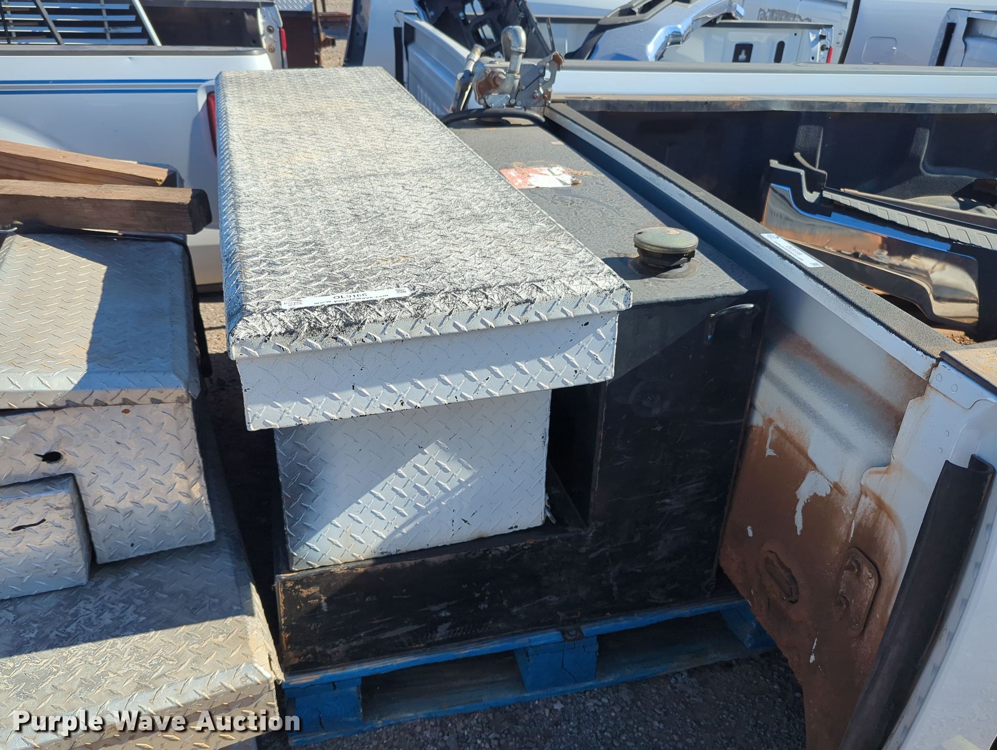 Purple Wave is selling a used Automotive Parts or Acces. in Oklahoma. This item is a Automotive parts with the following: (4) toolboxes, (2) side mount toolboxes, Auxiliary fuel tank, Pump, Hose, Nozzle