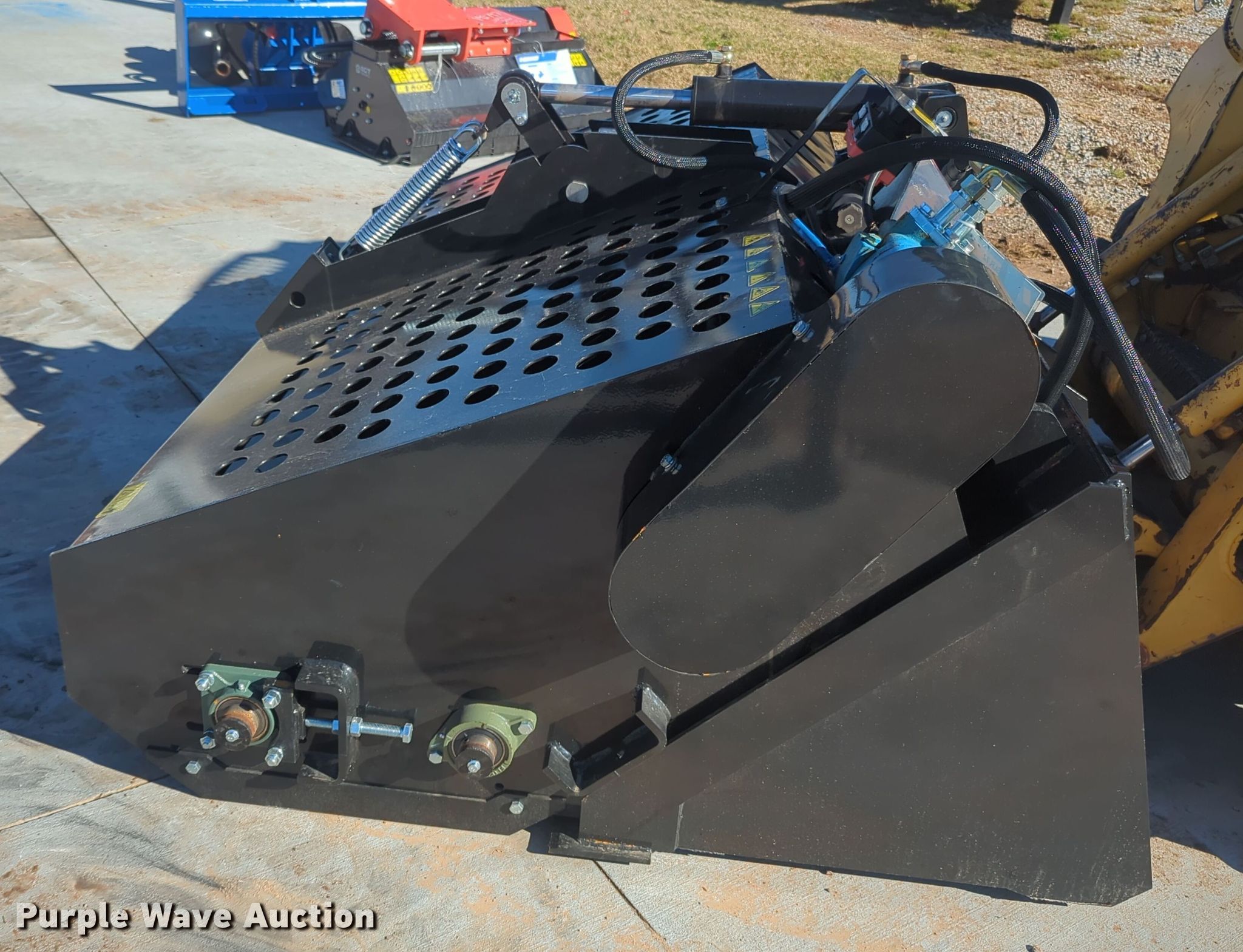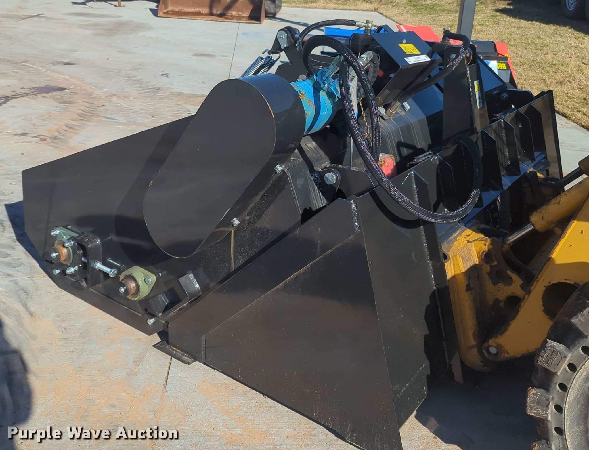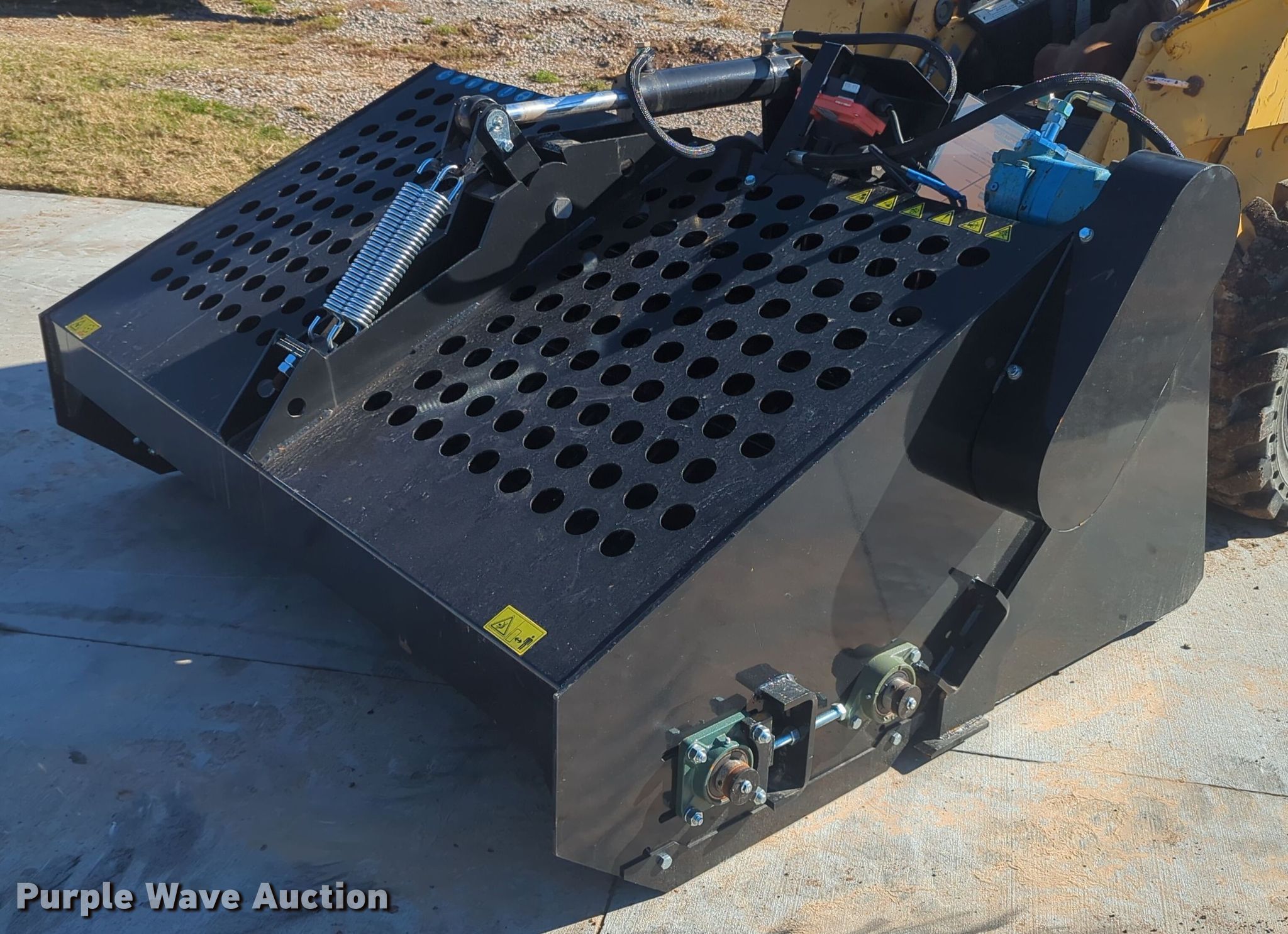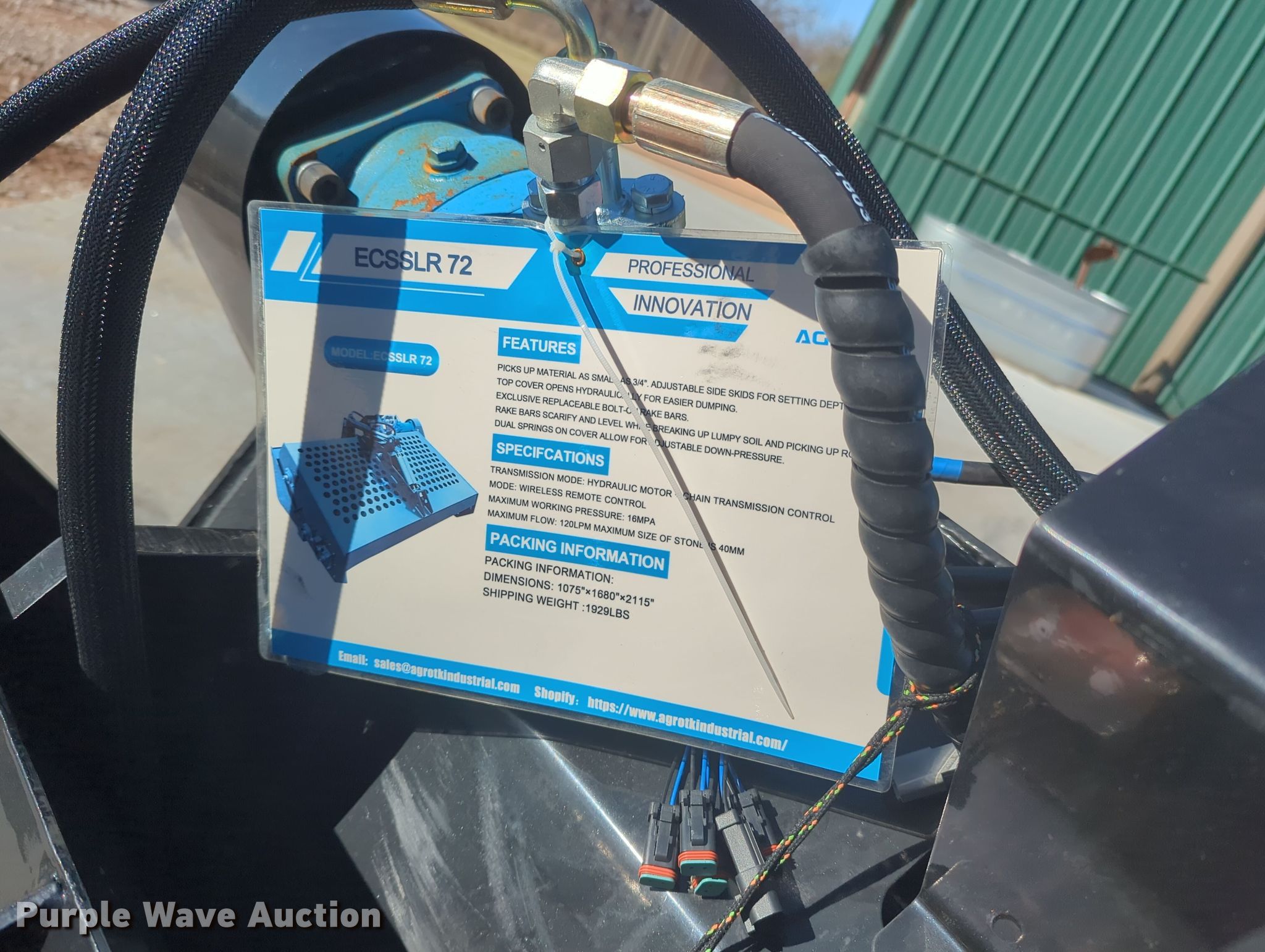 Purple Wave is selling a used Skid Steer Attach. in Oklahoma. This item is a 2023 TopCat ECSSLR72 skid steer landscape rake with the following: Serial: ECSSLR7223061101G, Width: 72", Length: 72", Unused, Remote control