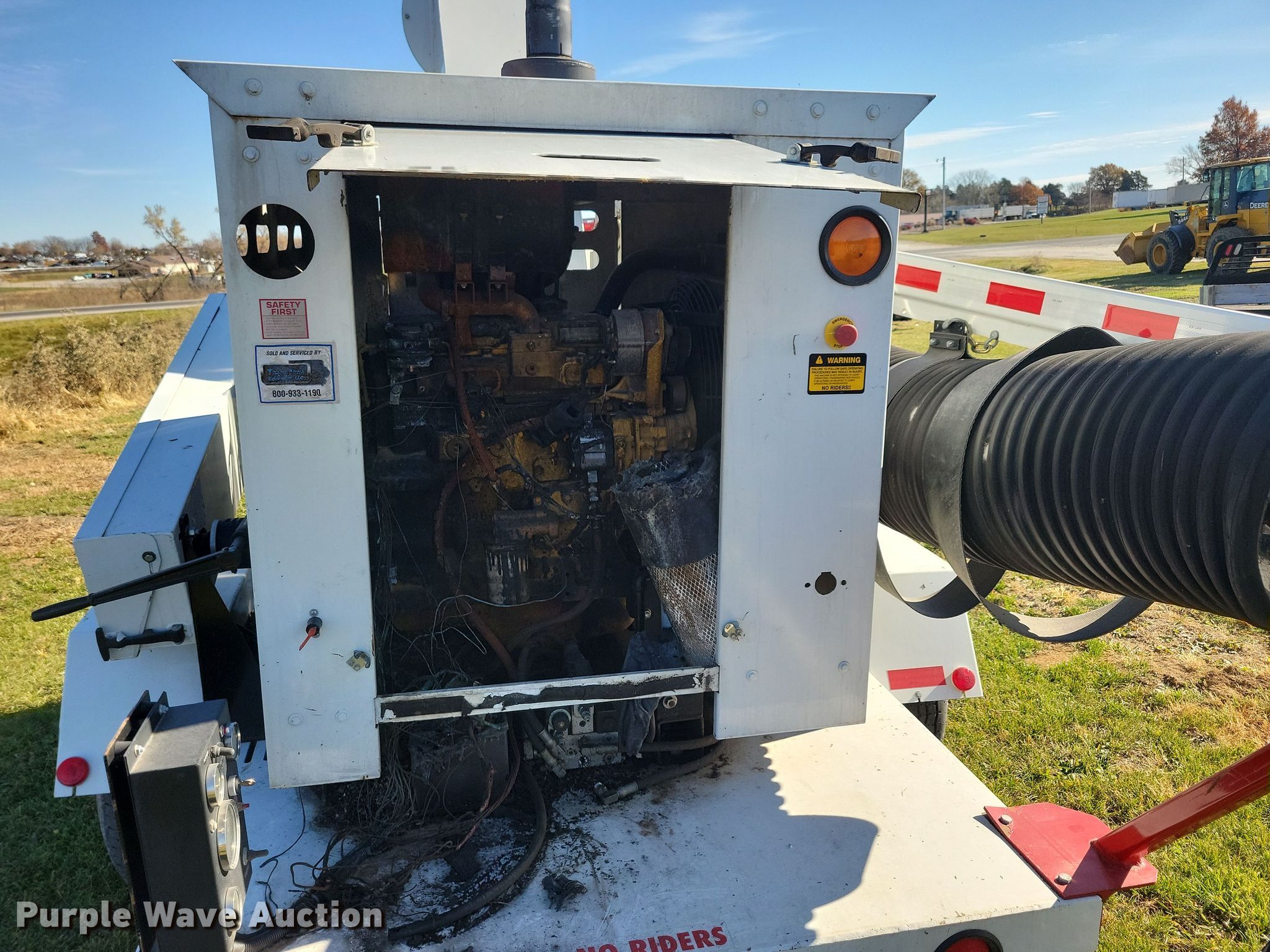 Tarco Windy Series Fort Miller FAB leaf vacuum trailer. Hours: Unknown, VIN: LJW1924A11456J02814. Engine John Deere, Displacement: 4.5L, Cylinders: 4, Fuel type: Diesel. Chassis Axles: Single, Suspension: Spring. Features Rear outlet: 16". Tires Size: 22575R15. Notes Fire damage, Non-operational engine, Non-operational unit. This is worksite support equipment and will not come with a title. Transfer of ownership documentation will be a bill of sale. Piper Motor Company. 501 S Washington St. Bloomfield, IA 52537