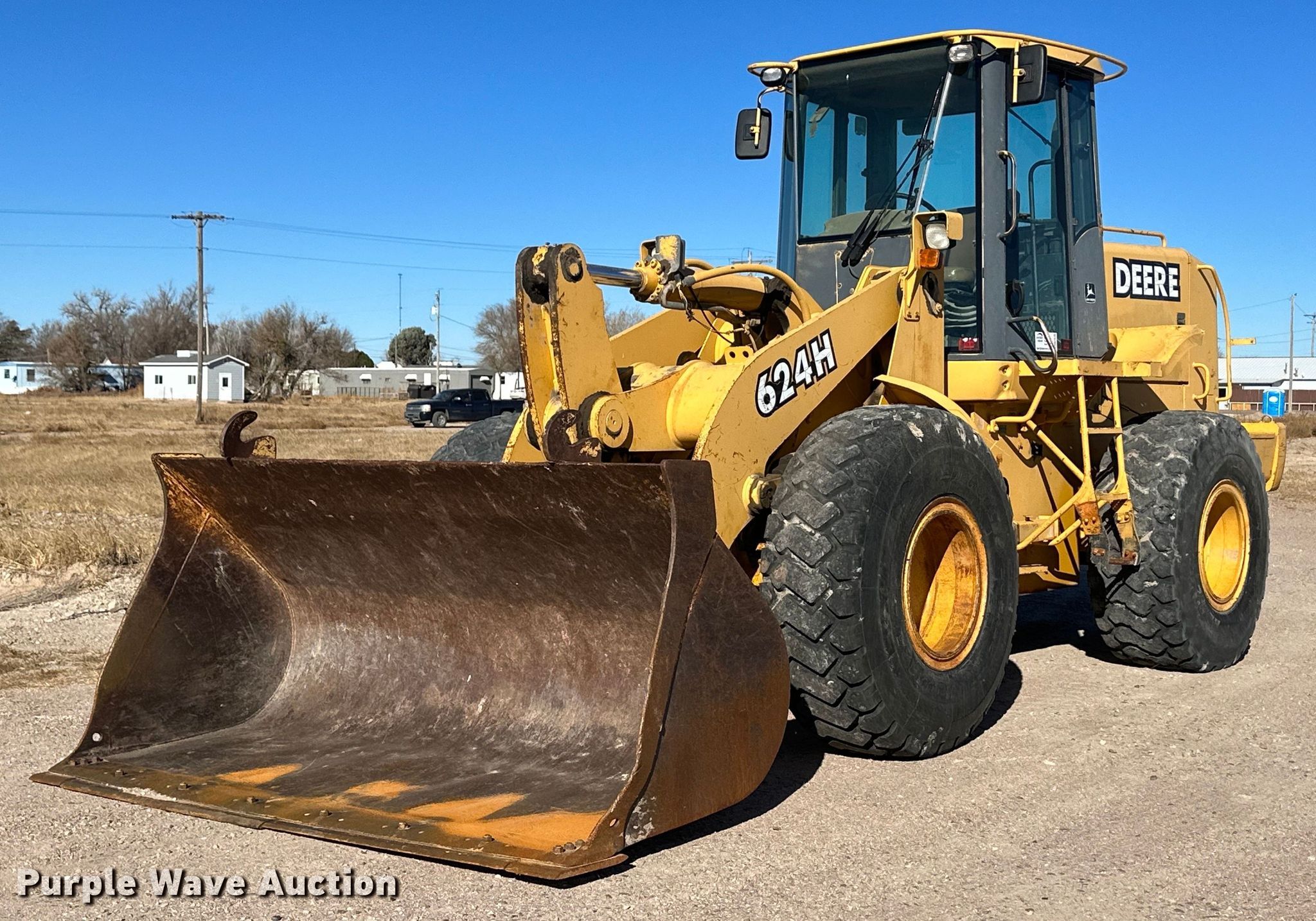 Purple Wave is selling a used Wheel Loader in Kansas. This item is a 1999 John Deere 624H wheel loader with the following: Hours: 7,734 on meter, Serial: DW624HX571487