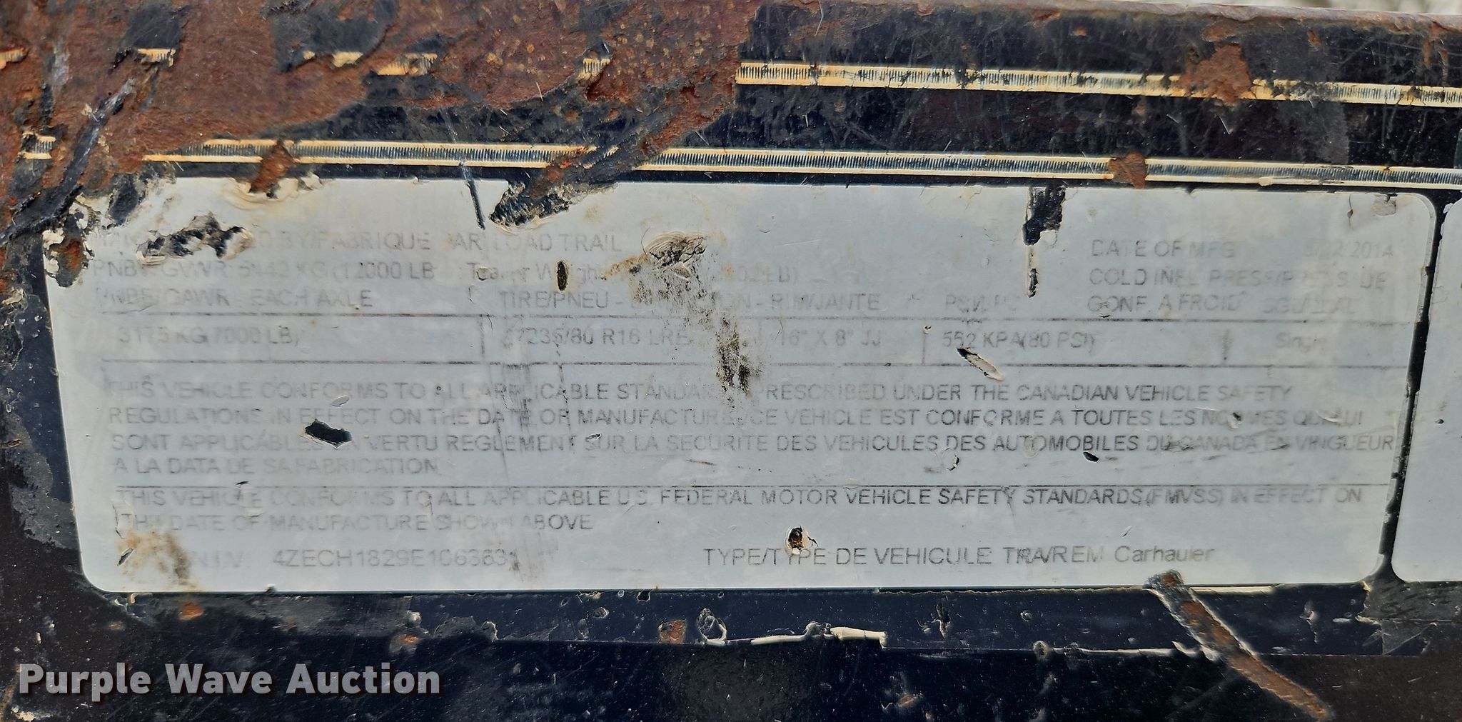 Purple Wave is selling a used Equip. Trailer in Kansas. This item is a 2014 Load Trail equipment trailer with the following: VIN: 4ZECH1829E1063631