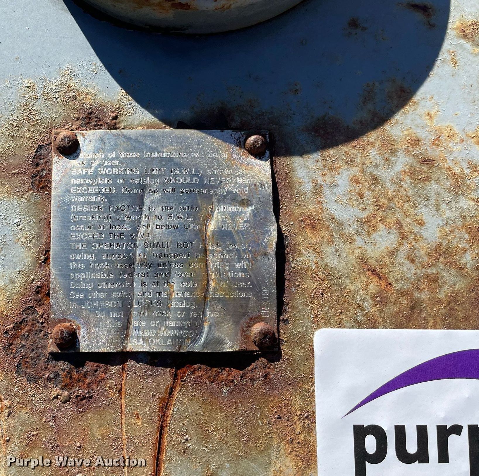 Purple Wave is selling a used Crane Attach. in Illinois. This item is a Johnson crane attachments with the following: Crane block and hook, Sheaves: 5, Capacity: 75 tons, Quick reeve, Crane ball and hook, Capacity: 12 tons