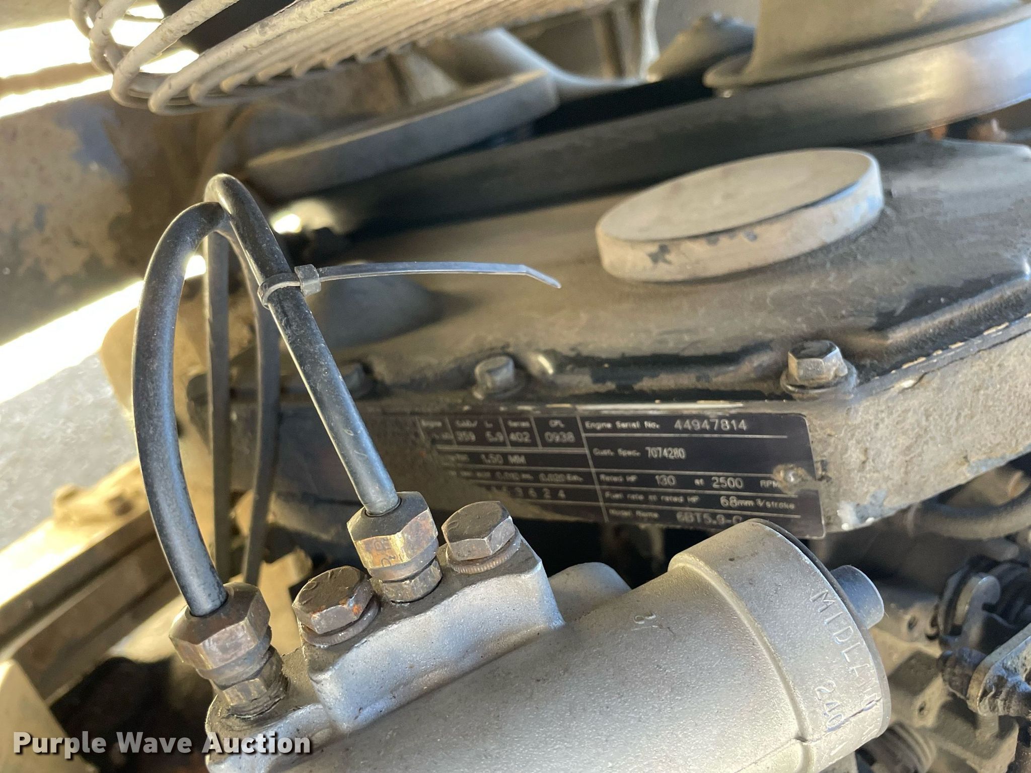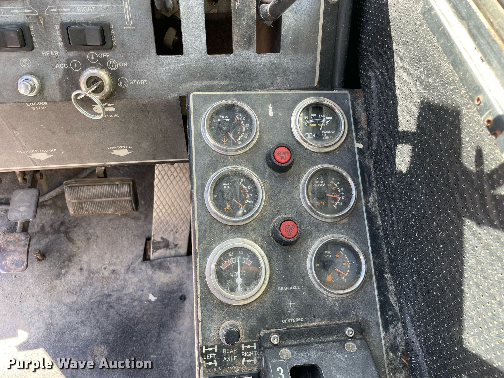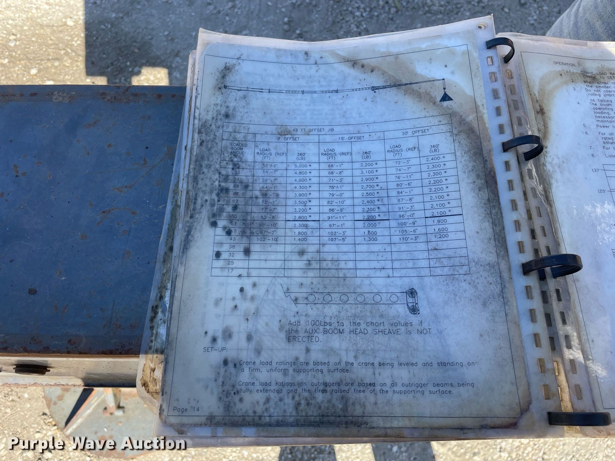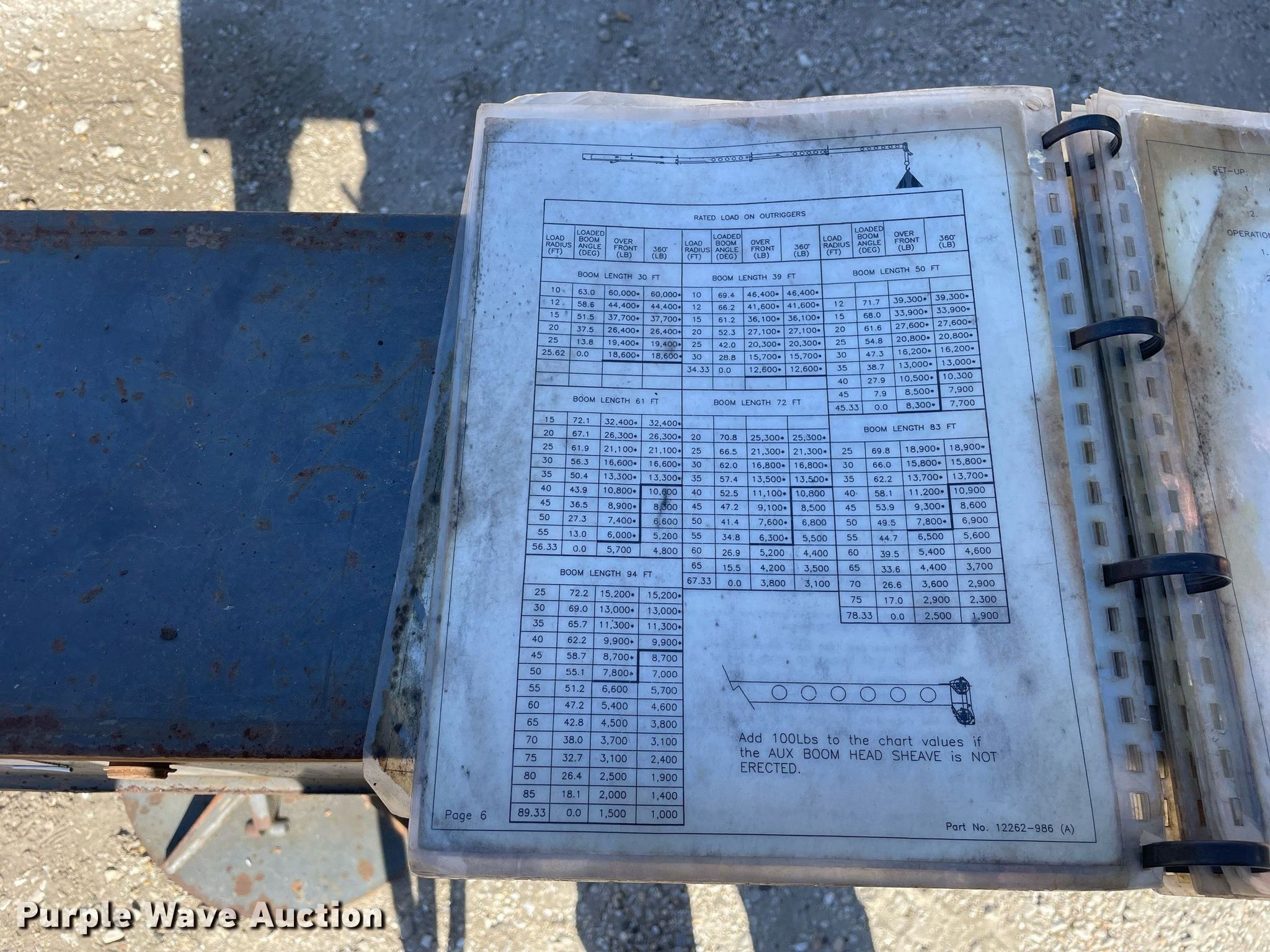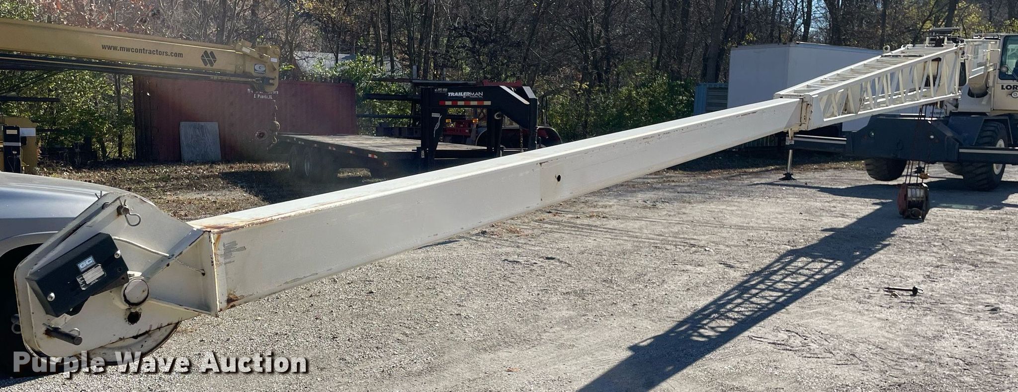 1994 Loraine LRT230E crane. Serial: 80277. Engine Cummins , Displacement: 5.9L, Cylinders: 6, Fuel type: Diesel. Transmission Powershift, 3F - 3R. Chassis Axles: Single, Brakes: Air. Operators station Enclosed cab, Heat, Crane controls: Stick, Upper interior Load monitor Microguard 404.. Features Boom Telescopic, Maximum boom length: 94' Sections: 4, Maximum lift capacity: 60,000 lbs, Maximum lift height: 137', Jib: 26' L, Stabilizers: 4, Boom controls In-cab, Winches: 1, Removable counter weight, Crane block Sheaves: 4, Capacity: 60,000 lbs, Crane ball & hook, Certification valid through: 07/2023, Manuals, Lift chart. Tires Size: 20.5-25. M&W Contractors, Inc.. 900 Cole Street. East Peoria, IL 61611