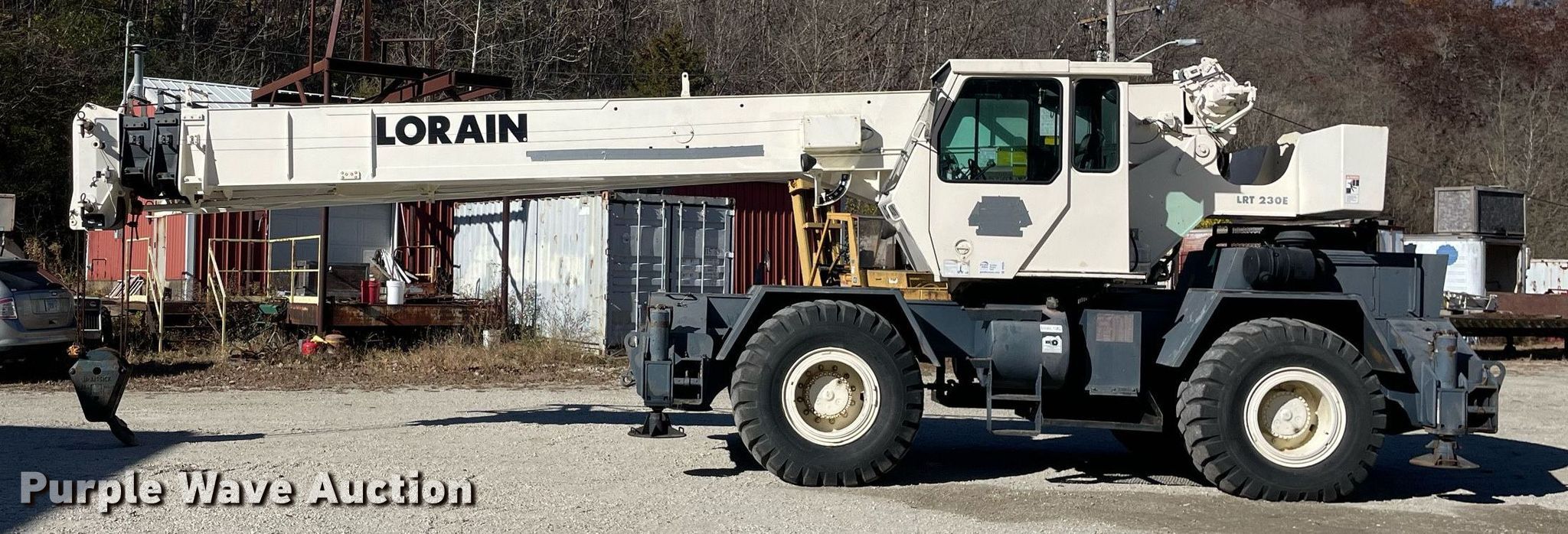 Purple Wave is selling a used Rough or All Terrain Crane in Illinois. This item is a 1994 Loraine LRT230E crane with the following: Serial: 80277