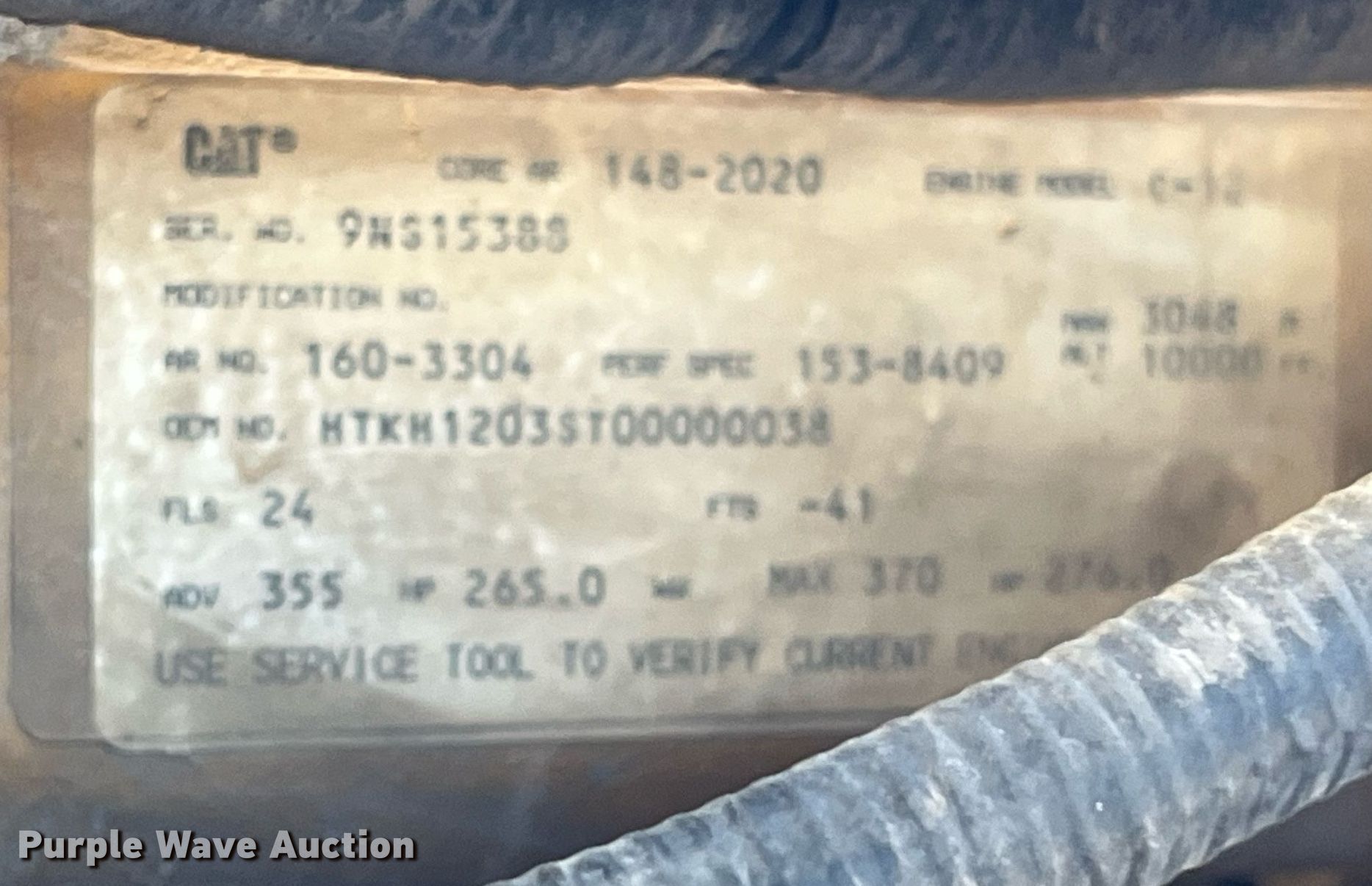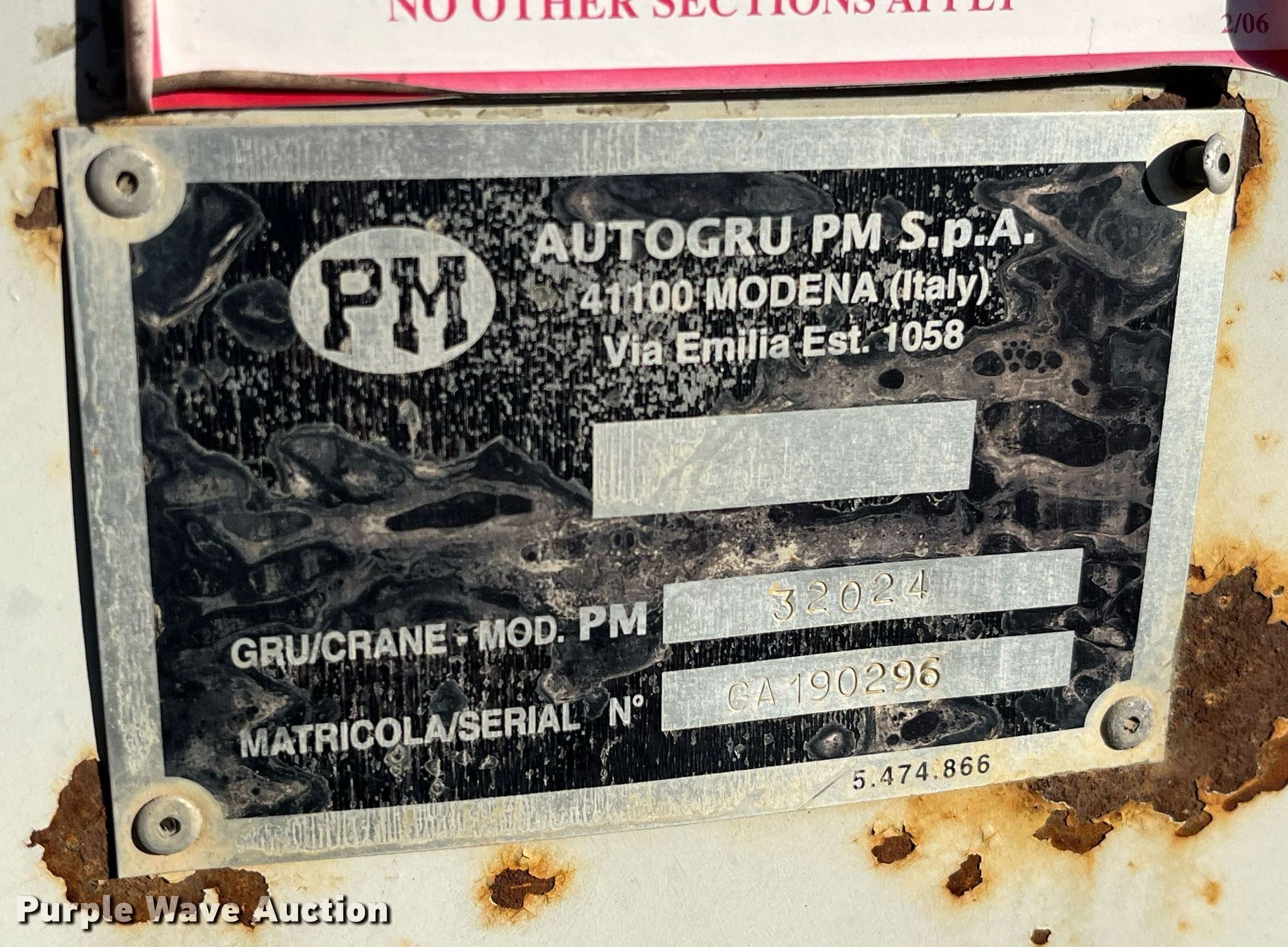 1999 Sterling A9500 crane truck. Miles: 227,008 on odometer, Hours: 18,703 on meter, VIN: 2FZXKEDB8XAA65166. Engine Caterpillar C-12, Serial: 9WS15388, Displacement: 10.3L, Cylinders: 6, Fuel type: Diesel, HP: 355, Engine brake. Transmission Eaton Fuller Roadranger RT & RTLO, Manual, Speed: 13. Chassis Axles: Triple, Tag axle, Suspension: Spring over walking beam, Brakes: Air, PTO, GVWR: 66,000 lbs FAWR: 20,000 lbs, IAWR: 23,000 lbs, RAWR: 23,000 lbs, Axle lock, Wheel lock. Interior AC, Heat, Heated mirrors, Cruise control, Brake controller. Features Flatbed 259.5" L x 96" W, Crane Autogru PM S.P.A. PM32024 Serial: GA190296, Telescopic, Knuckle, Sections: 5, Maximum lift capacity: 15,250 lbs, Boom controls Ground, Remote control, Lift chart. Tires Front: 425/65R22.5, Rear: 11R22.5, Lift axle: 255/70R22.5. Dump flatbed 24' L x 8' 6" W, Bed type: Steel, Ram: Dual. Notes Piece of steel pipe on bed not included, Trailer not included. Illinois title. Title distribution may be delayed up to 14 days from verification of funds. 886 State Route 106 West. Winchester, IL 62694