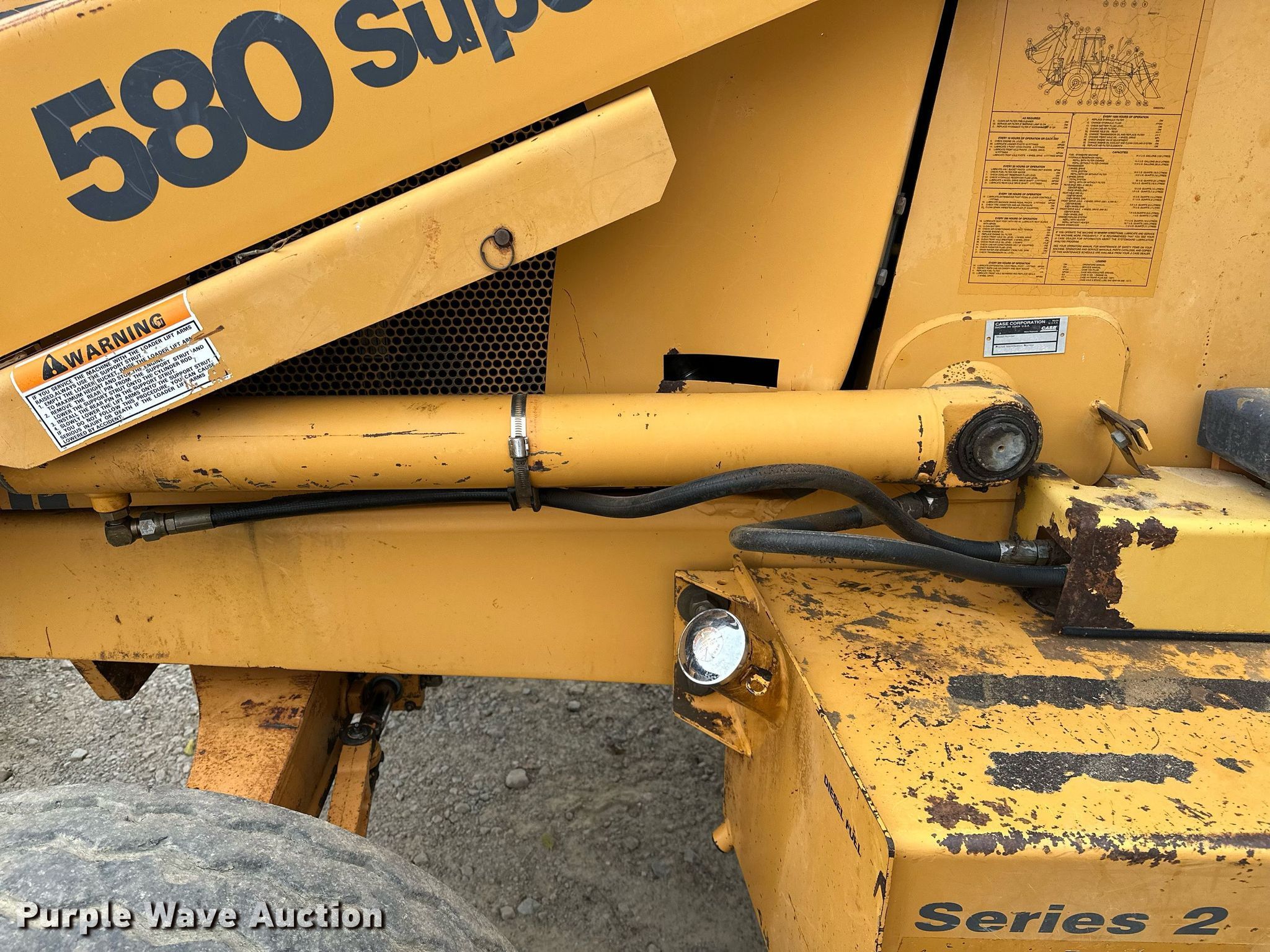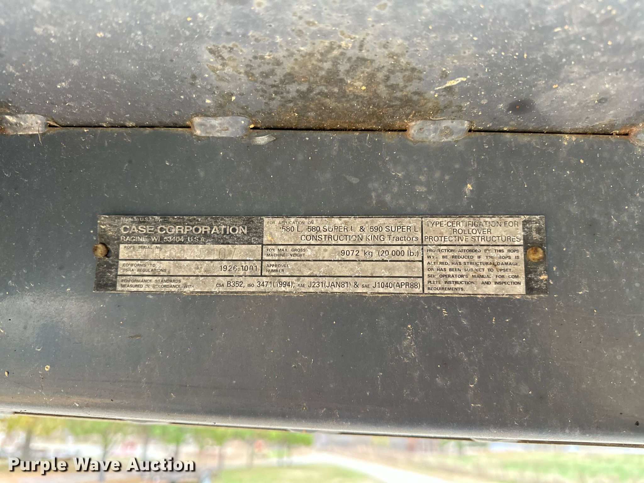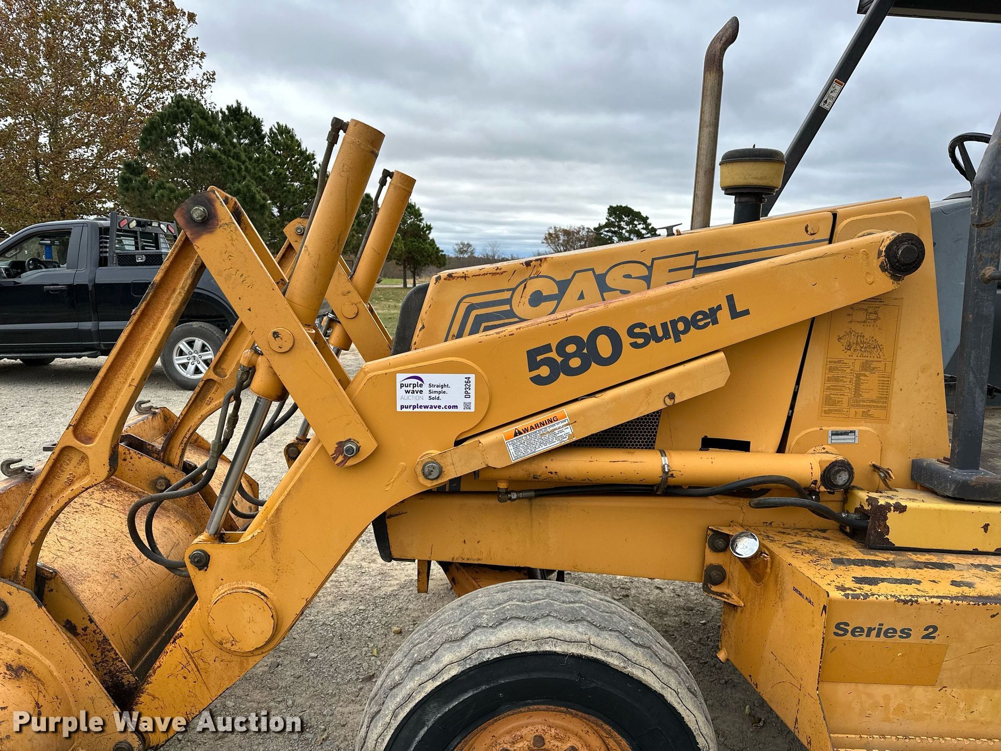 1997 Case 580 Super L Series II backhoe. Hours: 5,177 on meter, Serial: JJG0200678. Engine Case 4T-390, Serial: 45482972, Cylinders: 4, Fuel type: Diesel. Transmission Shuttle shift, 4F - 4R. Chassis Differential lock. Operators station OROPS, Backhoe controls: Wobble stick / two stick. Features Loader Bucket Width: 82", Cutting edge: Bolt-on, Backhoe Bucket Width: 16", Cutting edge: Weld-on, Teeth: 4.. Tires Front: 11L-16, Rear: 19.5L-24. Notes Possible transmission issues when cold. 30874A W Lona Valley Rd. Kinta, OK 74552