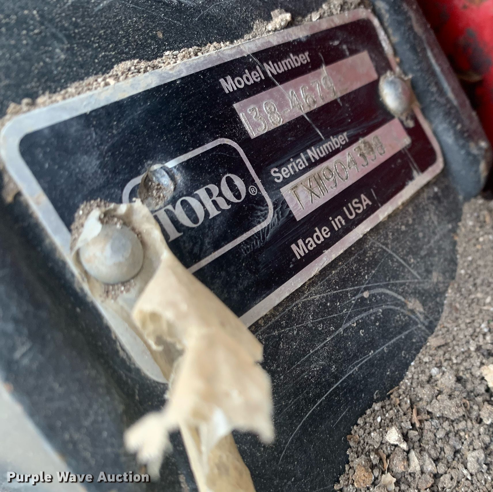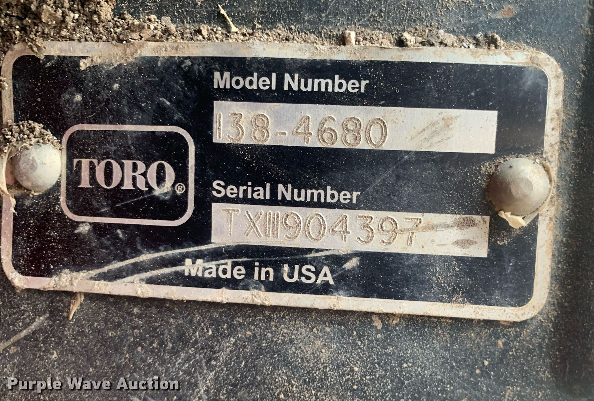 2016 Toro 22327 compact utility loader. Hours: 380 on meter, Serial: 316000388. Engine Kubota D1305-EF03, Displacement: 1.3L, Cylinders: 3, Fuel type: Diesel. Transmission Hydrostatic. Operators station Bucket control: Hand. Features Auxiliary hydraulics, Quick coupler: Manual, Bucket Toro 22520, Width: 34", Cutting edge: Weld-on. Tracks Width: 6". Carroll Distributing & Construction Supply. 10930 Petal Street. Dallas, TX 75238