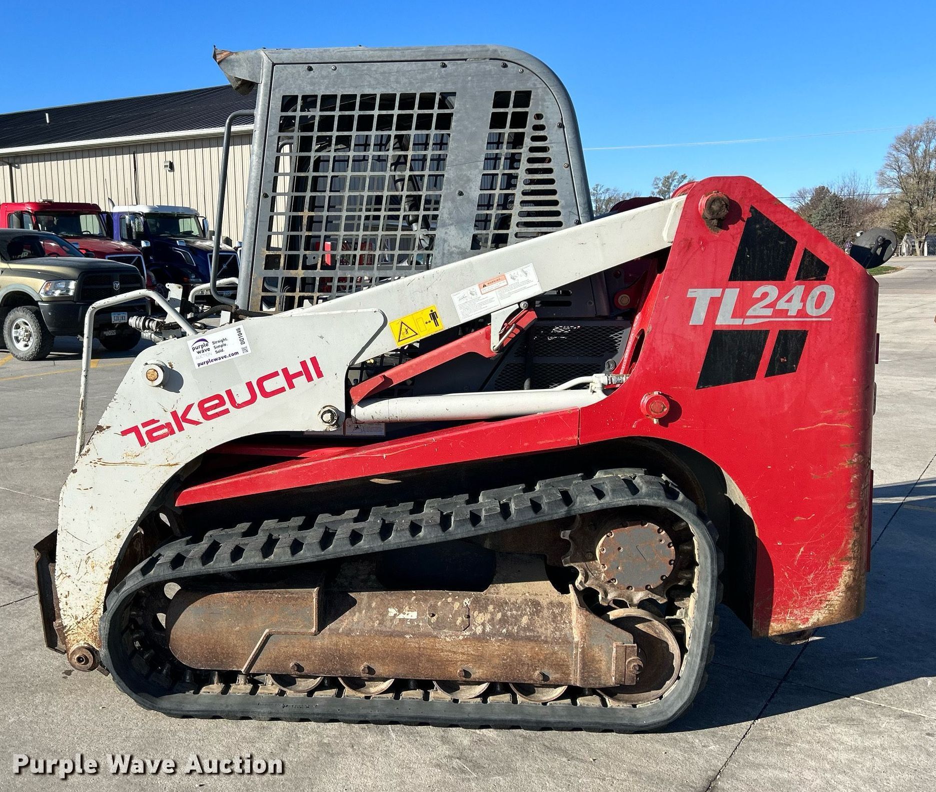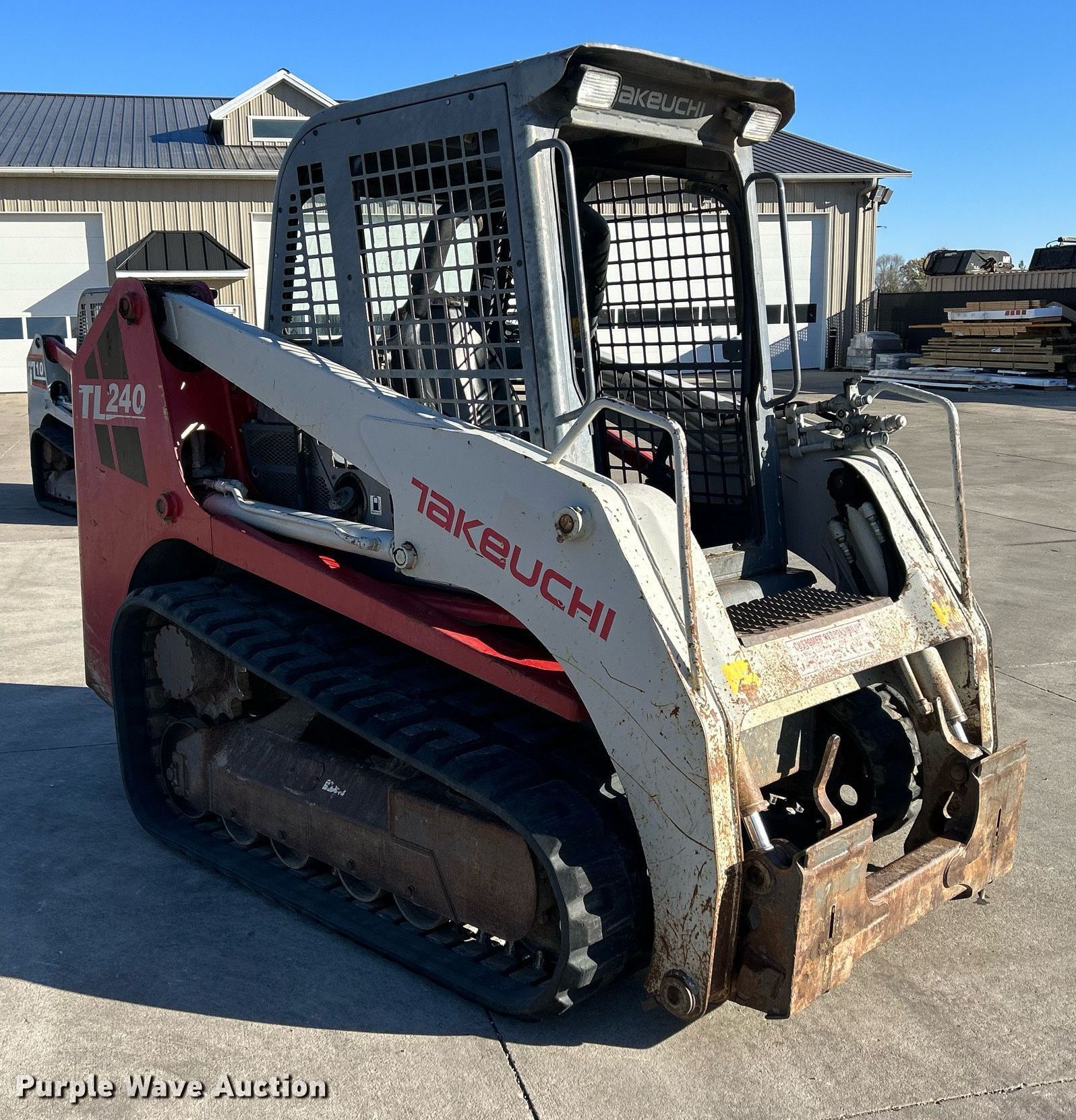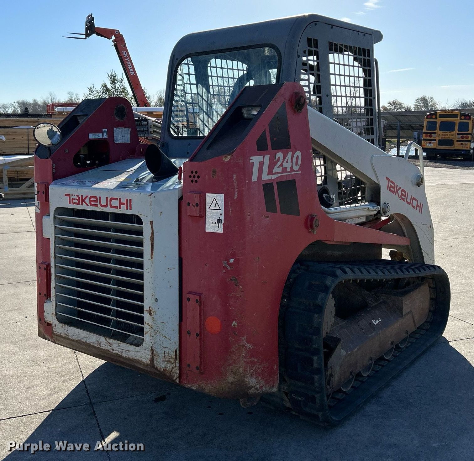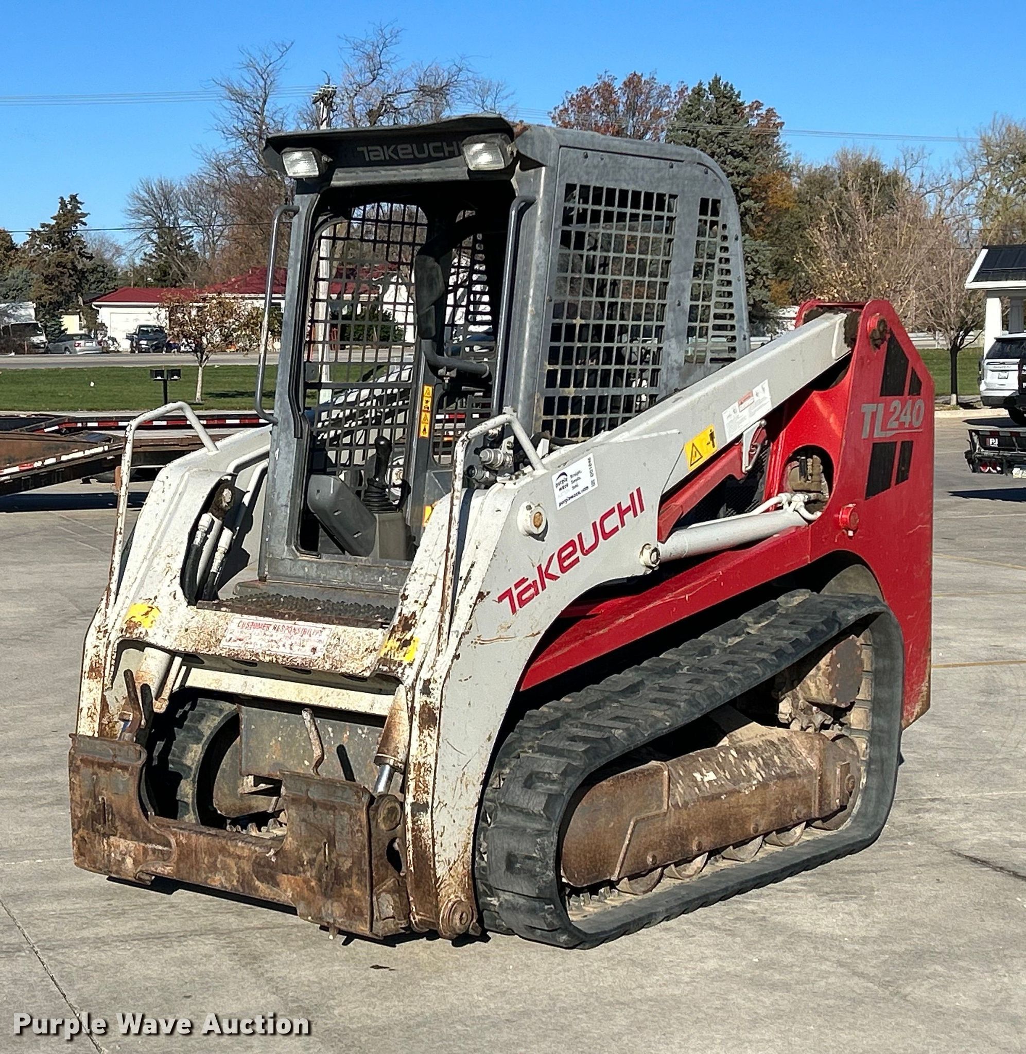 Purple Wave is selling a used Tracked Skid Steer Loader in Iowa. This item is a 2012 Takeuchi TL240 tracked skid steer loader with the following: Hours: 3,295 on meter, Serial: 224001806
