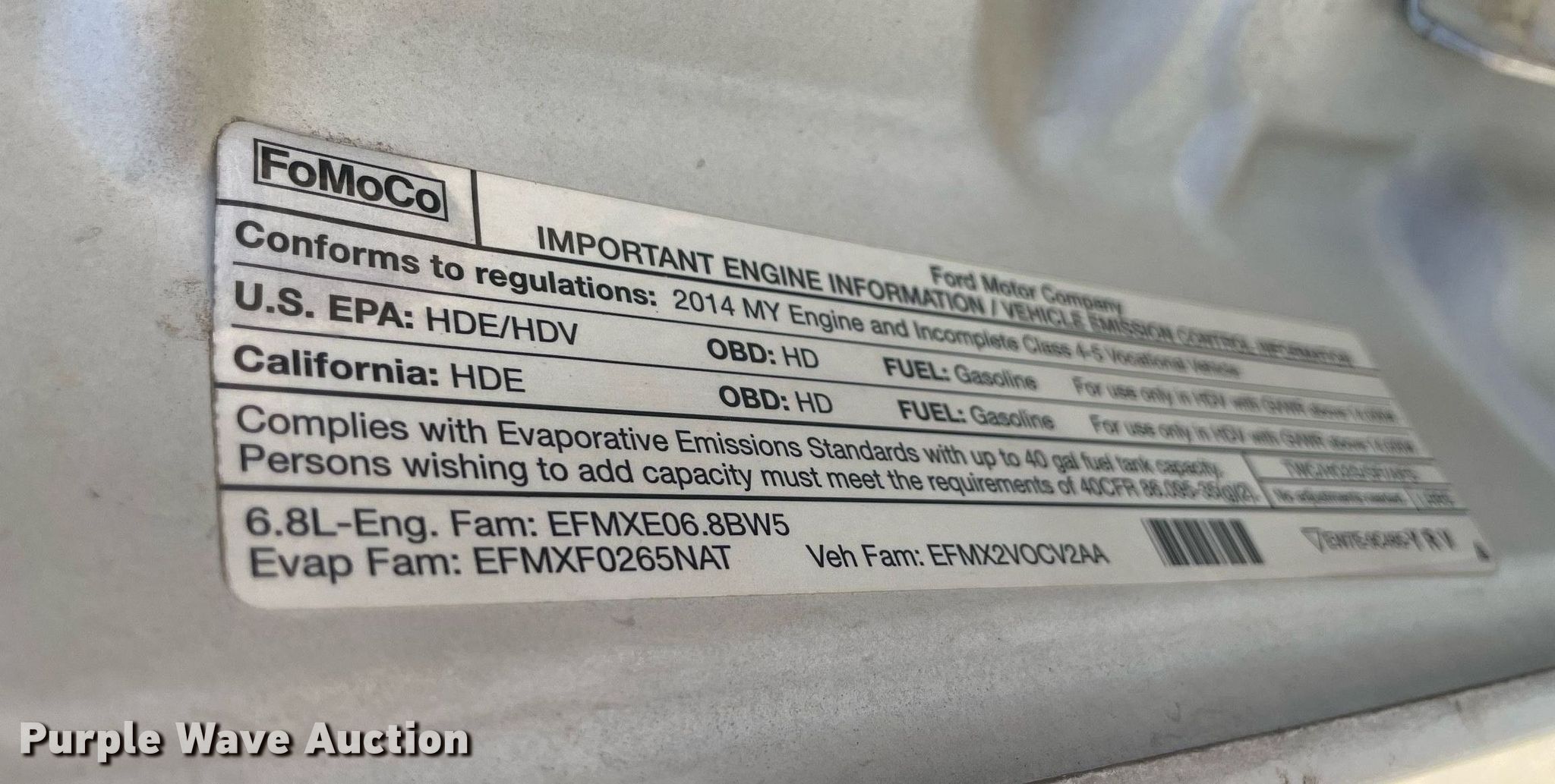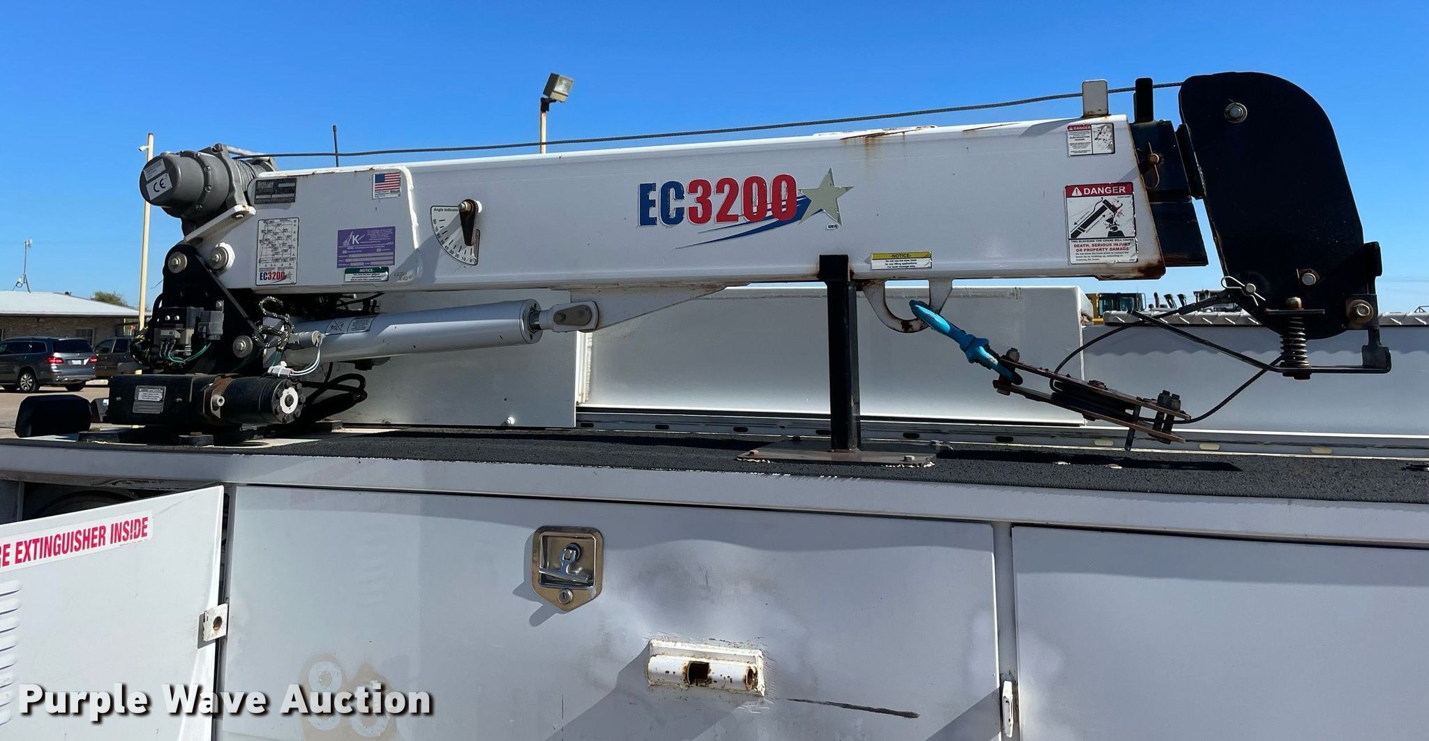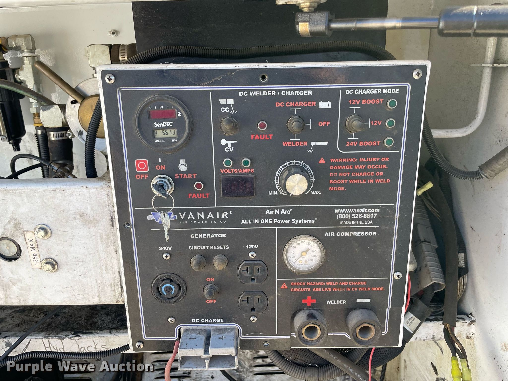 2014 Ford F550 Super Duty utility / service truck. Miles: 175,956 on odometer, VIN: 1FDUF5GY8EEB69343. Engine Displacement: 6.8L , Cylinders: 10, Fuel type: Gas. Transmission Automatic. Chassis Axles: Single, Suspension: Spring, Brakes: Hydraulic, GVWR: 19,500 lbs. Interior AC, Heat, Heated mirrors, Power windows, Power locks, Cruise control, Auxiliary controls, Brake controller. Features Bed 12' 6" L x 8' W, Welder/generator Vanair All In One Power systems, Hours: 567 on meter, 240V outlets: 1, 120V outlets: 2, Hours: 567 on meter, Welder type: CC, CV, Stick (AC/DC), Air compressor, Oil/lube system Make: Liquid Dynamics, Hose reels, Nozzles, Pump, Reservoirs Grease, Used oil, Crane Stellar EC3200, Maximum boom length: 16' Maximum lift capacity: 3,200 lbs.. Tires Size: 225/70R19.5. Notes Windshield chipped or cracked. Texas title. Title distribution may be delayed up to 14 days from verification of funds. Howard Equipment Company. 1310 N Cresson Hwy. Cresson, TX 76035