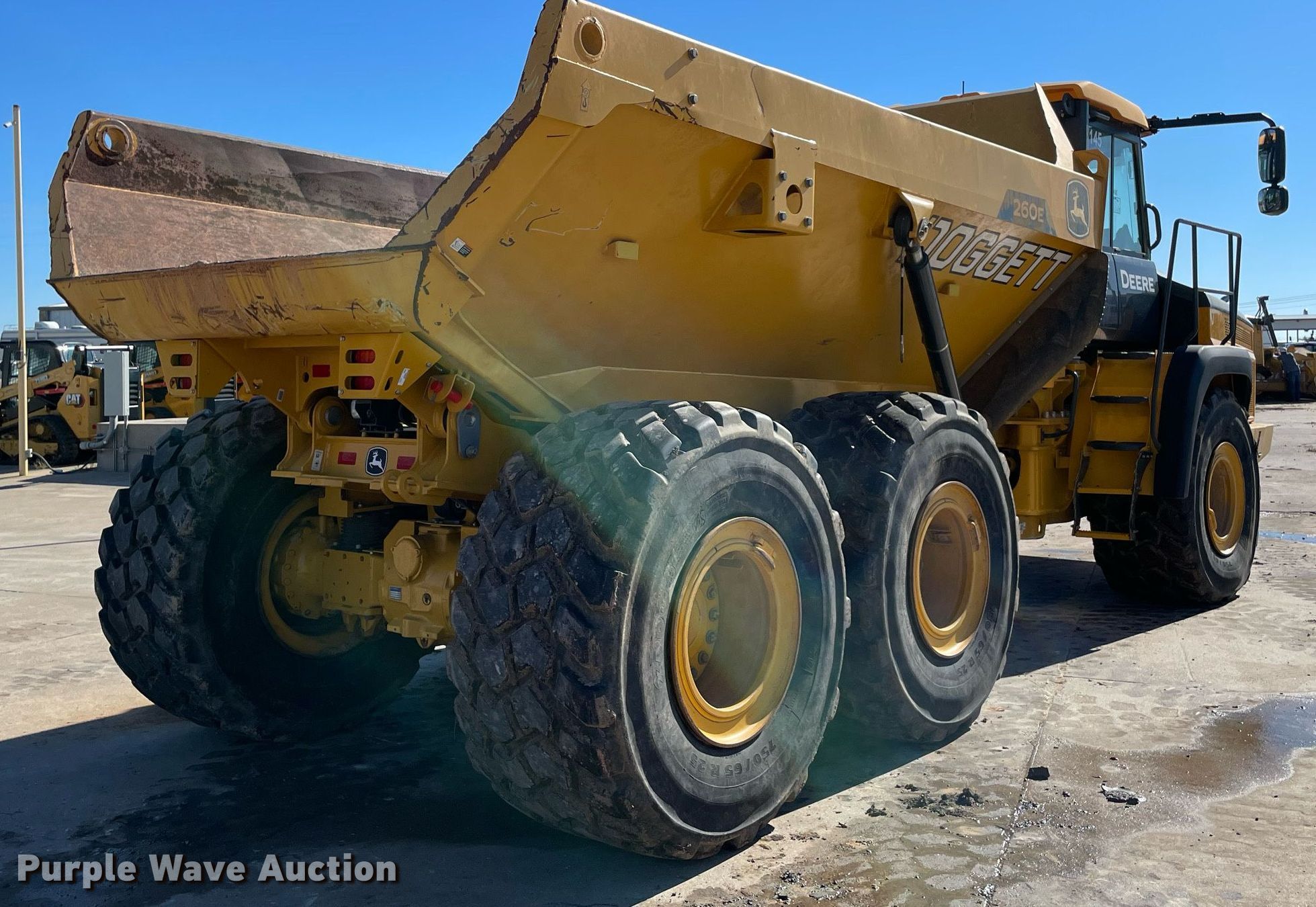 2022 John Deere 260E haul truck. Miles: 10,944 on odometer, Hours: 2,592 on meter, Serial: 1DW260ETPNF713145. Engine John Deere 6090HDW43, Displacement: 9.0L, Fuel type: Diesel. Transmission Automatic. Chassis Six wheel drive. Interior AC, Heat, Backup camera. Features Dump bed Capacity: 19.6 cu.yd.. Tires Size: 730/65R25. Howard Equipment Company. 1310 N Cresson Hwy. Cresson, TX 76035