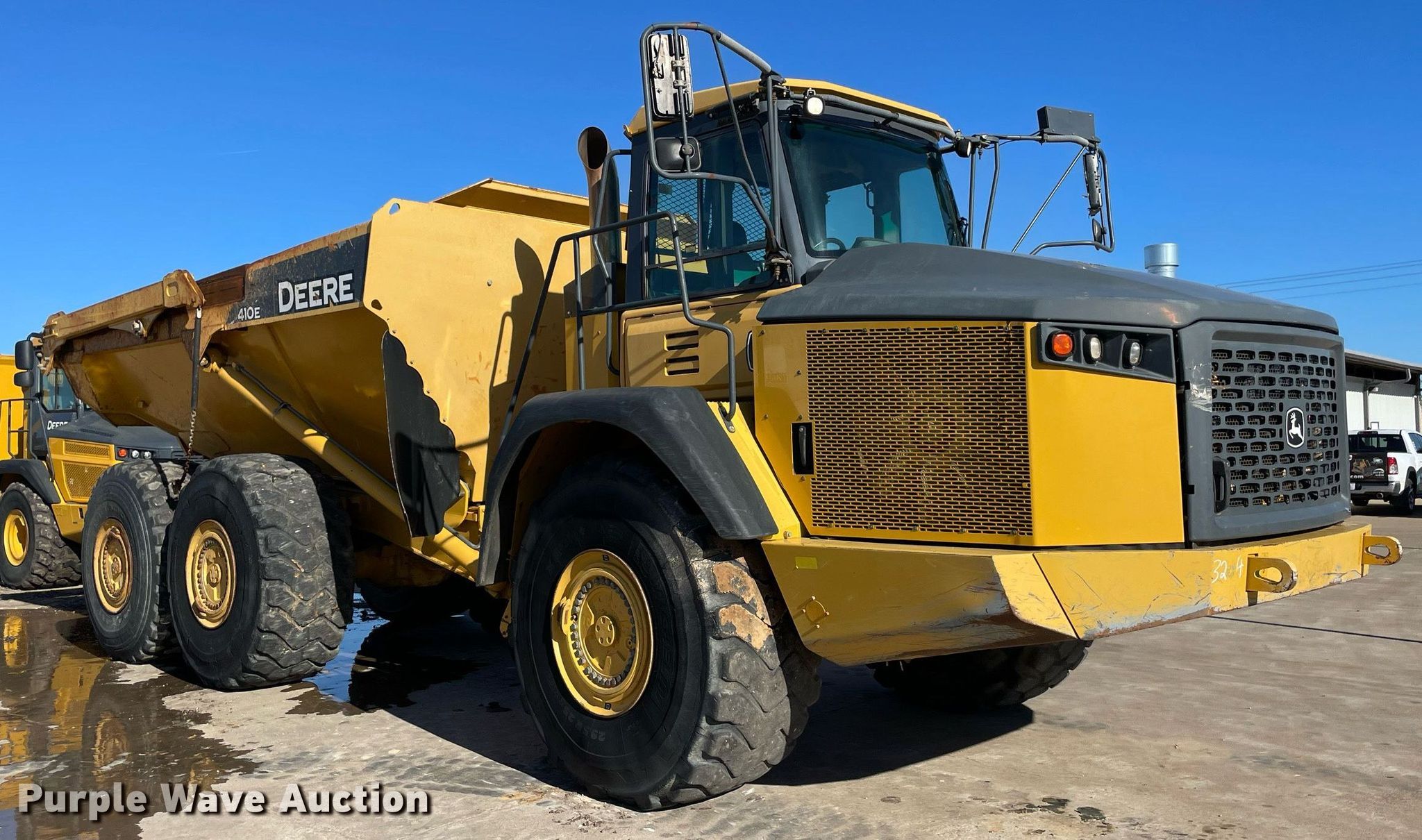 Purple Wave is selling a used Articulated Haul Truck in Texas. This item is a 2015 John Deere 410E haul truck with the following: Miles: 39,968 on odometer, Hours: 10,324 on meter, Serial: 1DW140ETHEE664374