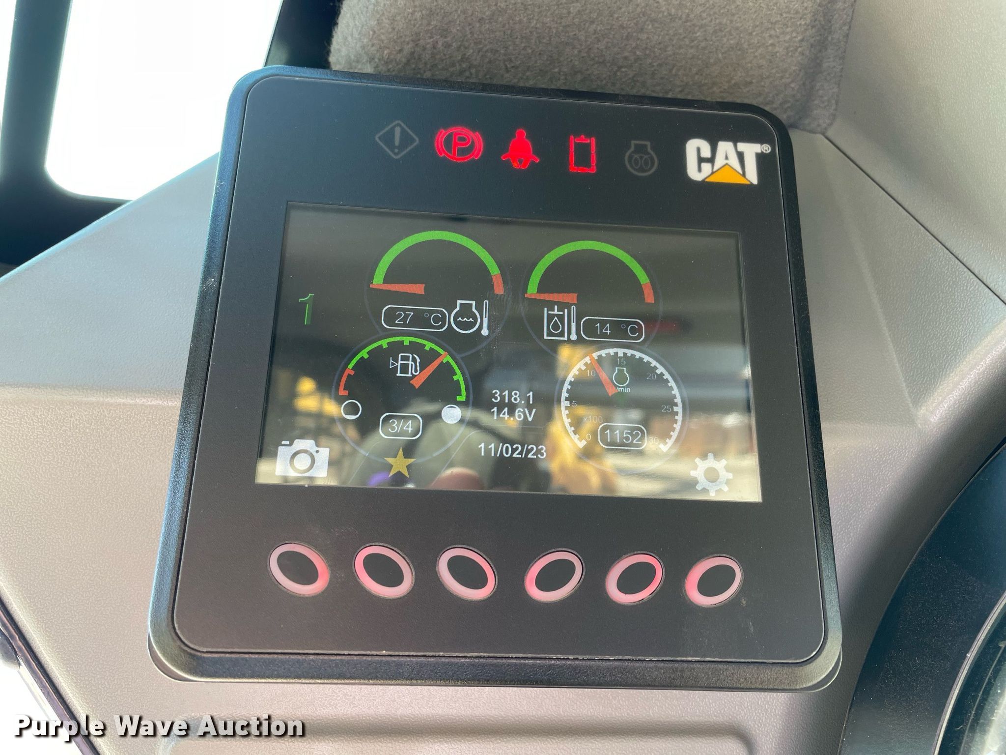 2021 Caterpillar 259D3 tracked skid steer loader. Hours: 318 on meter, Serial: CAT0259DACW909473. Engine Caterpillar C3.3, Displacement: 3.3L, Cylinders: 4, Fuel type: Diesel. Transmission Hydrostatic, Two speed travel. Operators station Enclosed cab, AC, Bucket control: Hand, Pattern changer, Electronic Monitoring System panel. Features Auxiliary hydraulics, Auxiliary electrical outlet, Quick coupler: Hydraulic, Bucket Width: 72". Tracks Width: 15". Howard Equipment Company. 1310 N Cresson Hwy. Cresson, TX 76035