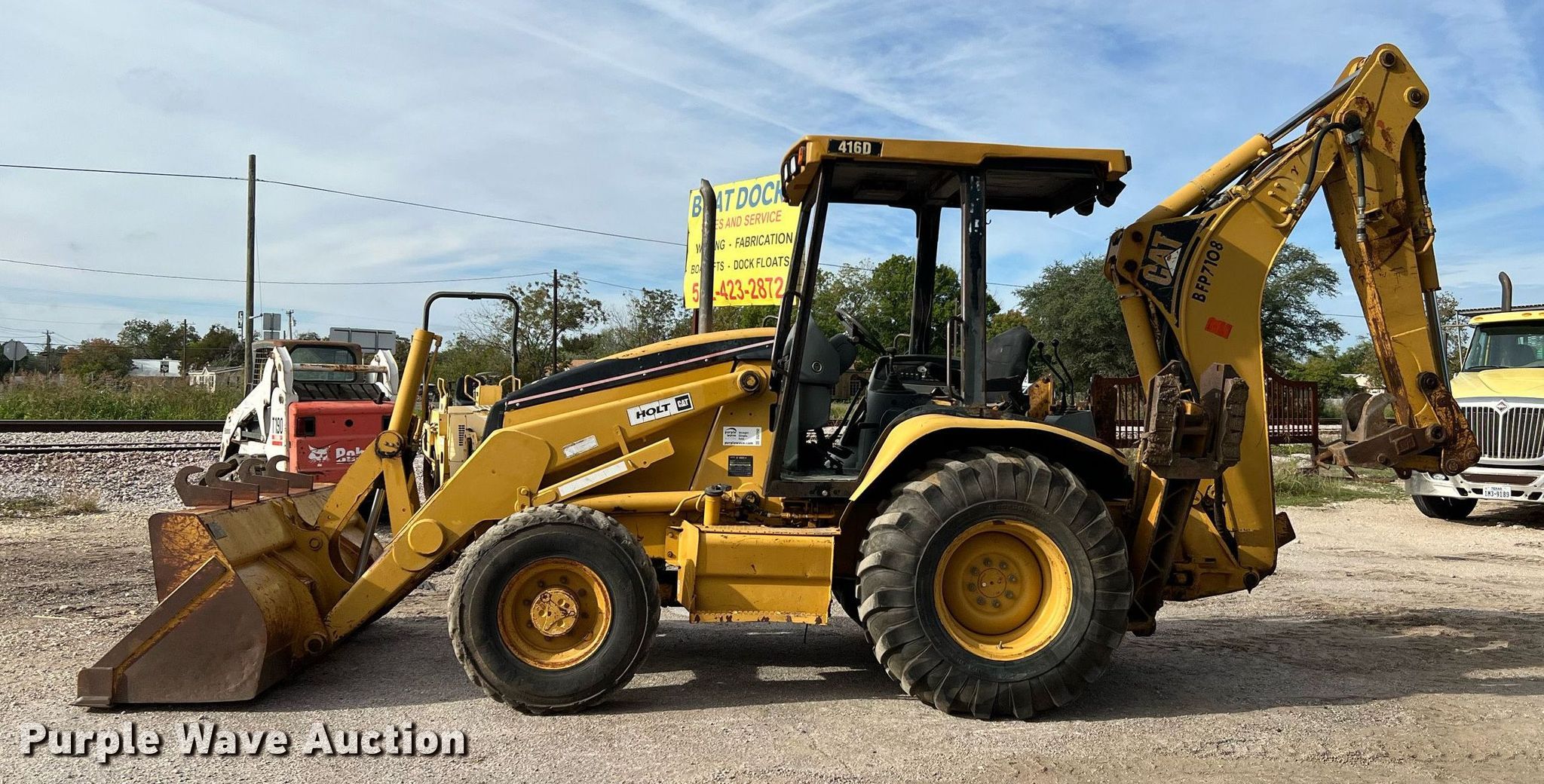 Purple Wave is selling a used Tractor Loader Backhoe in Texas. This item is a 2003 Caterpillar 416D backhoe with the following: Hours: Unknown, Serial: CAT0416DABFP07108