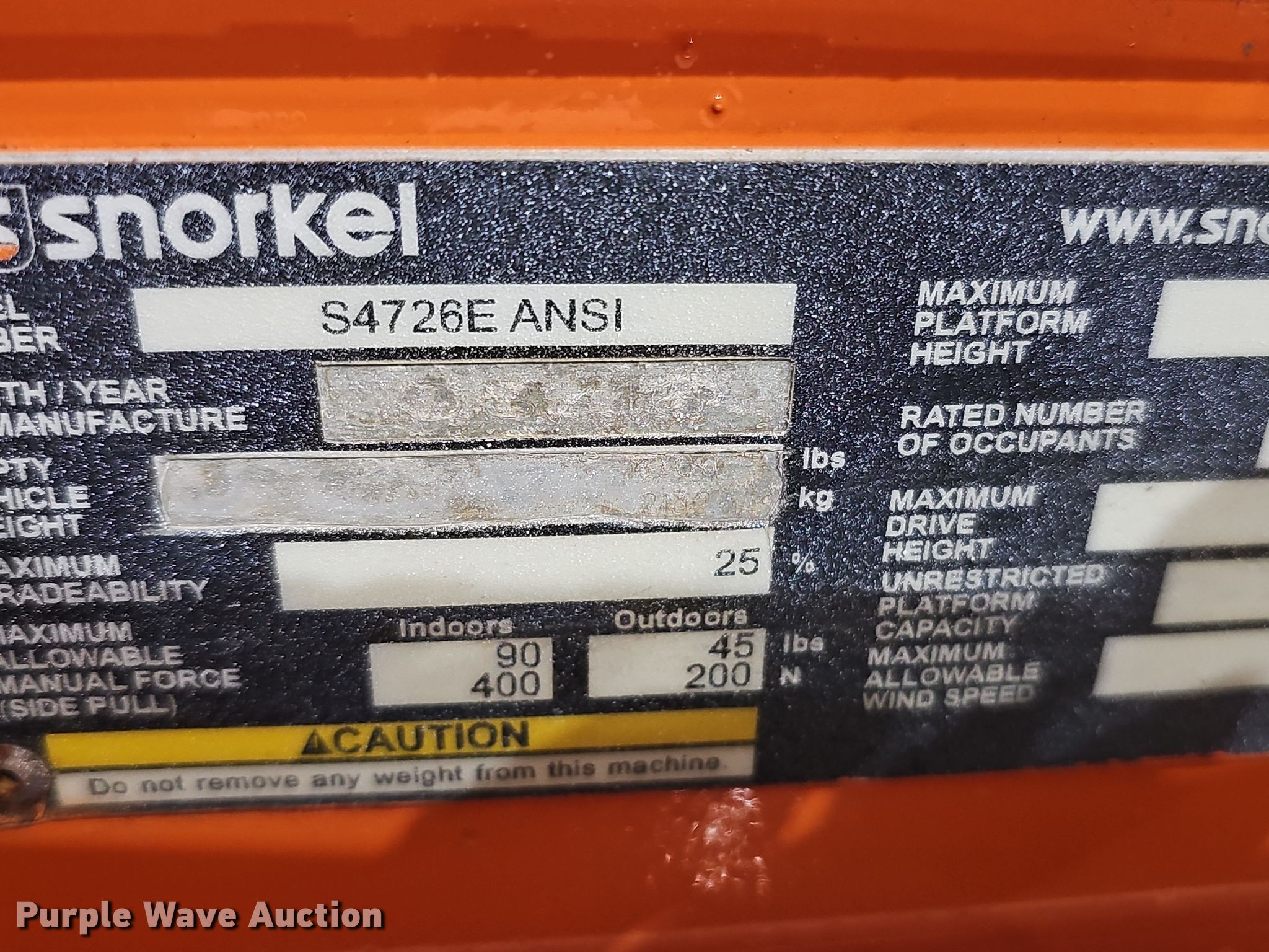 Snorkel S4726E scissor lift | SOLD! December 14 Construction Equipment Auction