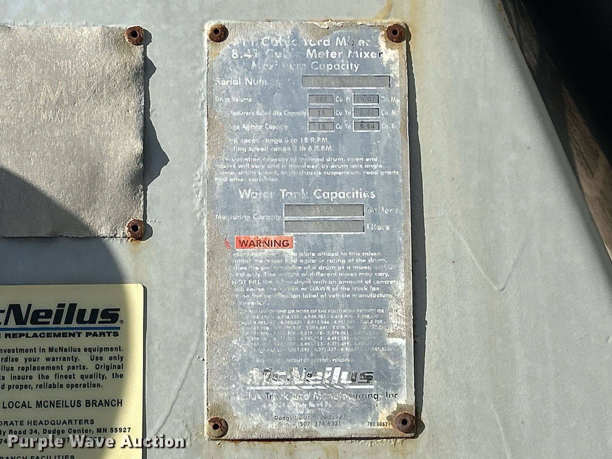 1998 Mack RD600 ready mix truck. Miles: 162,693 on odometer, Hours: 17,840 on meter, VIN: 1M2P264C7WM025670, Unit #: 57098106. Engine Mack, Displacement: 12.0L , Cylinders: 6, Fuel type: Diesel. Transmission Mack Maxitorque, Manual, Speed: 8. Chassis Axles: 4, Pusher axle Steerable, Tag axle Steerable, Differential lock: Inter-axle, Suspension: Camelback, Brakes: Air, Wheelbase: 250". Interior Heat, Heated mirrors. Features Mixer McNeilus , Capacity: 11 cu.yd., Discharge: Rear, In-cab controls, Rear drum controls, Water tank capacity: 125 gallons, Chute Extensions: 1, Chute type: Steel.. Tires Front: 425/65R22.5, Rear: 11R22.5, Lift axle: 255/70R22.5, Tag axle: 11R22.5. Iowa title. Title distribution may be delayed up to 14 days from verification of funds. Croell Redi-Mix. 2010 Kenwood Ave. New Hampton, IA 50659