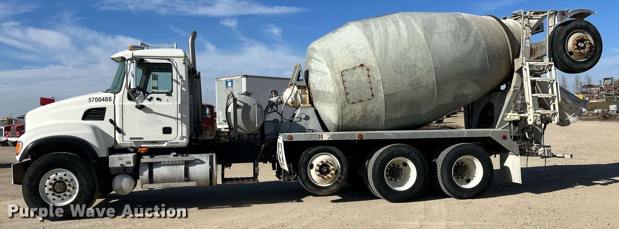 Purple Wave is selling a used Ready Mix or Pump Truck in Iowa. This item is a 2004 Mack CV513 ready mix truck with the following: Miles: 209,249 on odometer, Hours: 18,565 on meter, Miles or hours may vary, unit still in use, VIN: 1M2AG02C74M001843, Unit #: 5700486