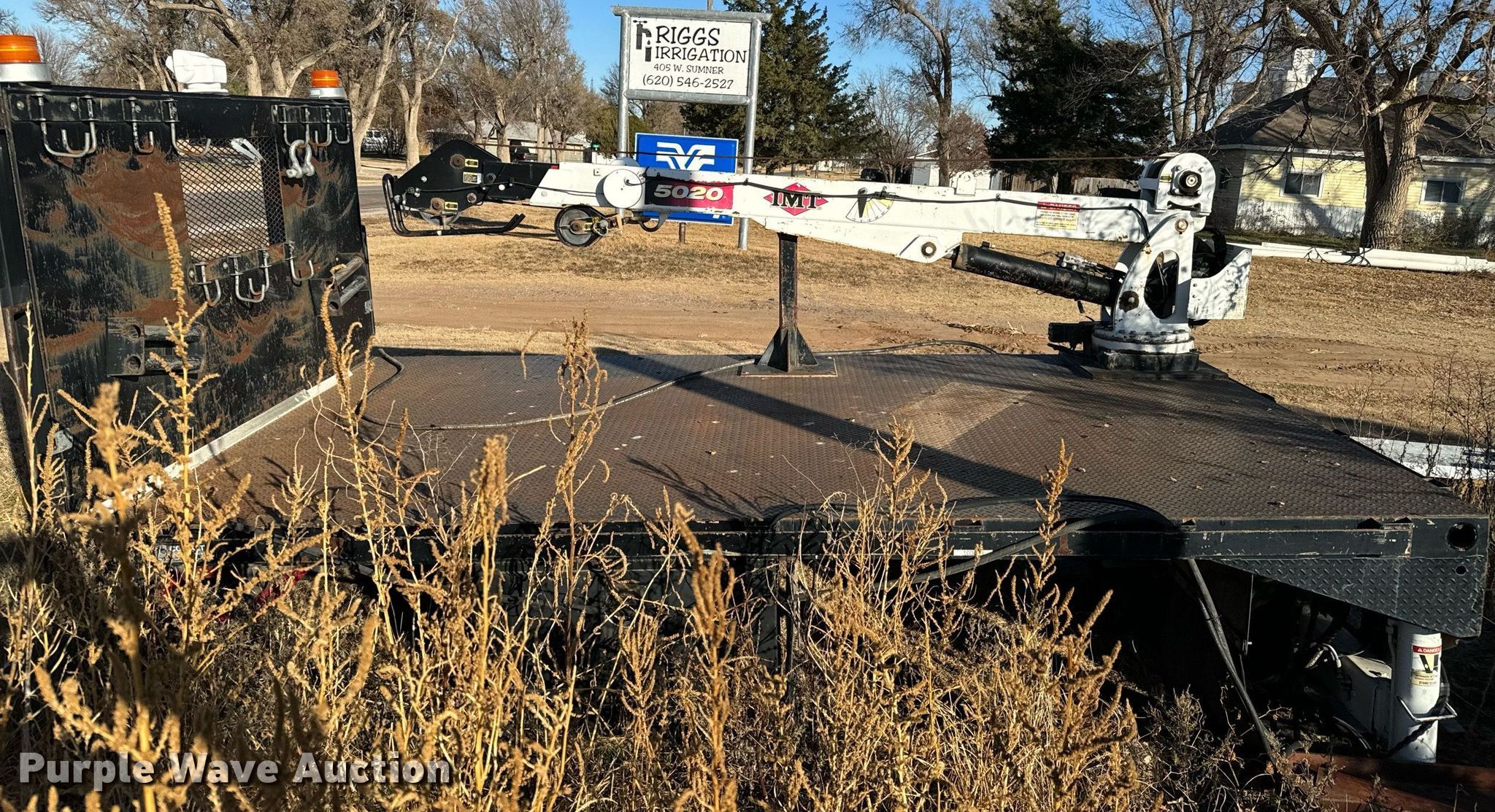 Cobalt flatbed. 14' 6" L x 100" W, Crane IMT 5020, Boom length: 20', Maximum lift capacity: 8,600 lbs. Riggs Irrigation. Iuka, KS 67066