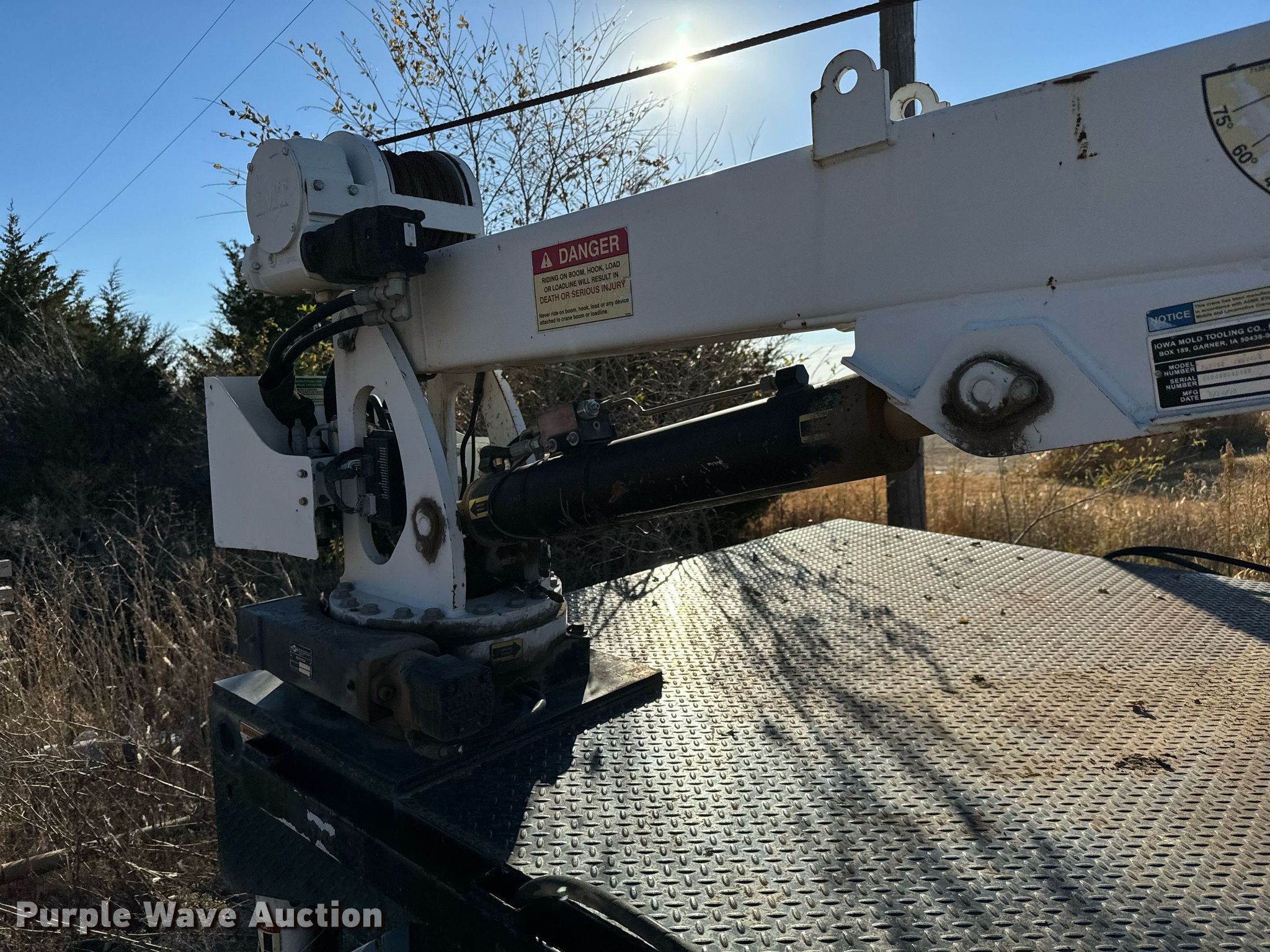 Purple Wave is selling a used Truck Part and Attach. in Kansas. This item is a Cobalt flatbed with the following: 14' 6" L x 100" W, Crane, IMT 5020, Boom length: 20', Maximum lift capacity: 8,600 lbs