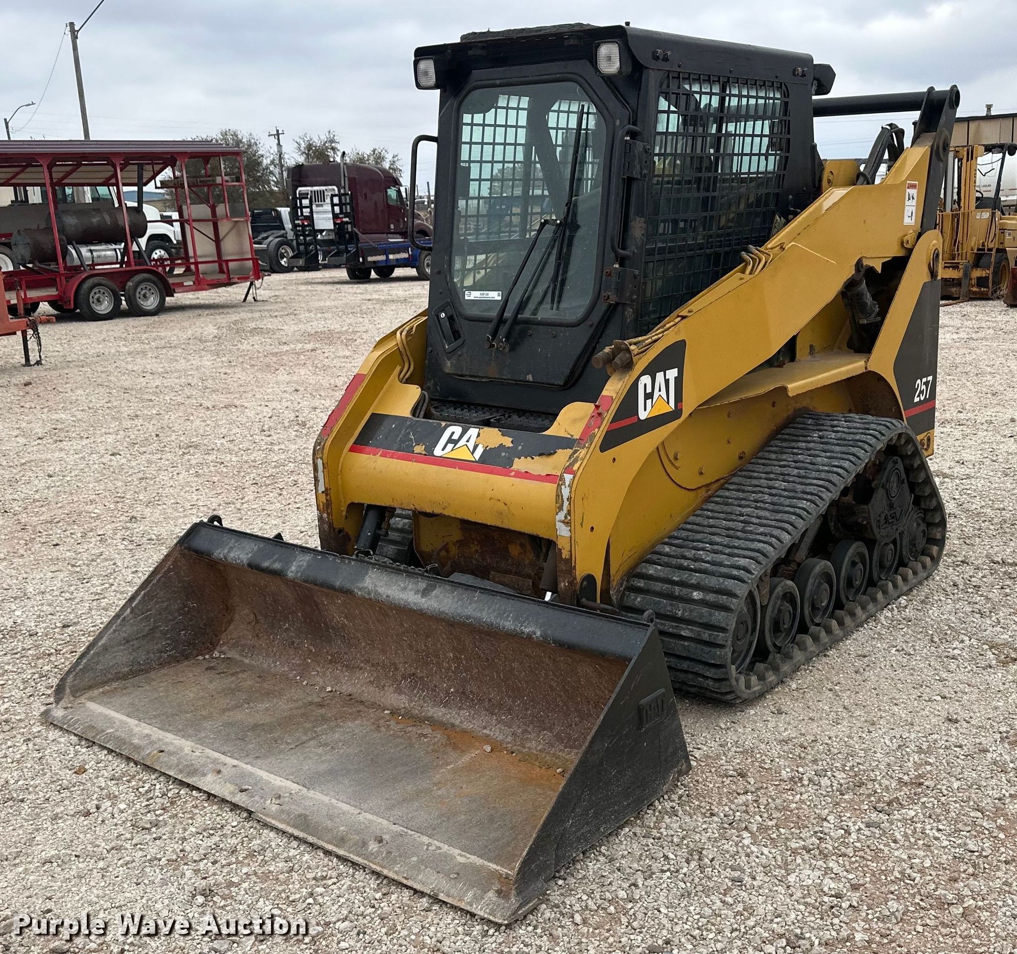 Purple Wave is selling a used Tracked Skid Steer Loader in Oklahoma. This item is a 2003 Caterpillar 257 tracked skid steer loader with the following: Hours: 2,724 on meter, Serial: CAT00257LCMM01148