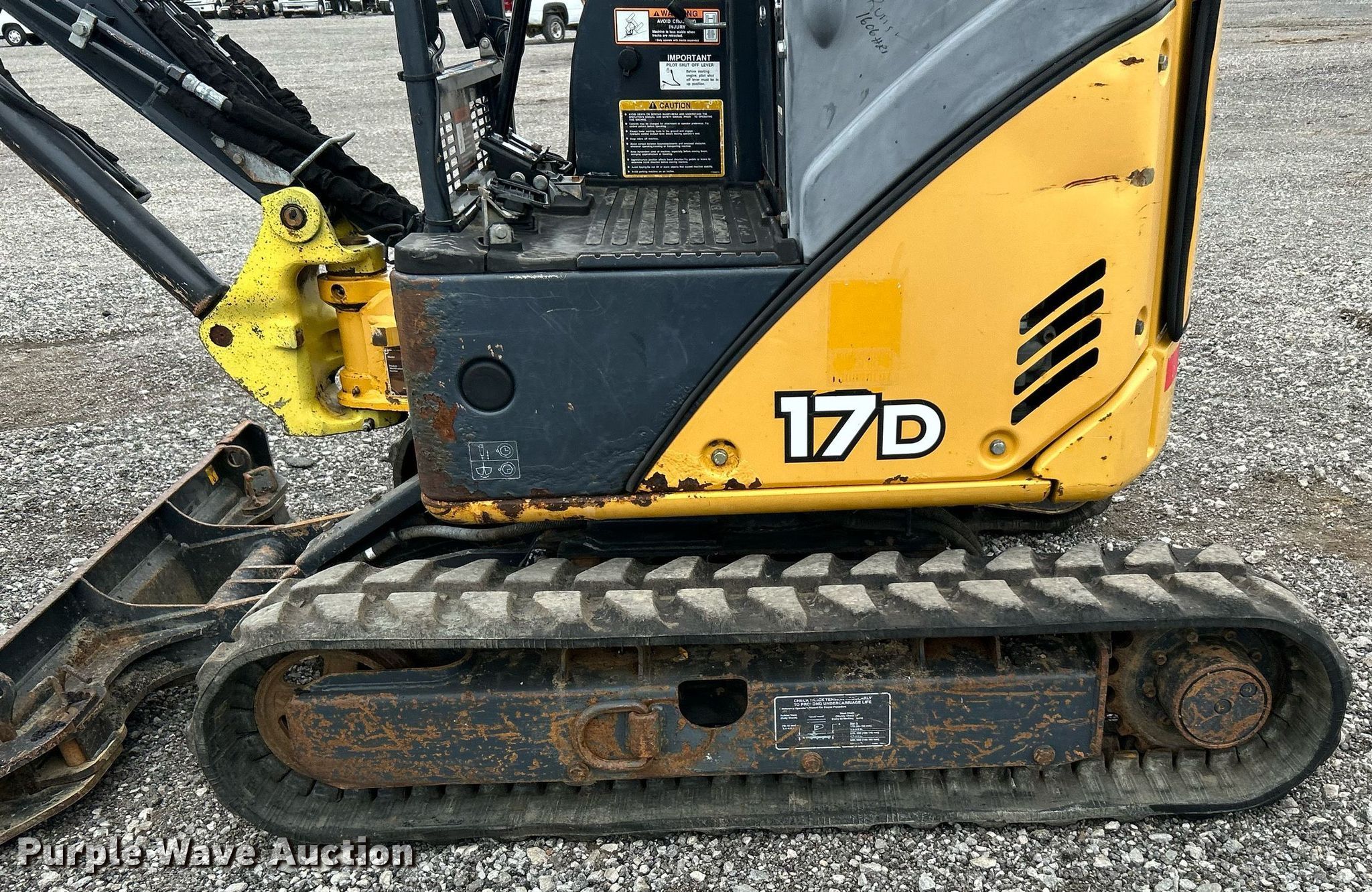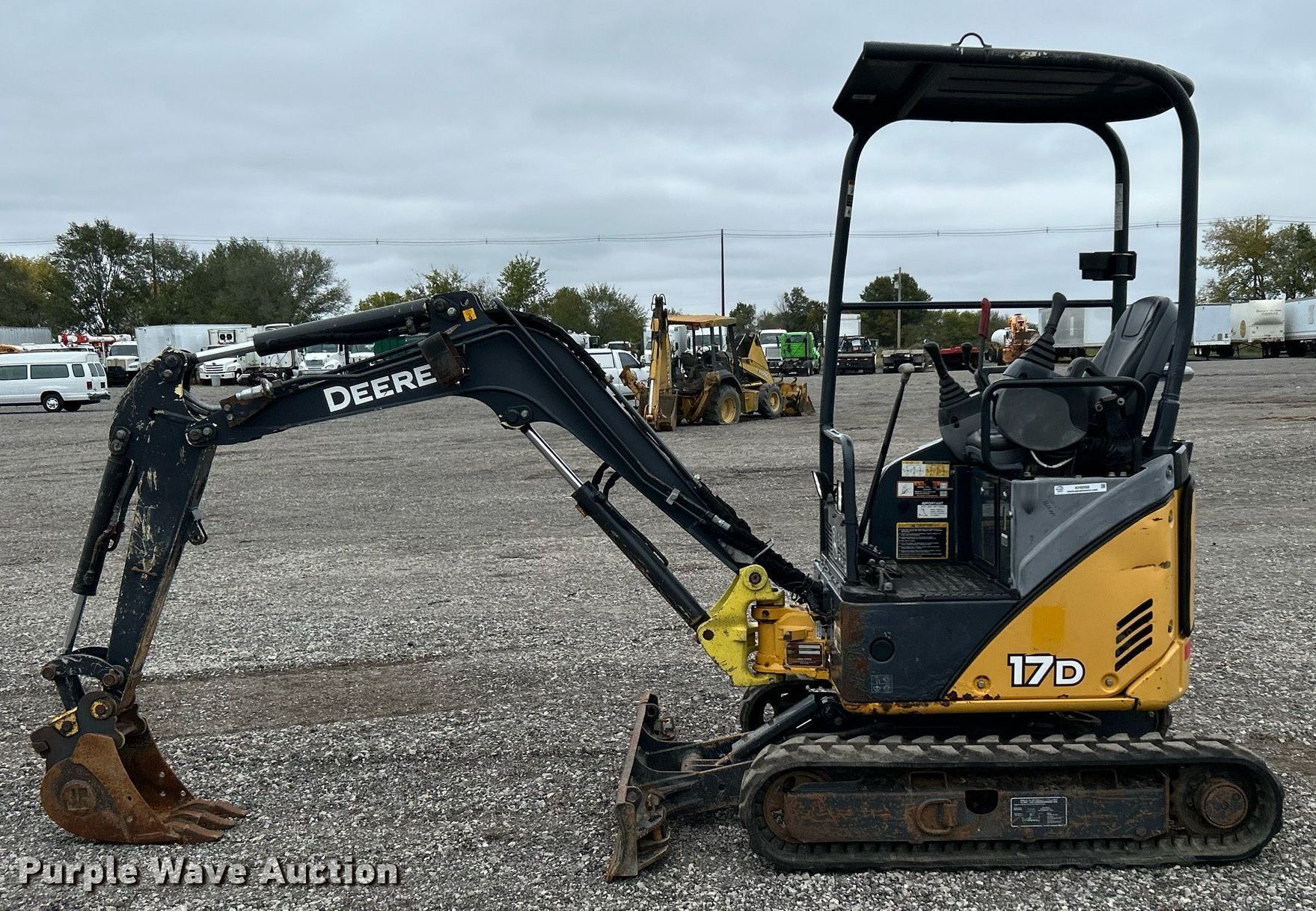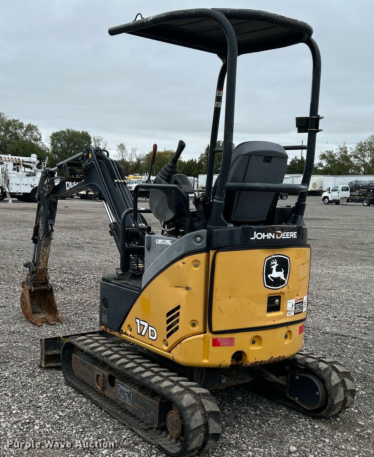 Purple Wave is selling a used Mini Excavator in Oklahoma. This item is a 2014 John Deere 17D mini excavator with the following: Hours: 1,607 on meter, Serial: 1FF017DXJE222755
