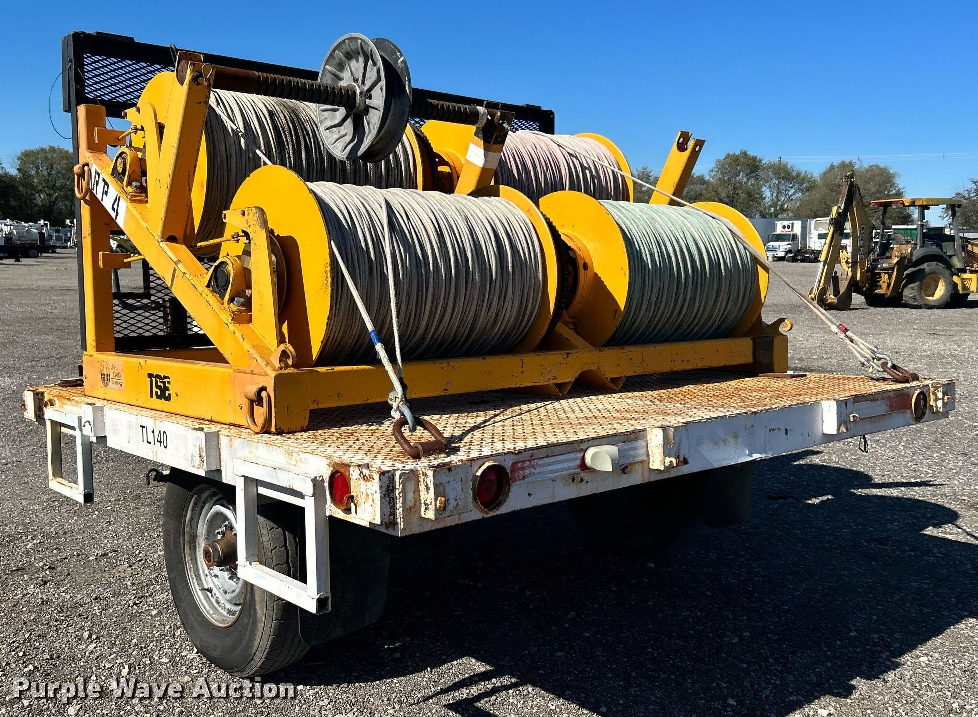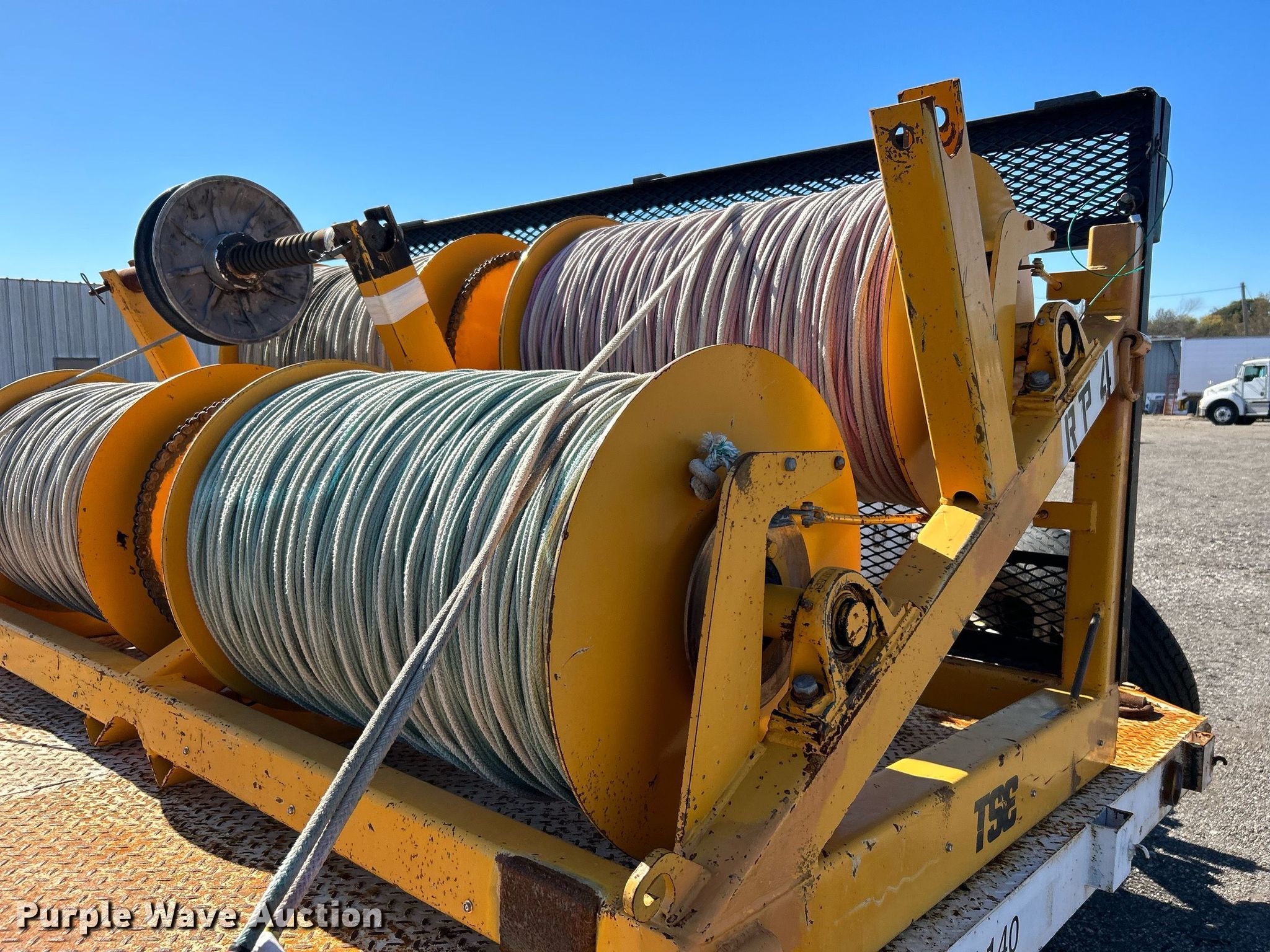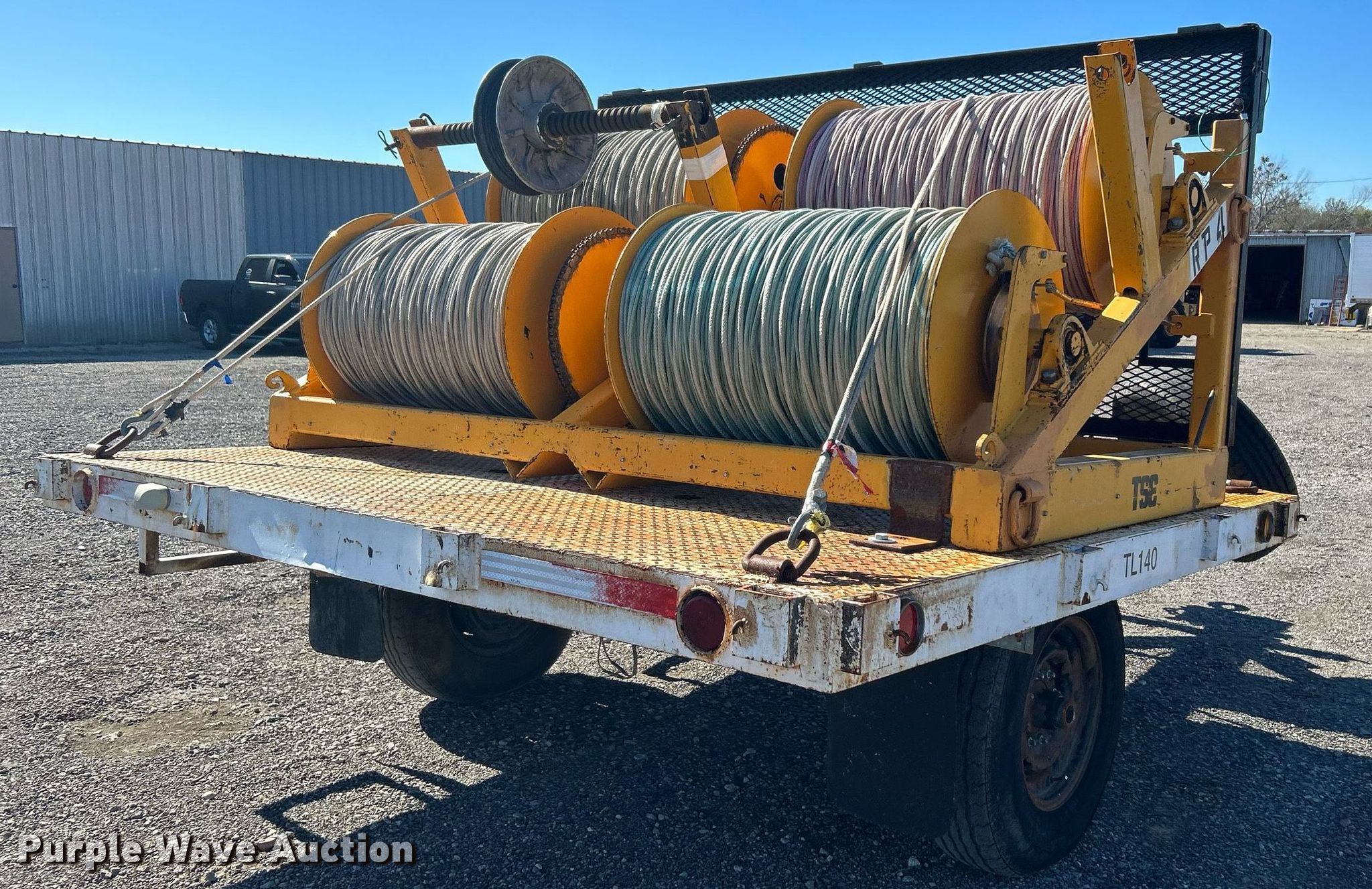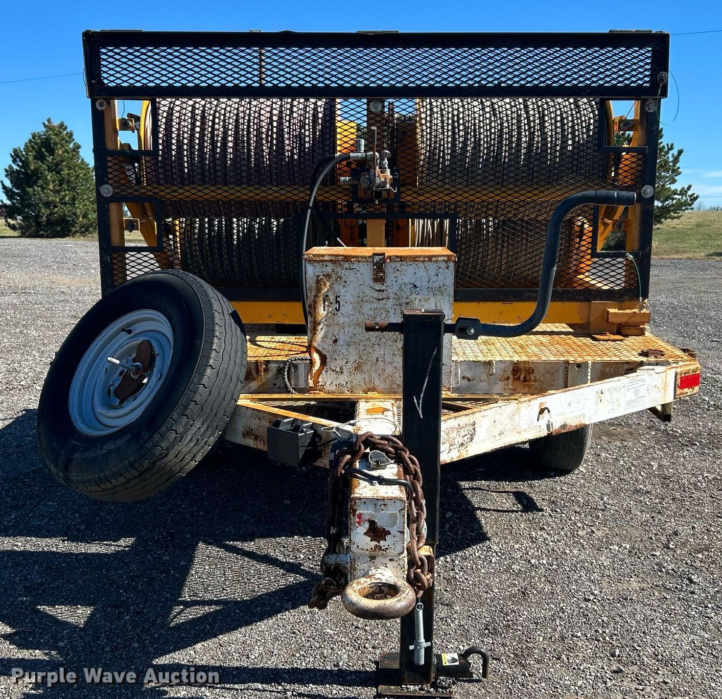 Shop built utility trailer. Dimensions. Overall: 13' L x 100" W, Deck: 8' L x 96" W. Features Deck type: Steel, (4) 33" diameter TSG 2501 reels. Chassis Hitch: Pintle, Landing gear: Single, Suspension: Spring, Brakes: Electric. Tires Size: ST235/80R16. Transfer of ownership documentation will be a bill of sale. 15107 North 137th East Avenue. Collinsville, OK 74021