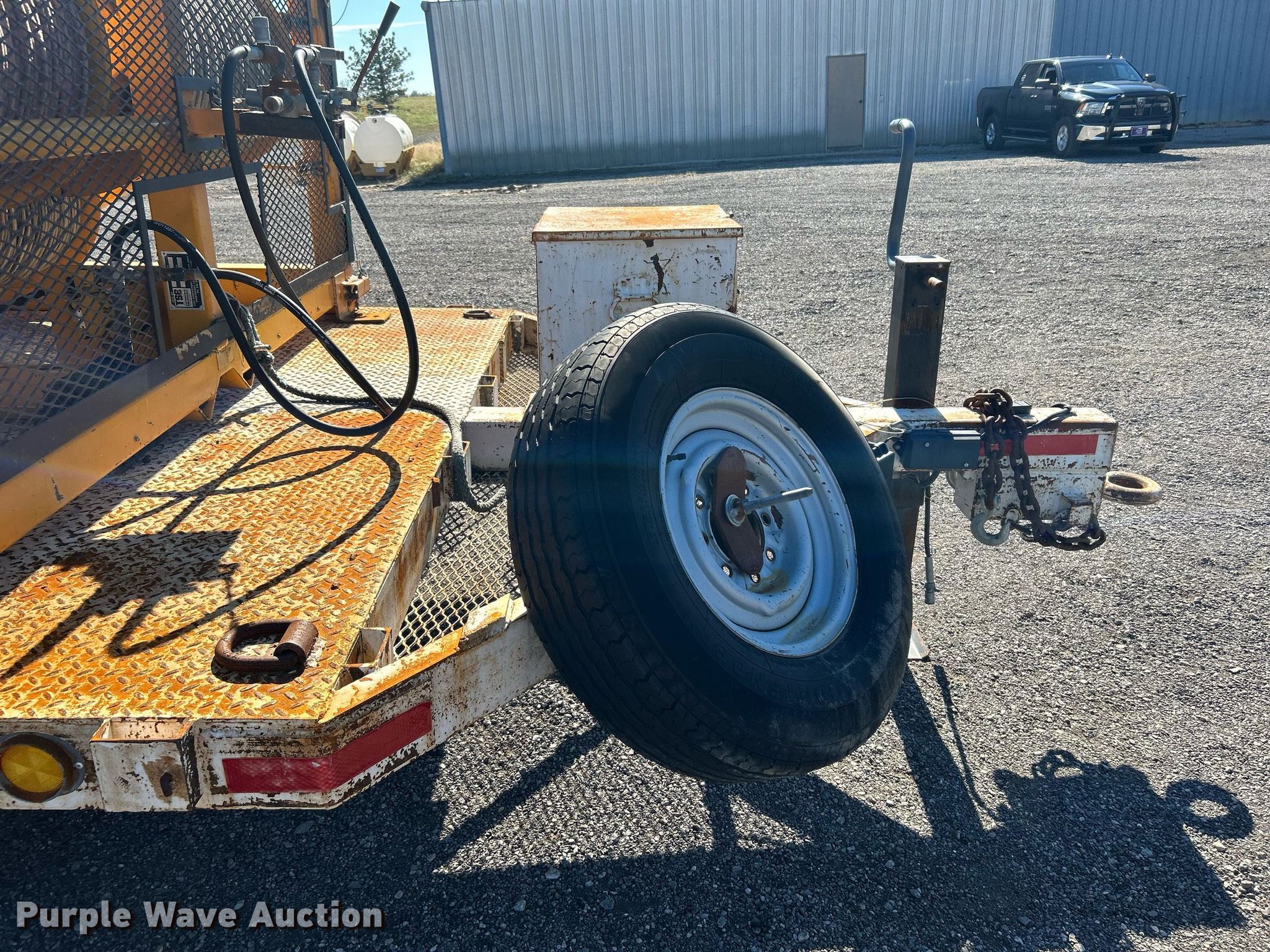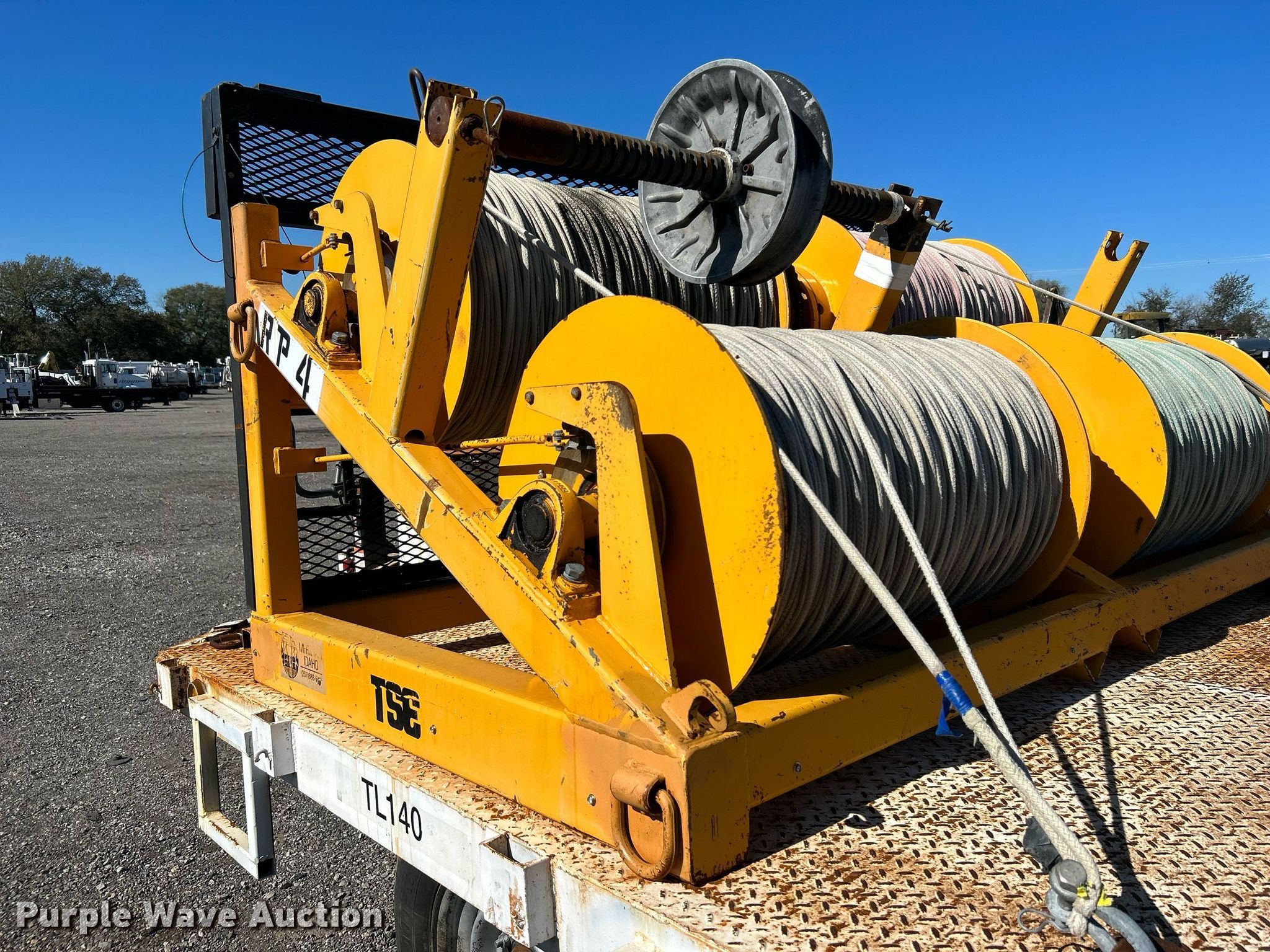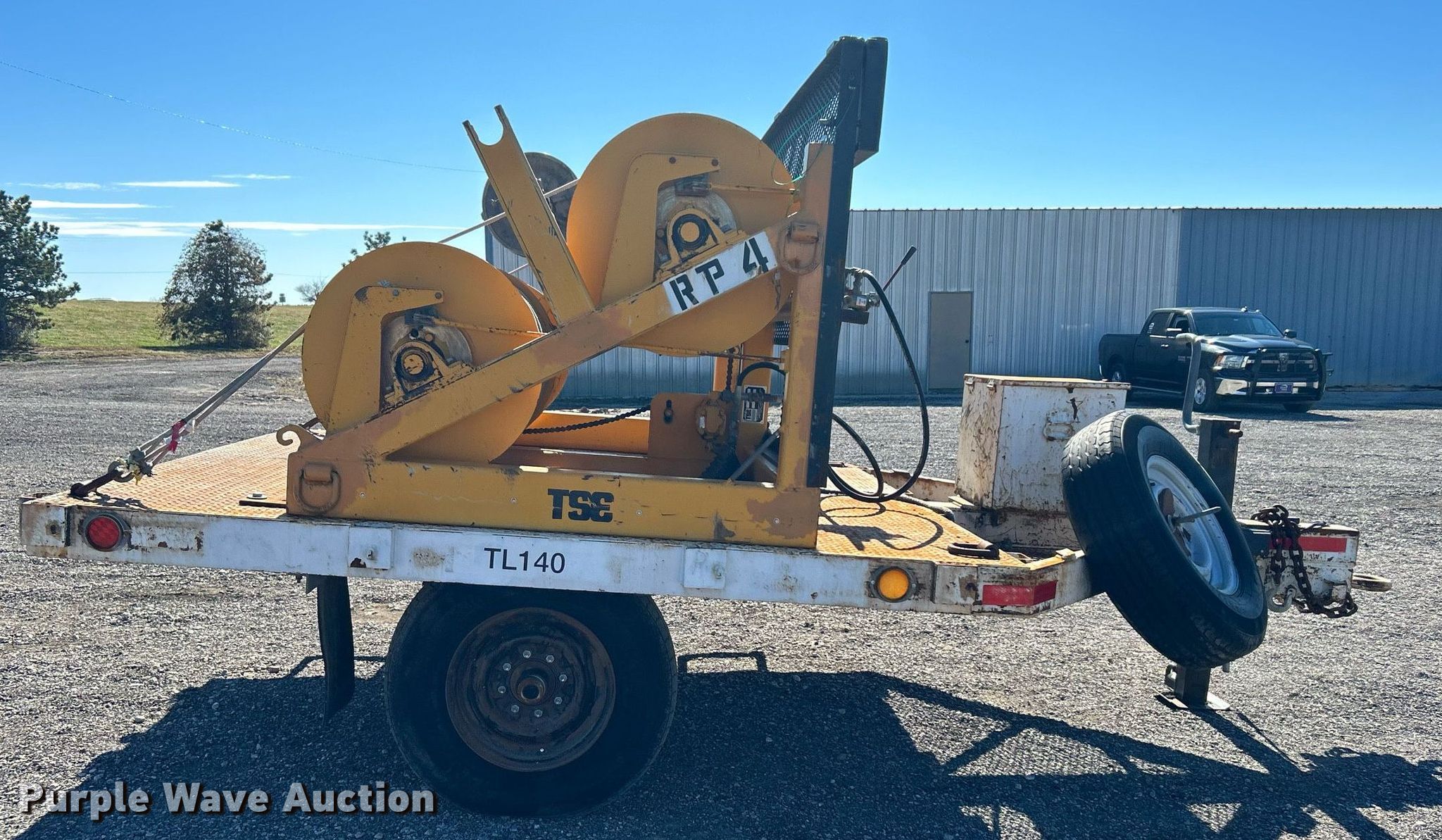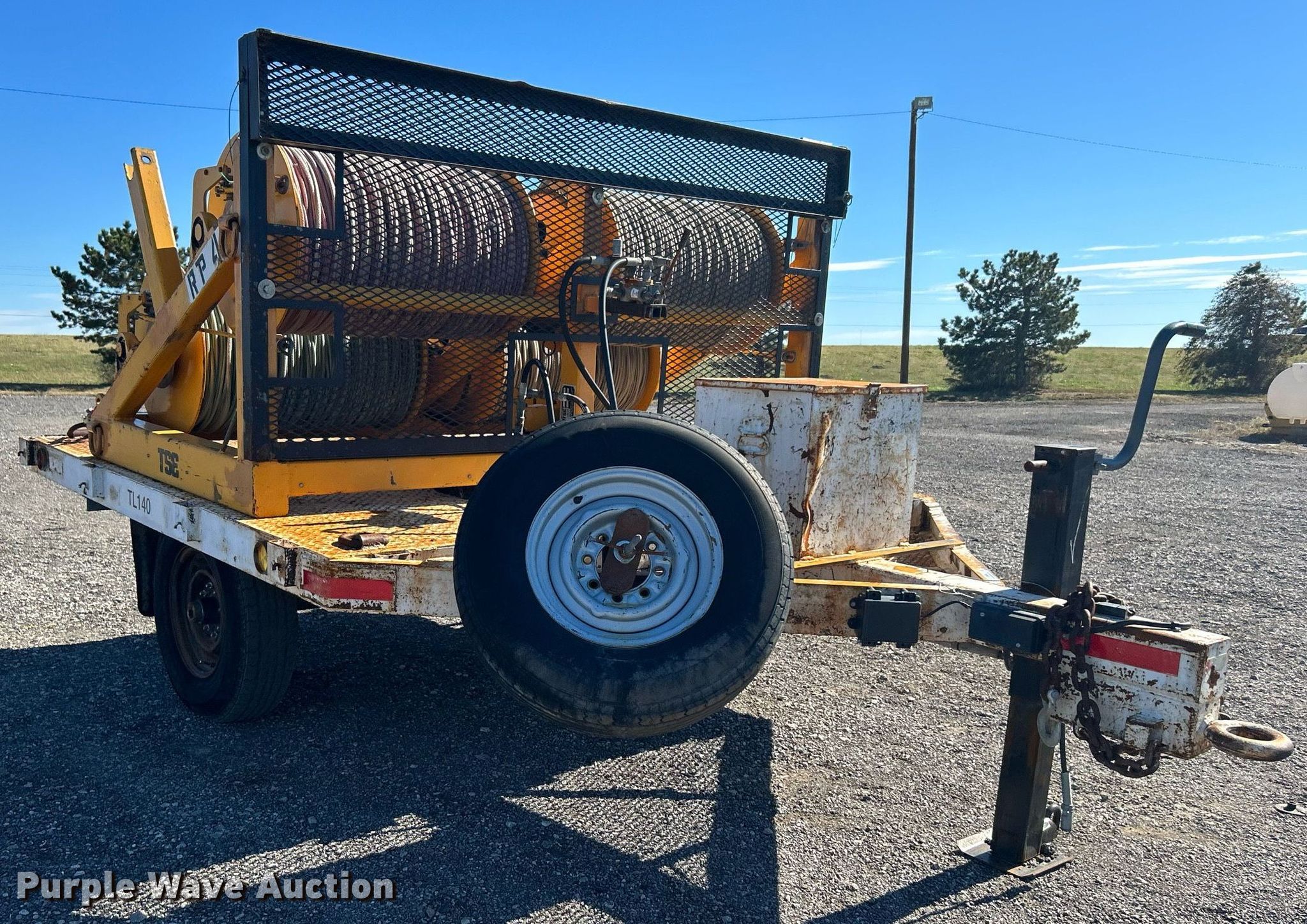 Shop built utility trailer. Dimensions. Overall: 13' L x 100" W, Deck: 8' L x 96" W. Features Deck type: Steel, (4) 33" diameter TSG 2501 reels. Chassis Hitch: Pintle, Landing gear: Single, Suspension: Spring, Brakes: Electric. Tires Size: ST235/80R16. Transfer of ownership documentation will be a bill of sale. 15107 North 137th East Avenue. Collinsville, OK 74021