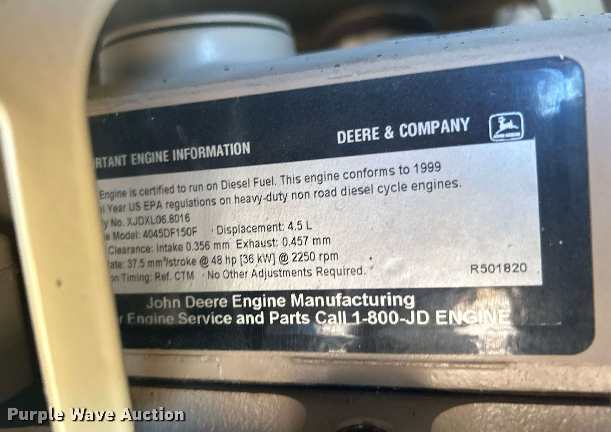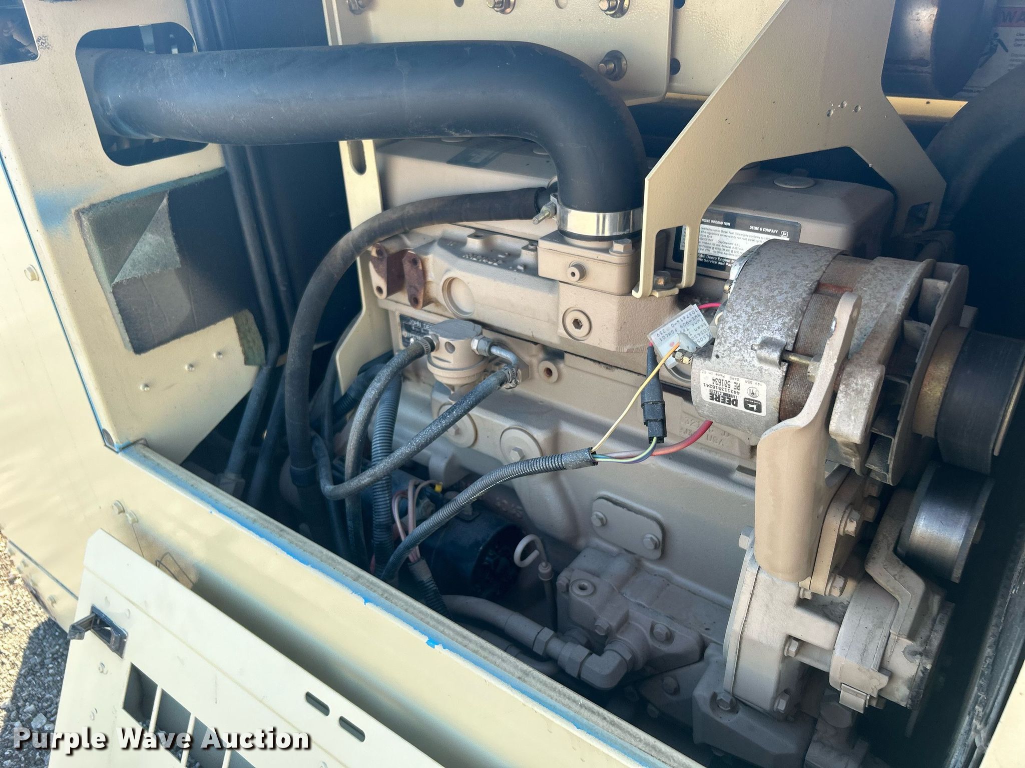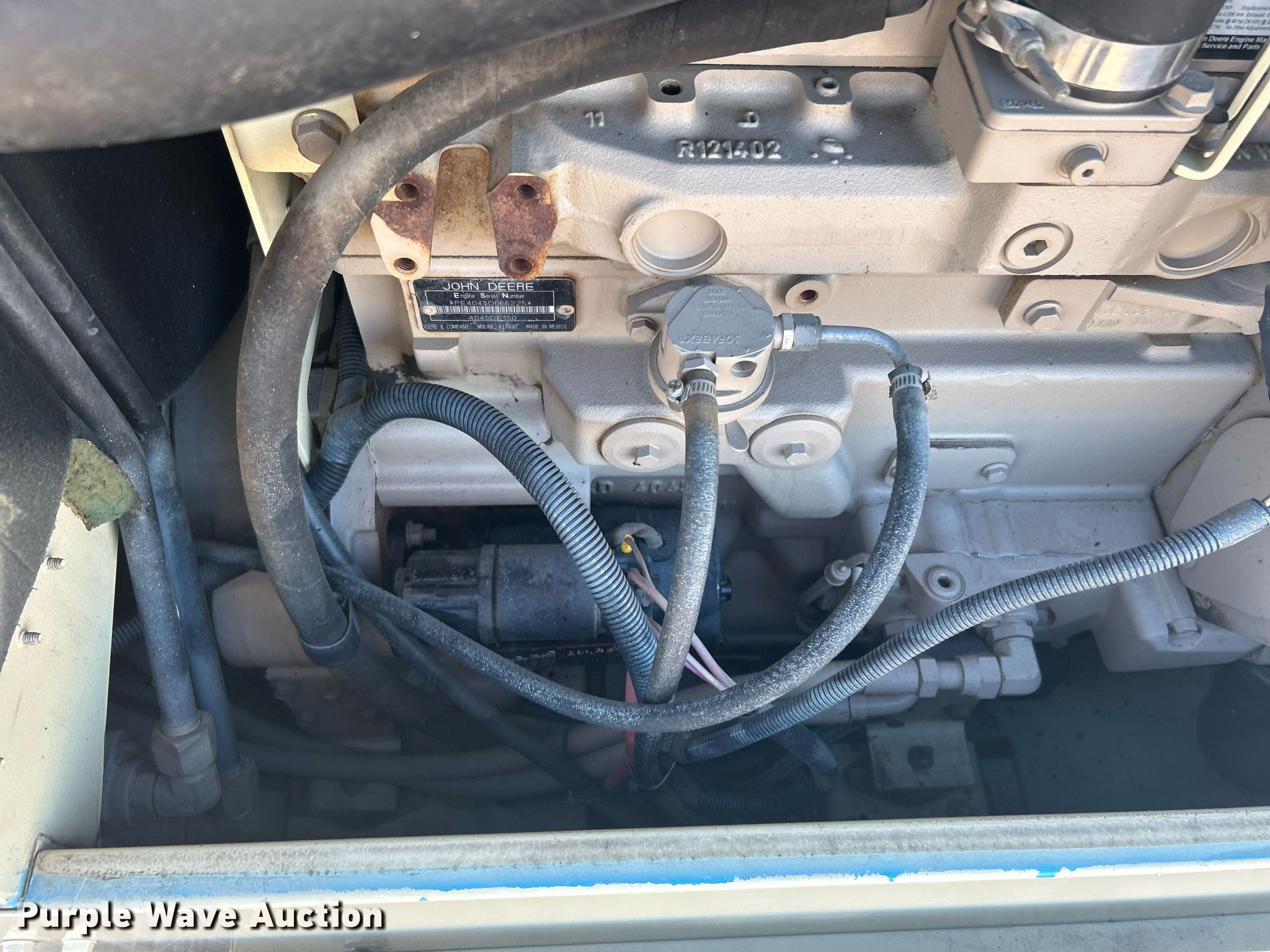 1999 Ingersoll Rand P185WDJU air compressor. Hours: 874 on meter, Serial: 306661UKJ235. Engine John Deere 4045, Serial: PE4045D066225, Displacement: 4.5L, Cylinders: 4, Fuel type: Diesel. Features Air compressor CFM: 186, PSI: 100. 15107 North 137th East Avenue. Collinsville, OK 74021
