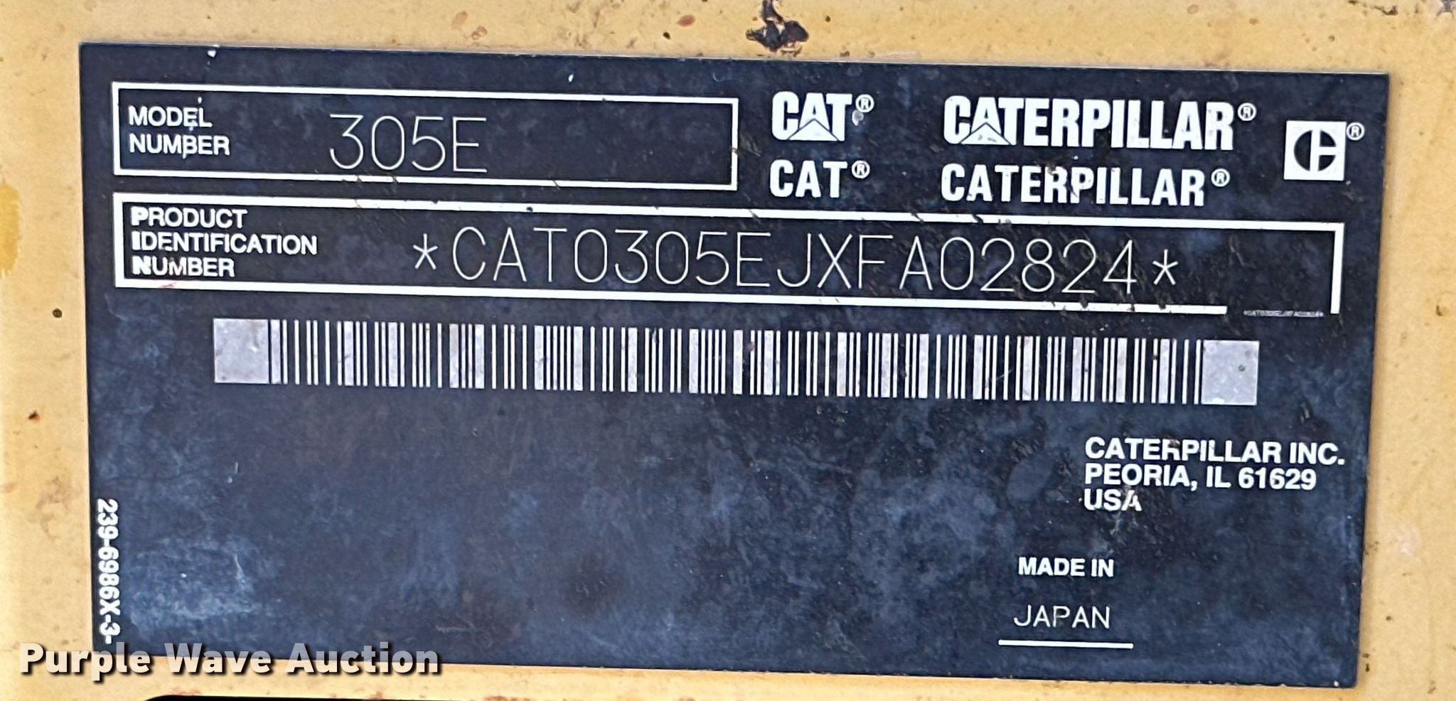 Purple Wave is selling a used Mini Excavator in Kansas. This item is a 2014 Caterpillar 305E CR mini excavator with the following: Hours: 1,877 on meter, Serial: CAT0305EJXFA02824