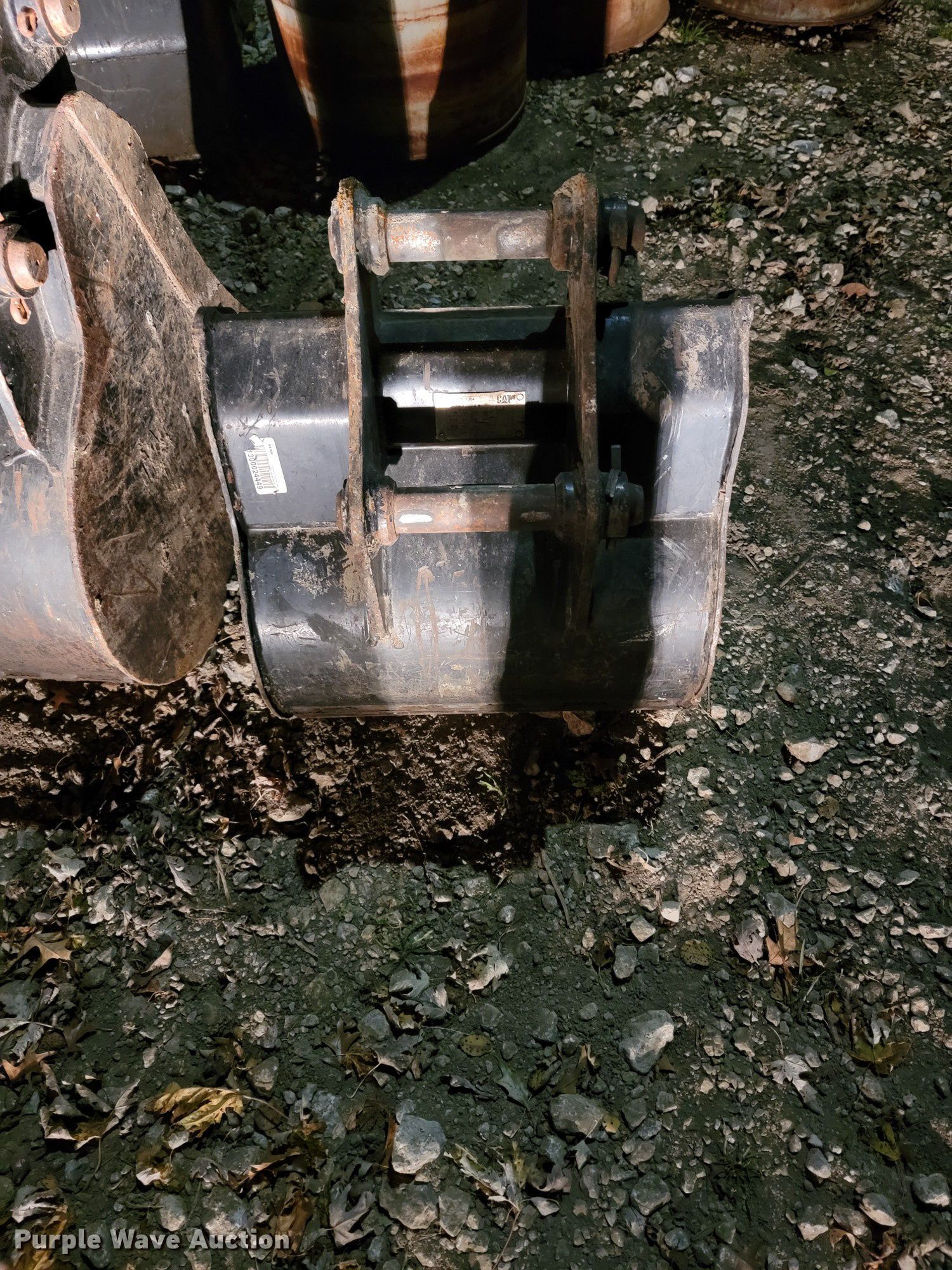 2014 Caterpillar 305E CR mini excavator. Hours: 1,877 on meter, Serial: CAT0305EJXFA02824. Engine Caterpillar C2.4, Displacement: 146 C.I.D, Cylinders: 4, Fuel type: Diesel, HP: 40. Transmission Hydrostatic. Operators station Enclosed cab. Features Backfill blade Width: 78", Boom Swing, Stick Stick length: 4' 4", Thumb: Hydraulic, Bucket Width: 28", Cutting edge: Weld-on, (2) Additional buckets 21" W Teeth: 5, 13" W Teeth: 3.. Tracks Width: 16", Rubber. Notes Tracks will be replaced prior to auction. K-W Oil Well Service. 19450 Ford Rd. Chanute, KS 66720
