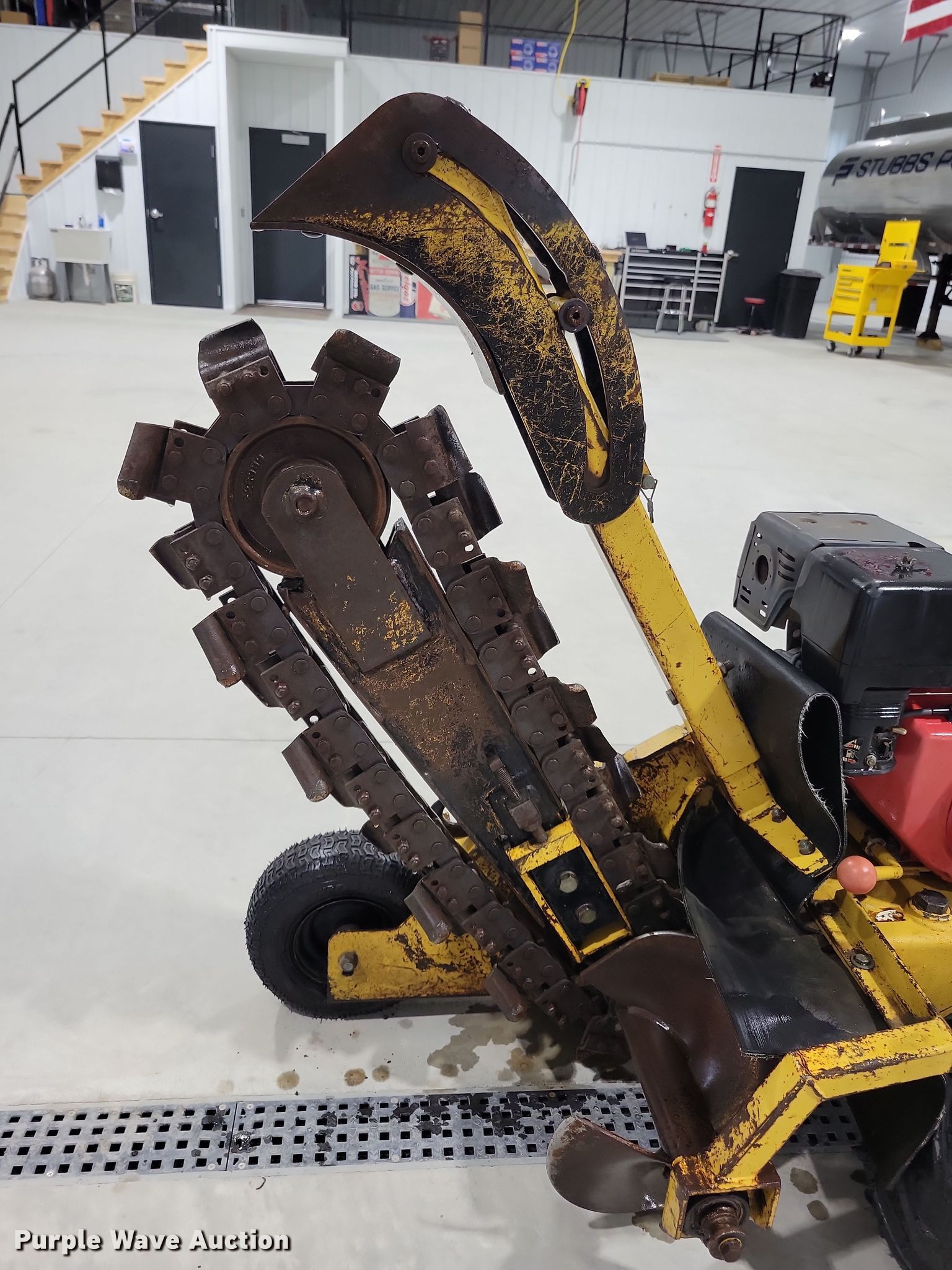 1997 Vermeer V1150 trencher. Serial: 1VRF051M5V1001543. Engine Honda, Cylinders: 1, Fuel type: Gas. Transmission Hydrostatic. Features Trencher Estimated dig depth: 38", Cutting width: 4", Teeth: Dirt, Manual crumber. Tires Front: 13x5-6, Rear: 16x6.5-8. Stubbs Petroleum. 320 Northwestern Avenue. Chariton, IA 50049