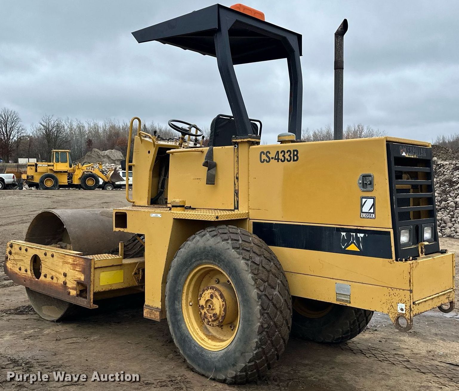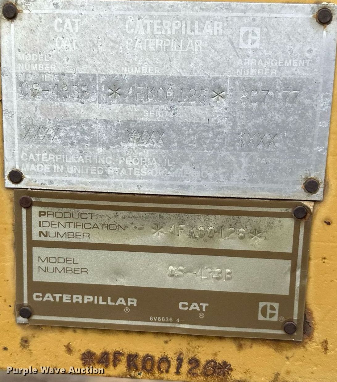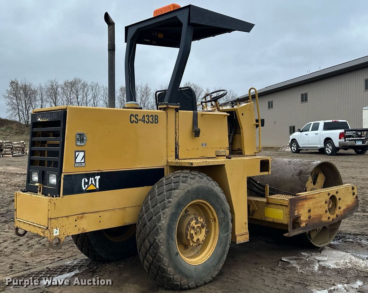 Purple Wave is selling a used Single Drum Roller Compactor in Minnesota. This item is a 1993 Caterpillar CS433B single drum vibratory roller with the following: Hours: 2,145 on meter, Serial: 4FK00126