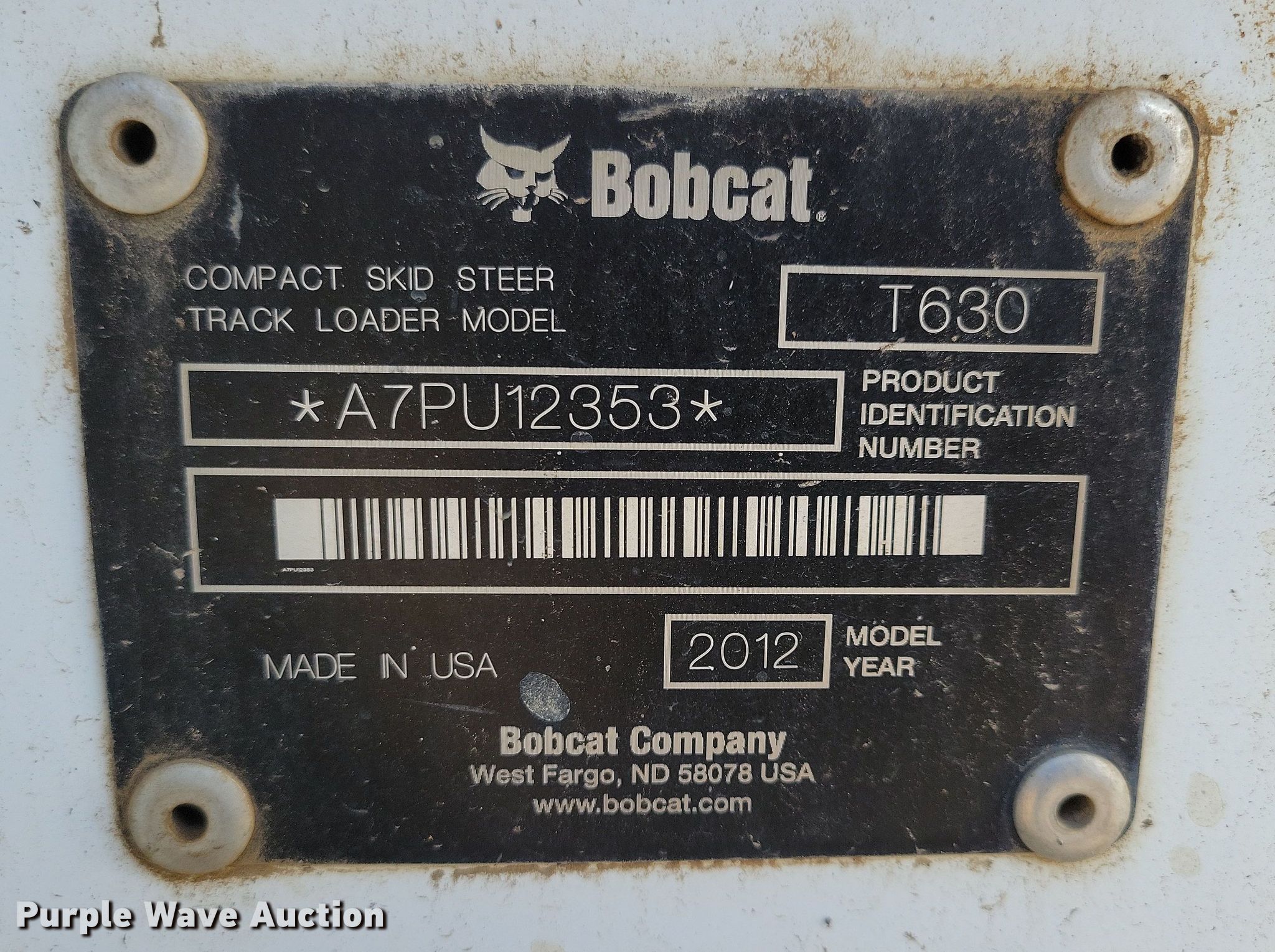 Purple Wave is selling a used Tracked Skid Steer Loader in Iowa. This item is a 2012 Bobcat T630 tracked skid steer loader with the following: Hours: 4,662 on meter, Miles or hours may vary, unit still in use, Serial: A7PU12353