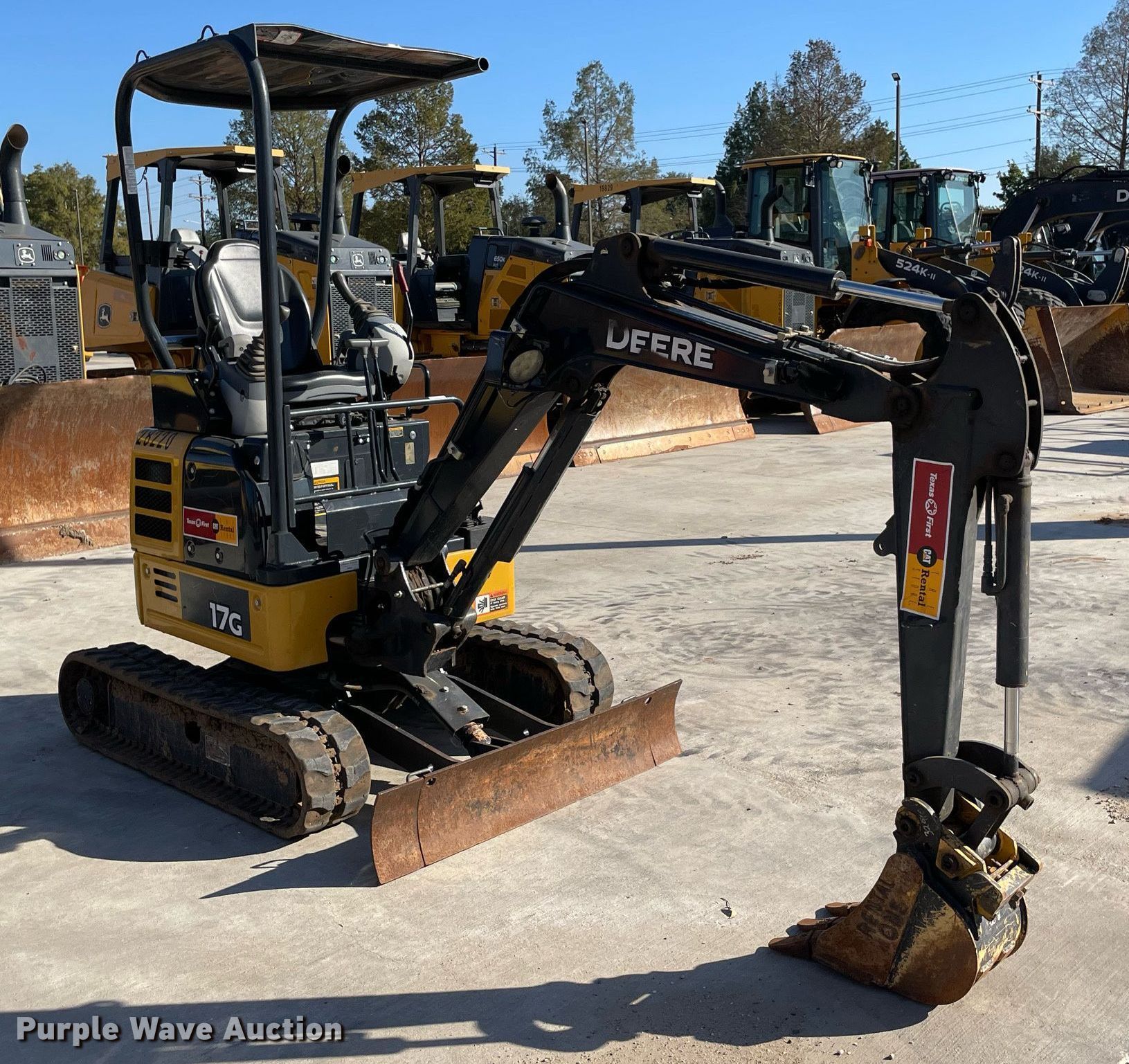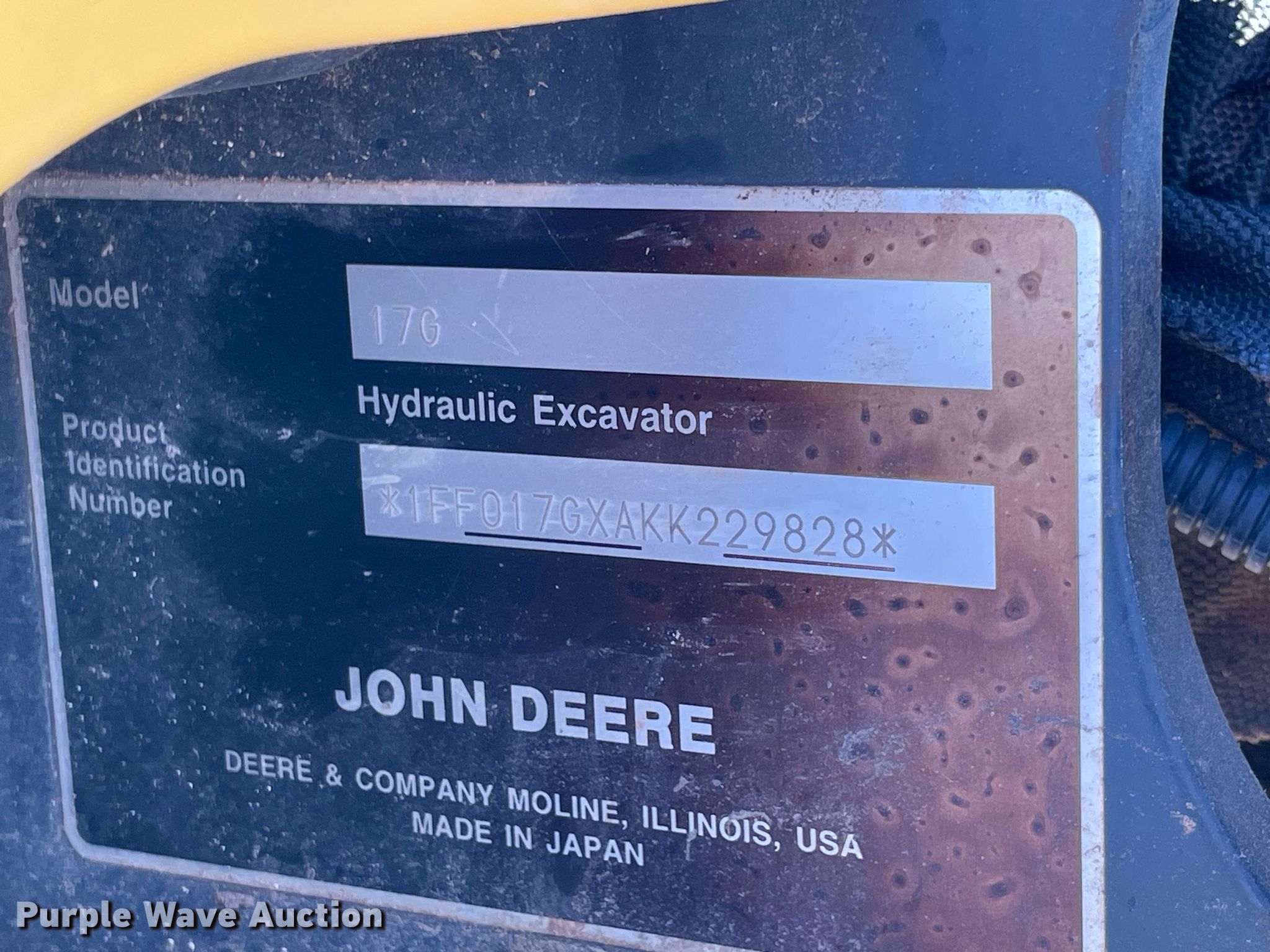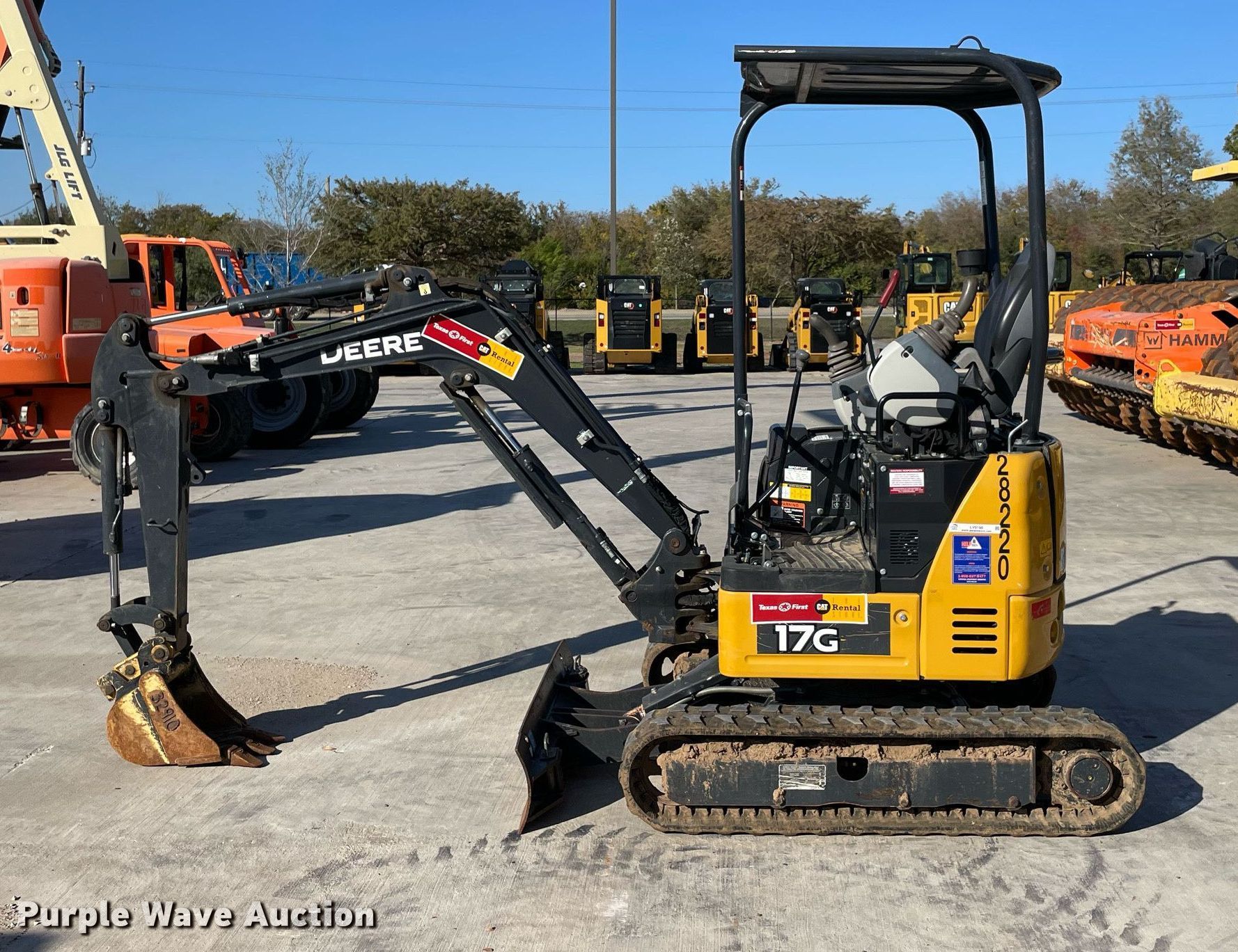 Purple Wave is selling a used Mini Excavator in Texas. This item is a 2019 John Deere 17G mini excavator with the following: Hours: 814 on meter, Serial: 1FF017GXAKK229828