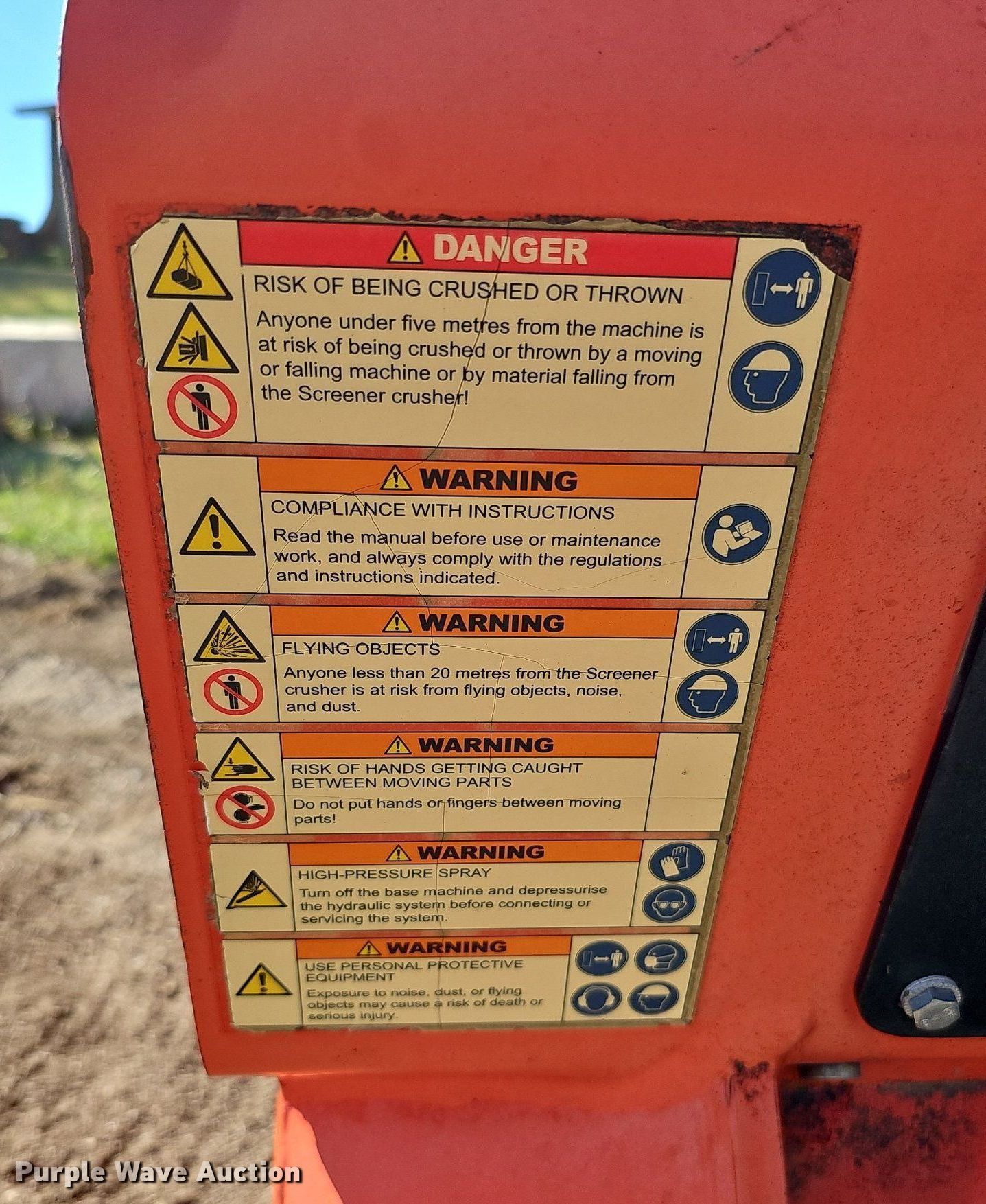 2015 Allu DN2-17 screening bucket. Serial: DN21715213. Features Opening: 68 1/2" W x 30" diameter, (2) 10" diameter pulverizers, GPM: 70 to 120. Hughes Mulch & Soil. 15802 Fairview Rd. Gretna, NE 68028