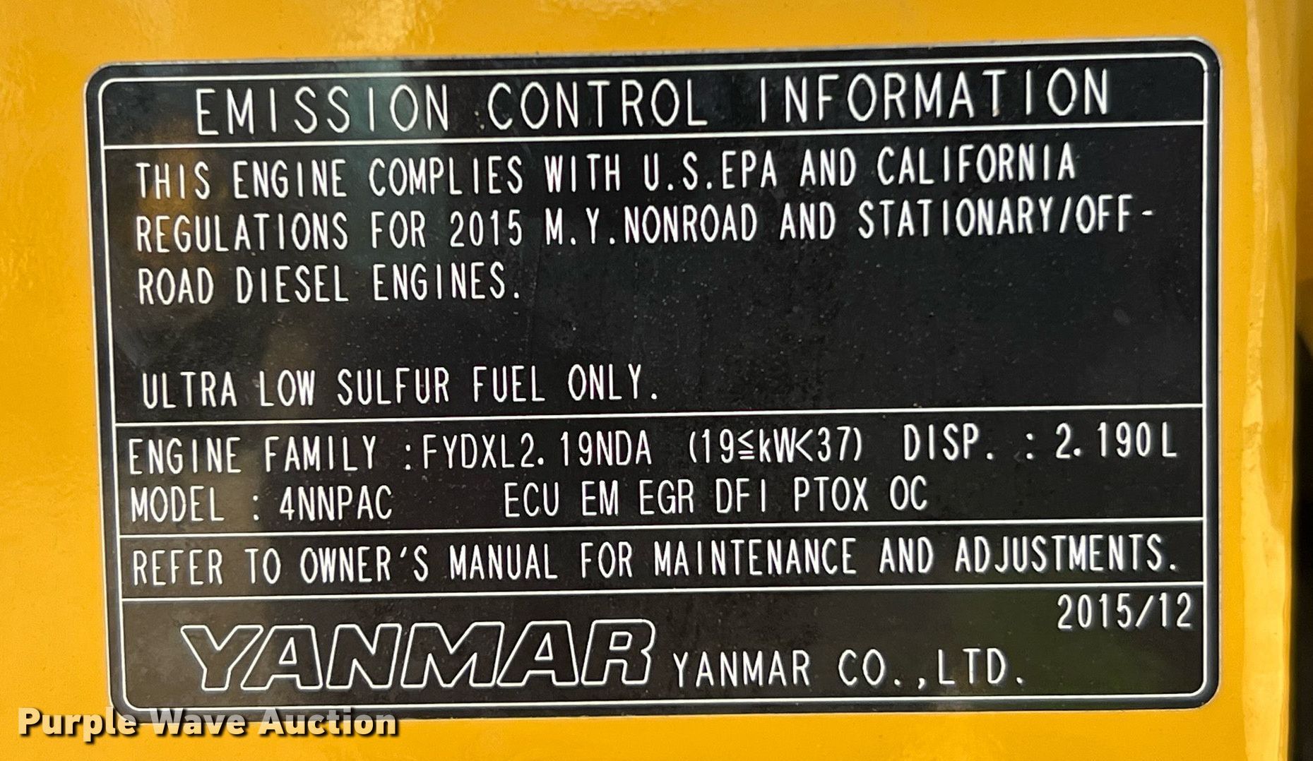 2016 John Deere 50G mini excavator. Hours: Unknown, Serial: 1FF050GXKGH283769, Unit #: 16386. Engine Yanmar 4NNPAC, Displacement: 2.190L, Cylinders: 3, Fuel type: Diesel. Transmission Hydrostatic, Two speed travel. Operators station OROPS, Pattern changer. Features Auxiliary hydraulics, Backfill blade Width: 79", Boom Swing, Stick Stick length: 4' 6.5", Quick coupler: Mechanical, Bucket John Deere AT439375, Width: 19", Cutting edge: Weld-on, Teeth: 4. Tracks Width: 16", Rubber. Howard Equipment Company. 3445 South Burleson Boulevard. Alvarado, TX 76009
