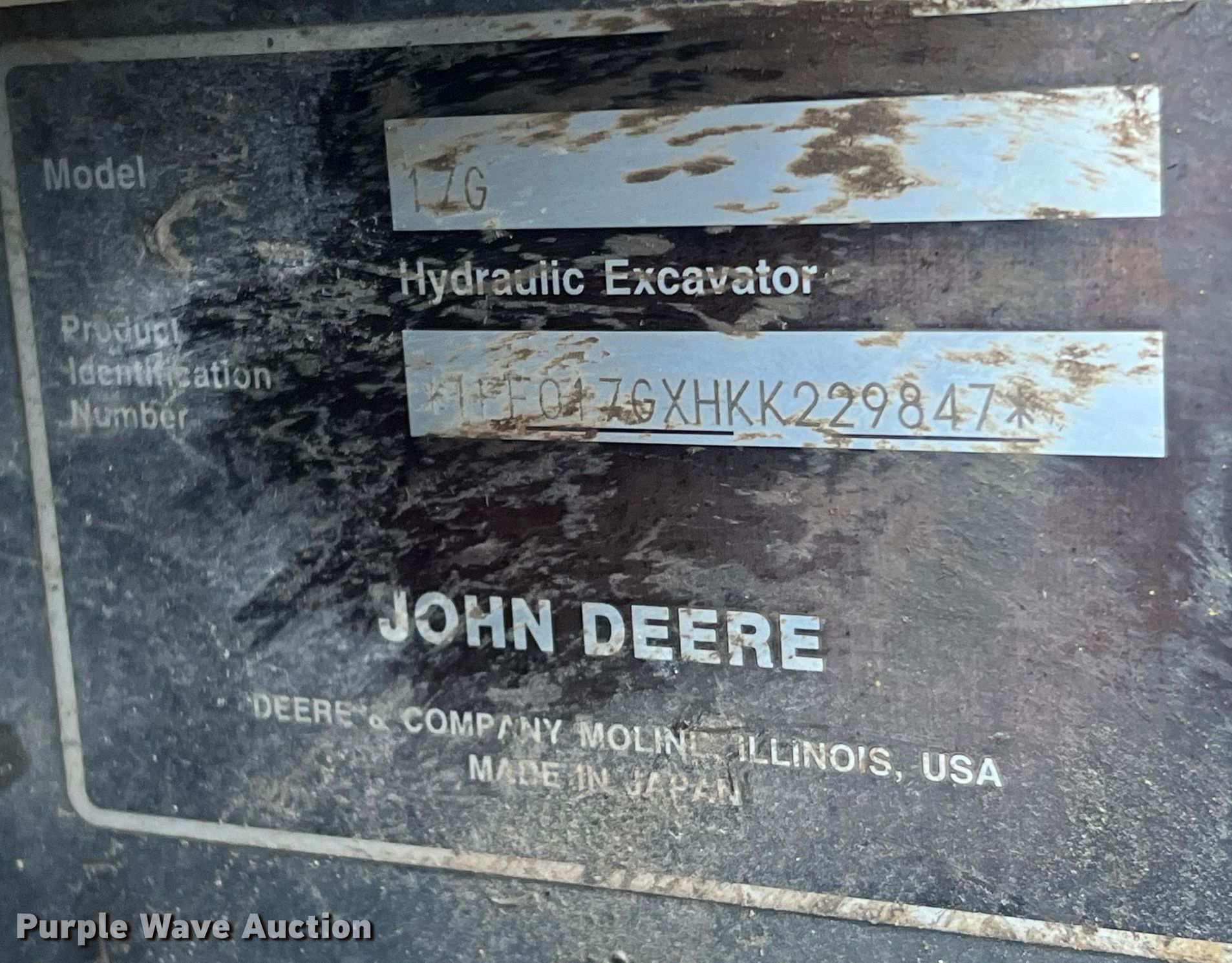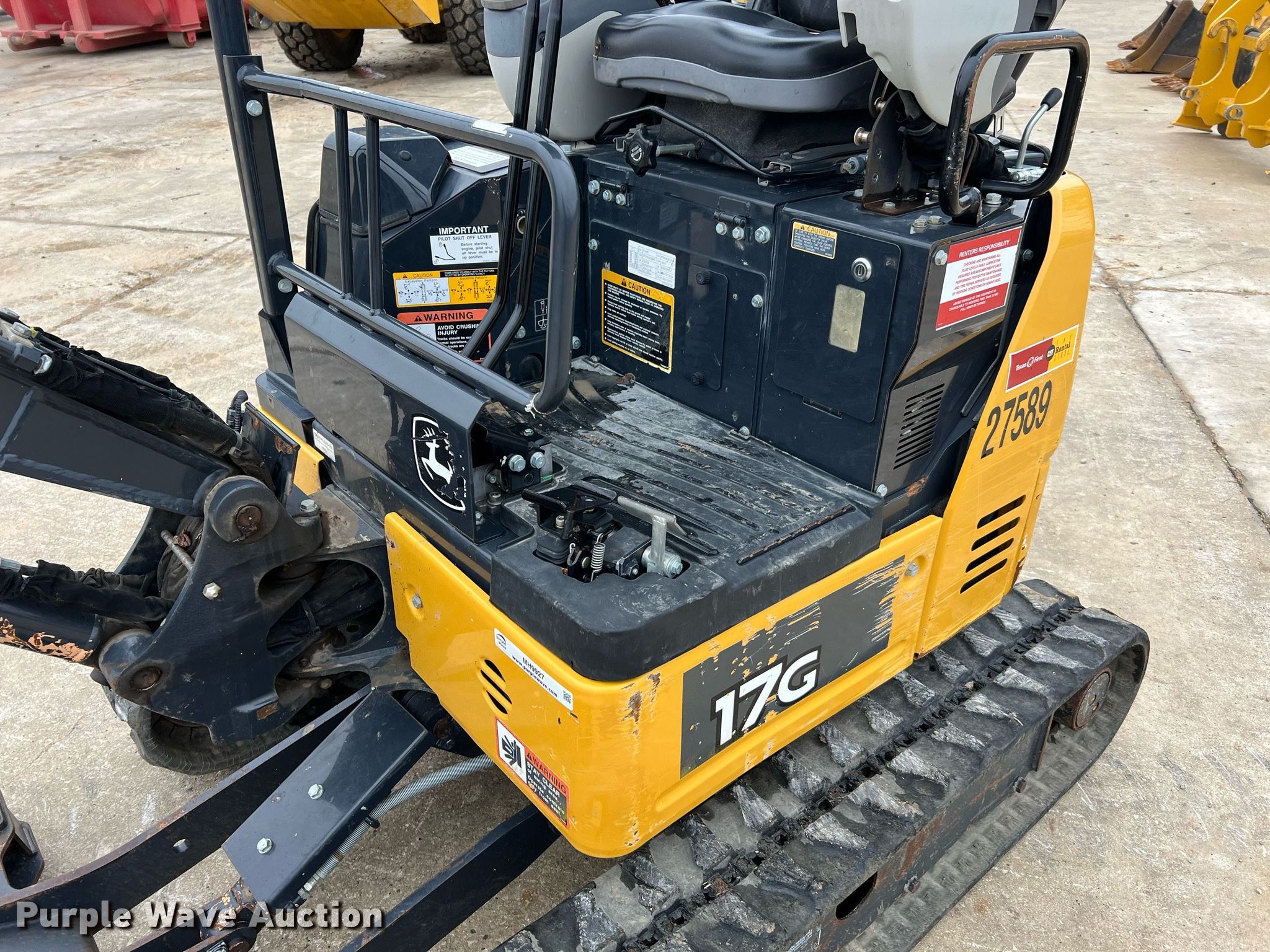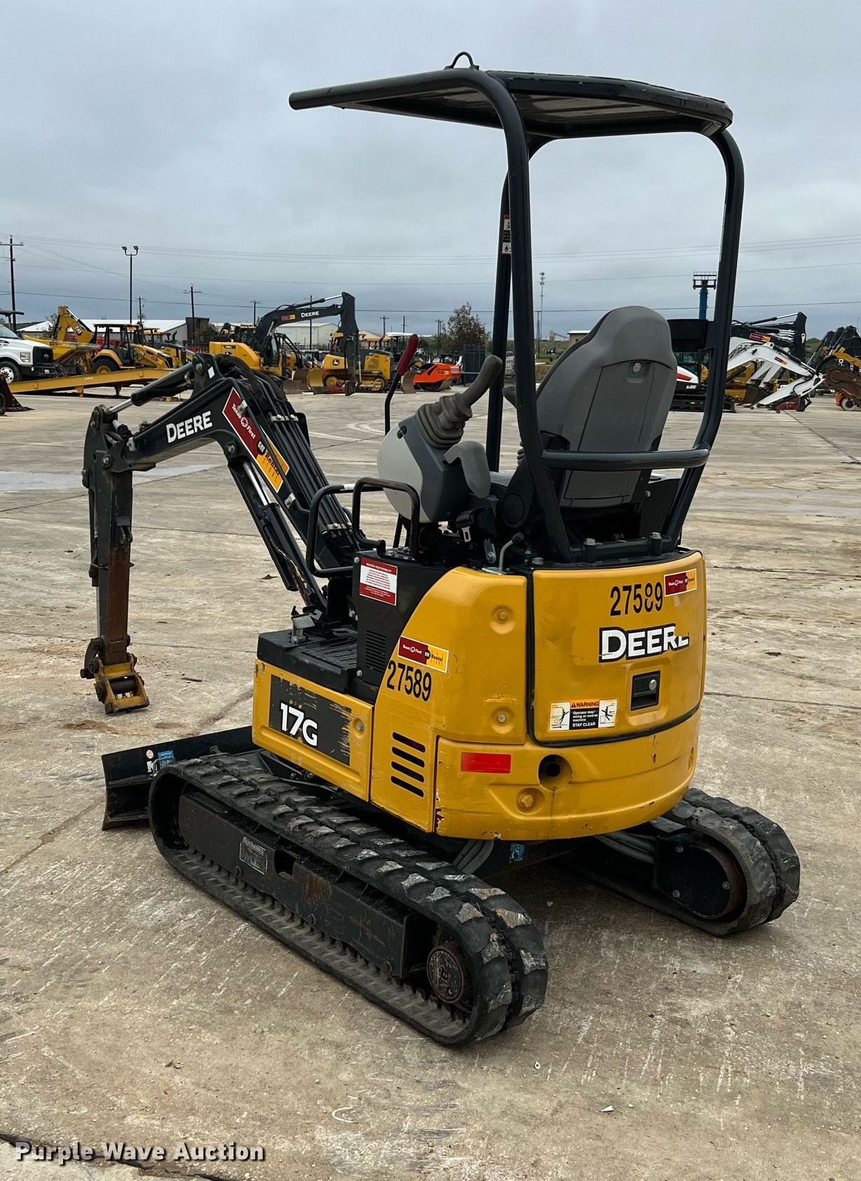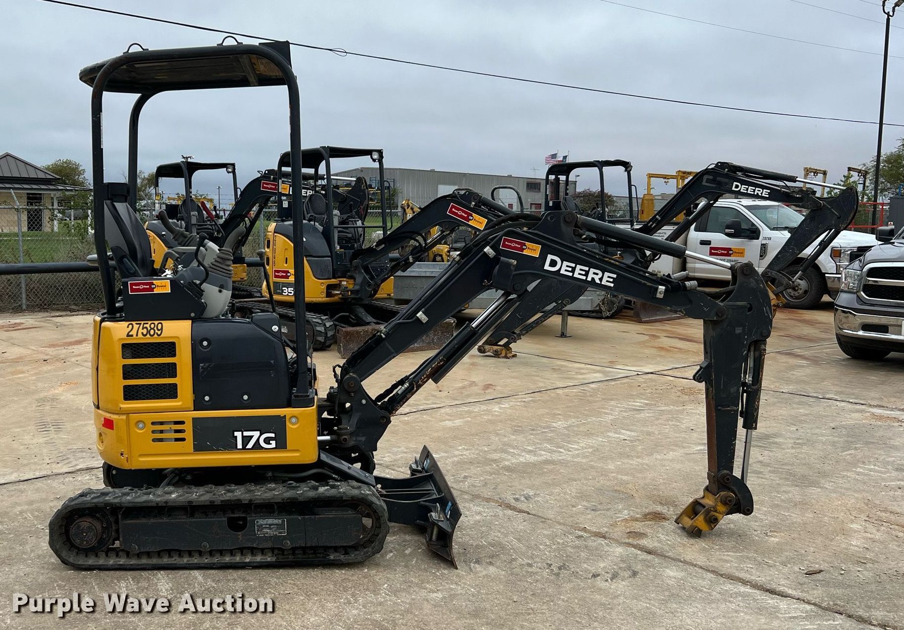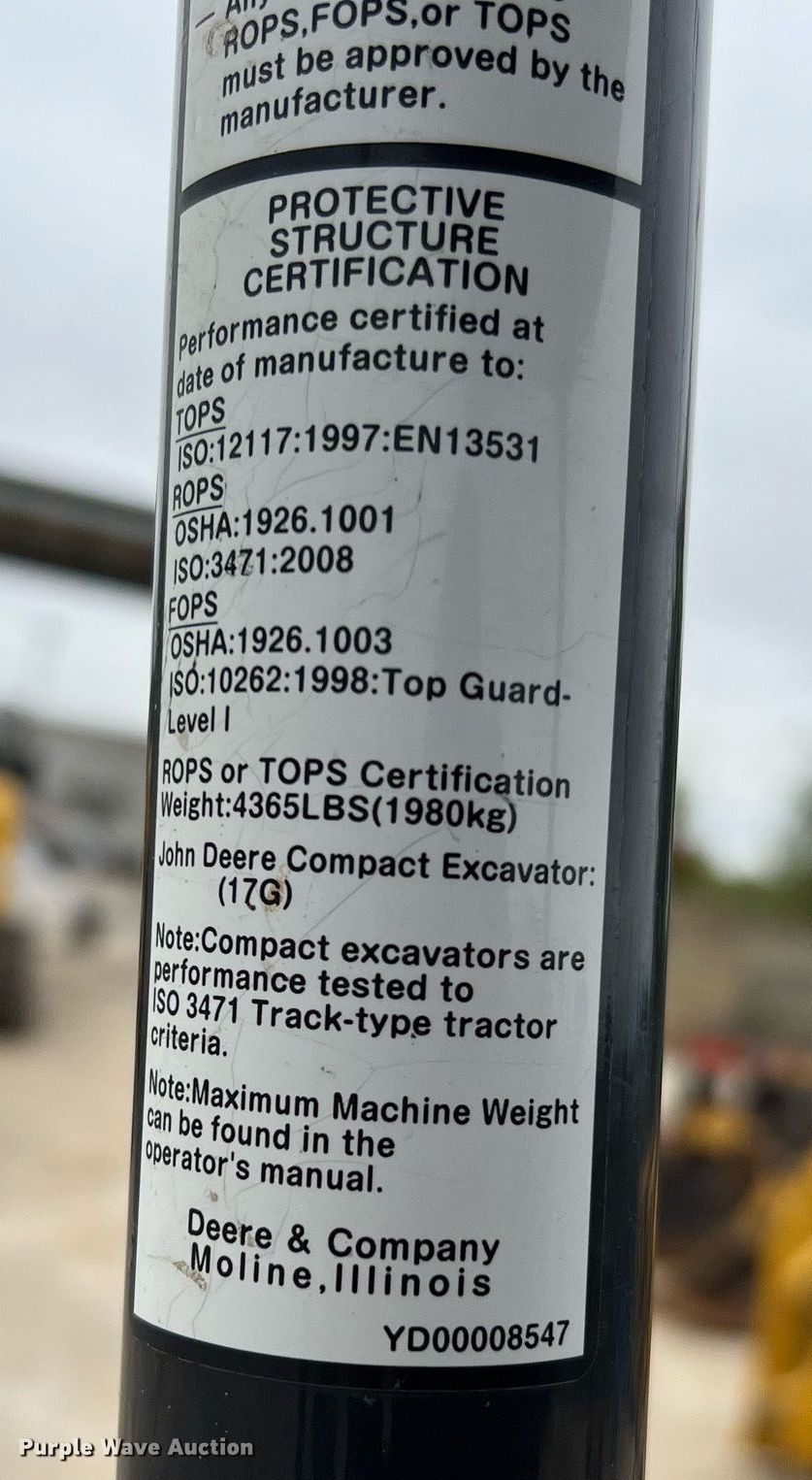 Purple Wave is selling a used Mini Excavator in Texas. This item is a 2019 John Deere 17G mini excavator with the following: Hours: 826 on meter, Serial: FF017GXHKK229847, Unit #: 27589