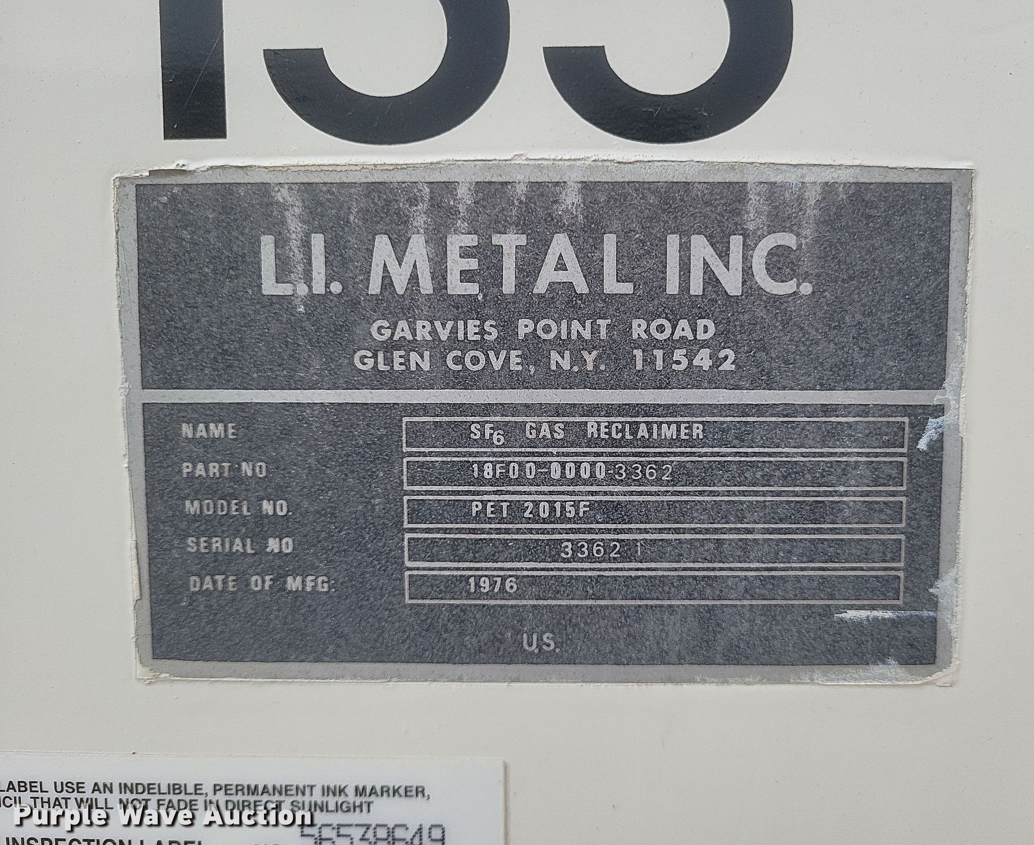 This 1976 L.I. Metal PET 2015F gas reclaimer will sell to the highest bidder regardless of price.