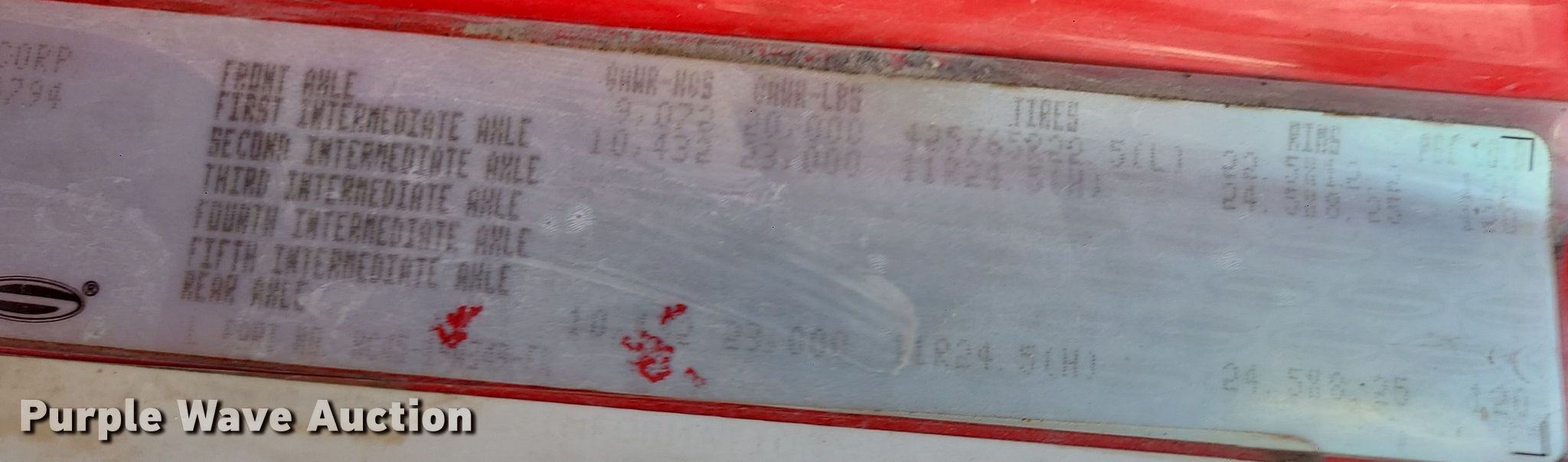 2004 Sterling truck cab and chassis. Miles: 311,960 on odometer, VIN: 2FZHAZCV54AN04794. Engine Mercedes- Benz MBE 4000, Displacement: 12.0L, Cylinders: 6, Fuel type: Diesel. Transmission Automatic. Chassis Axles: 4, Pusher axle, Suspension: Spring over walking beam, Brakes: Air, GVWR: 66,000 lbs. Interior AC, Heat, Power windows, Cruise control. Tires Front: 425/65R22.5, Rear: 11R22.5, Lift axle: 255/70R22.5. Notes Dash warning indicator: Check engine. Missouri title. Title distribution may be delayed up to 14 days from verification of funds. Vance Bros Inc.. 5201 Brighton Ave. Kansas City, MO 64130