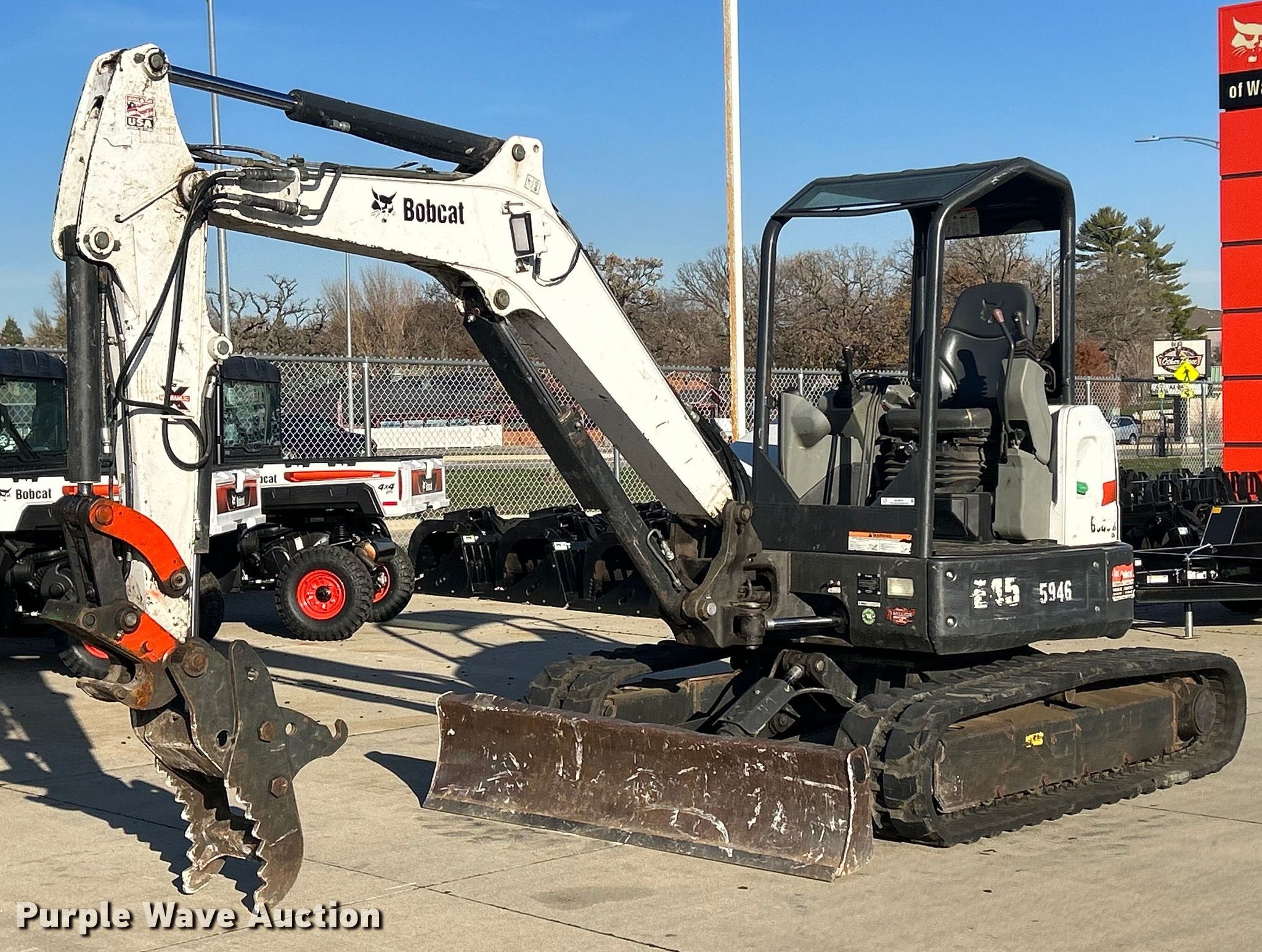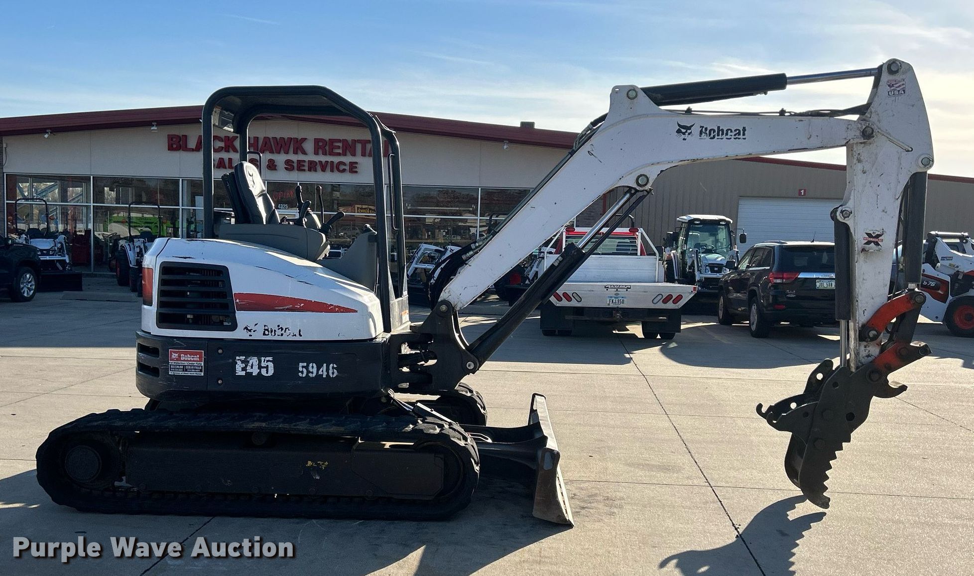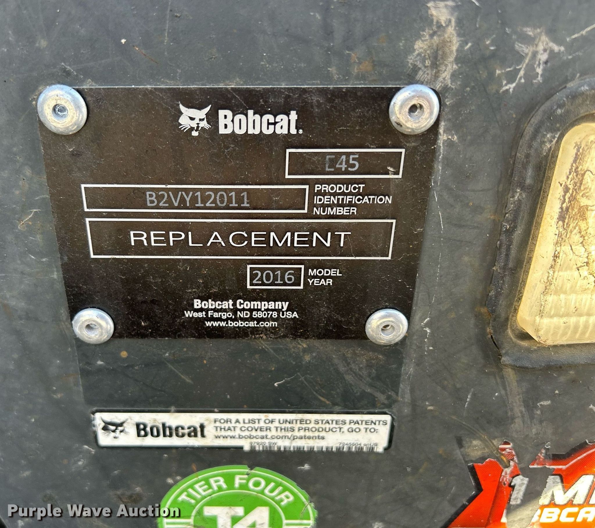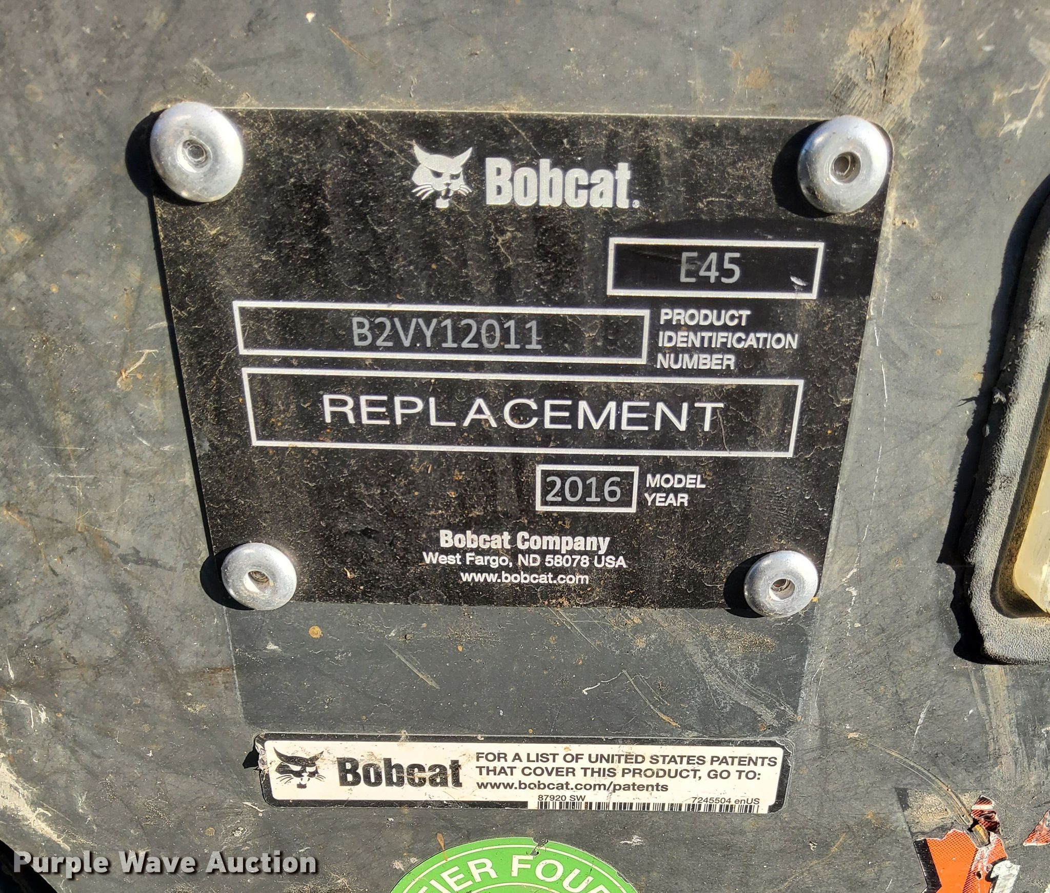 Purple Wave is selling a used Mini Excavator in Iowa. This item is a 2017 Bobcat E45 mini excavator with the following: Hours: 1,630 on meter, Serial: B2VY12011