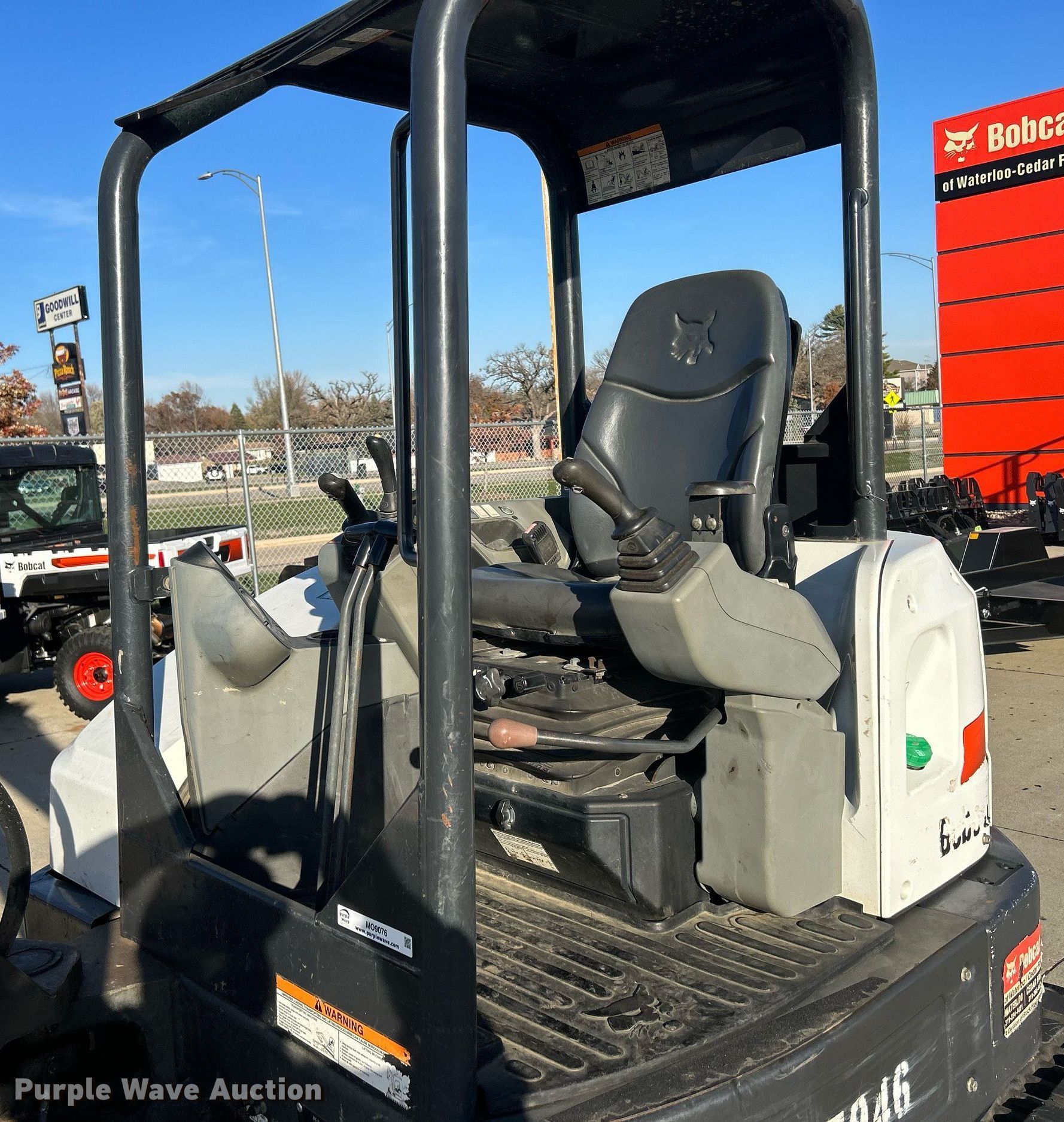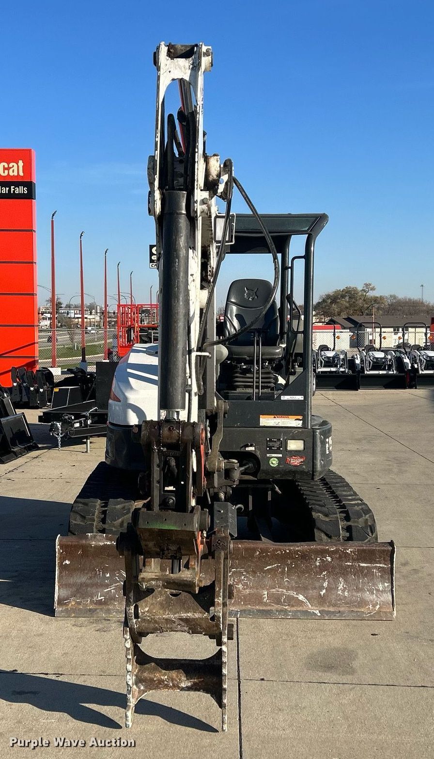 2017 Bobcat E45 mini excavator. Hours: 1,630 on meter, Serial: B2VY12011. Engine Bobcat, Cylinders: 4, Fuel type: Diesel. Transmission Hydrostatic. Features Auxiliary hydraulics, Backfill blade Width: 78", Boom Standard, Swing, Stick Stick length: 54", Quick coupler: Hydraulic, Thumb: Hydraulic. Tracks Width: 16", Rubber. Bobcat of Waterloo - Cedar Falls. 4325 University Avenue. Cedar Falls, IA 50613